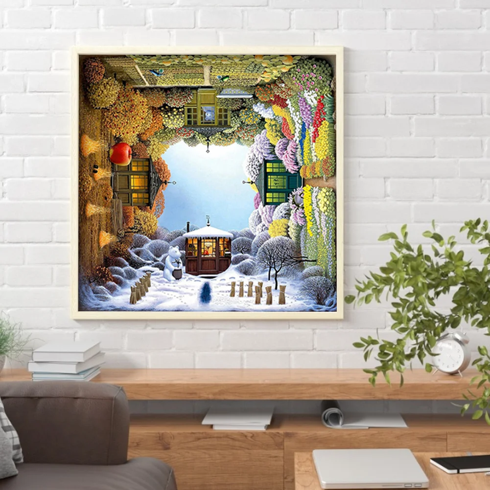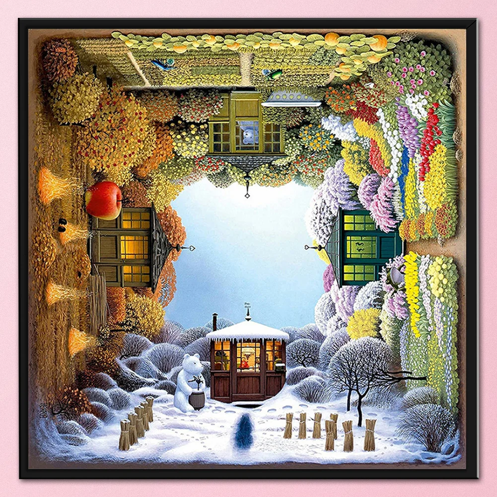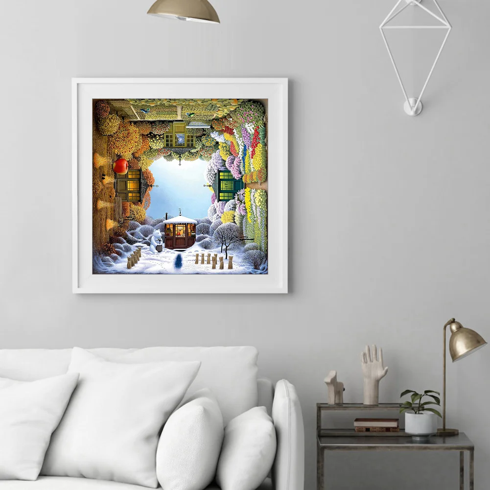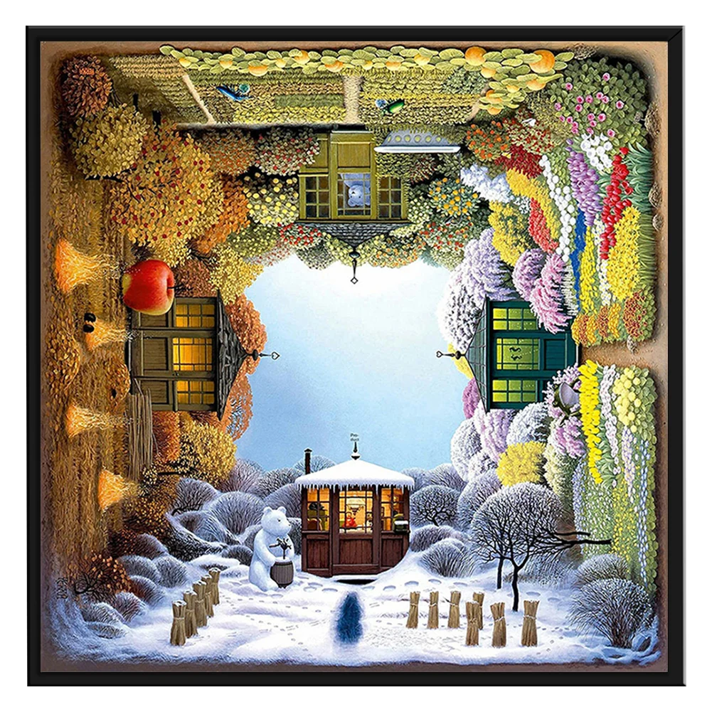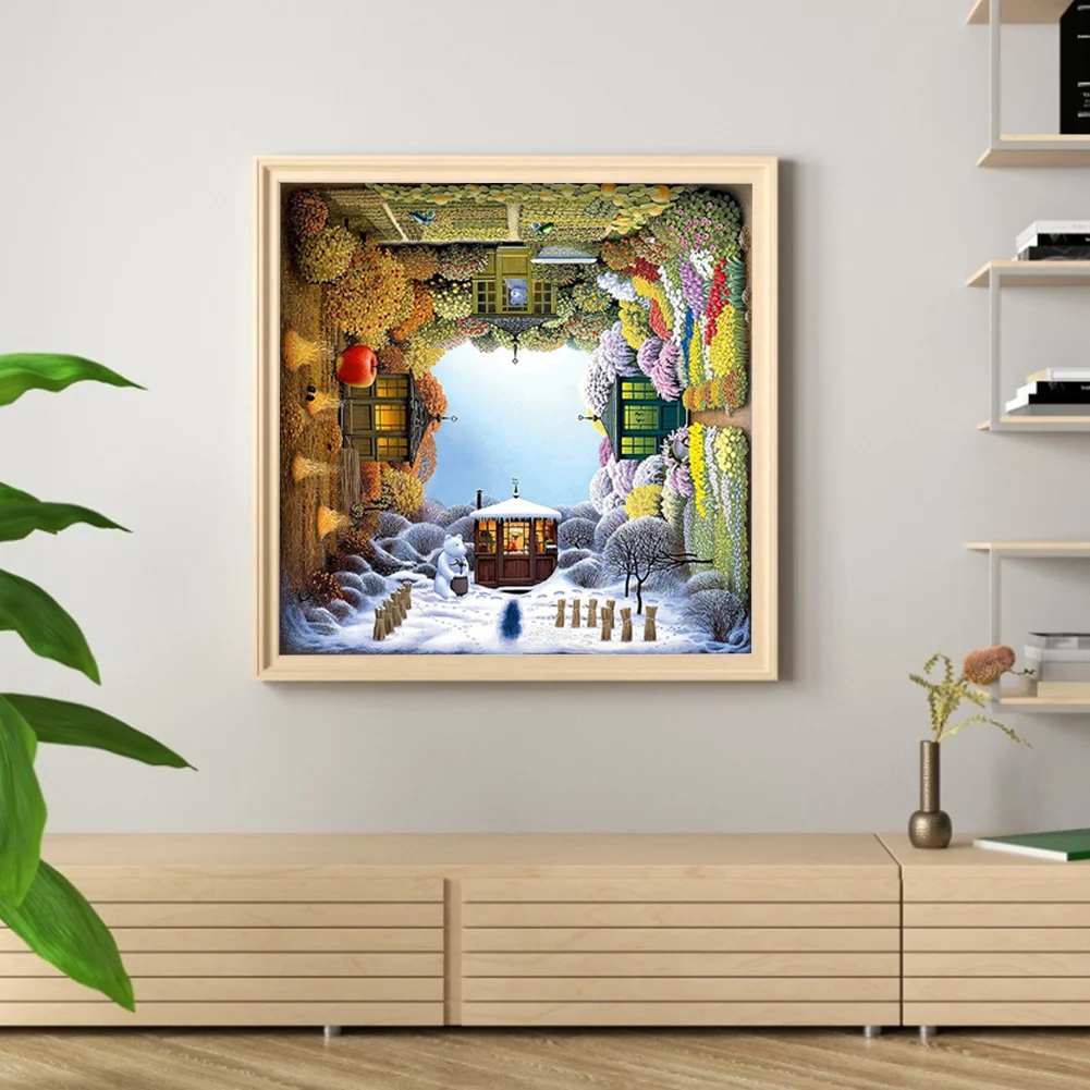Full Embroidery Four Seasons Pattern DIY Cross Stitch Kits Stamped Canvas 11CT Needlework Sets Home Decor