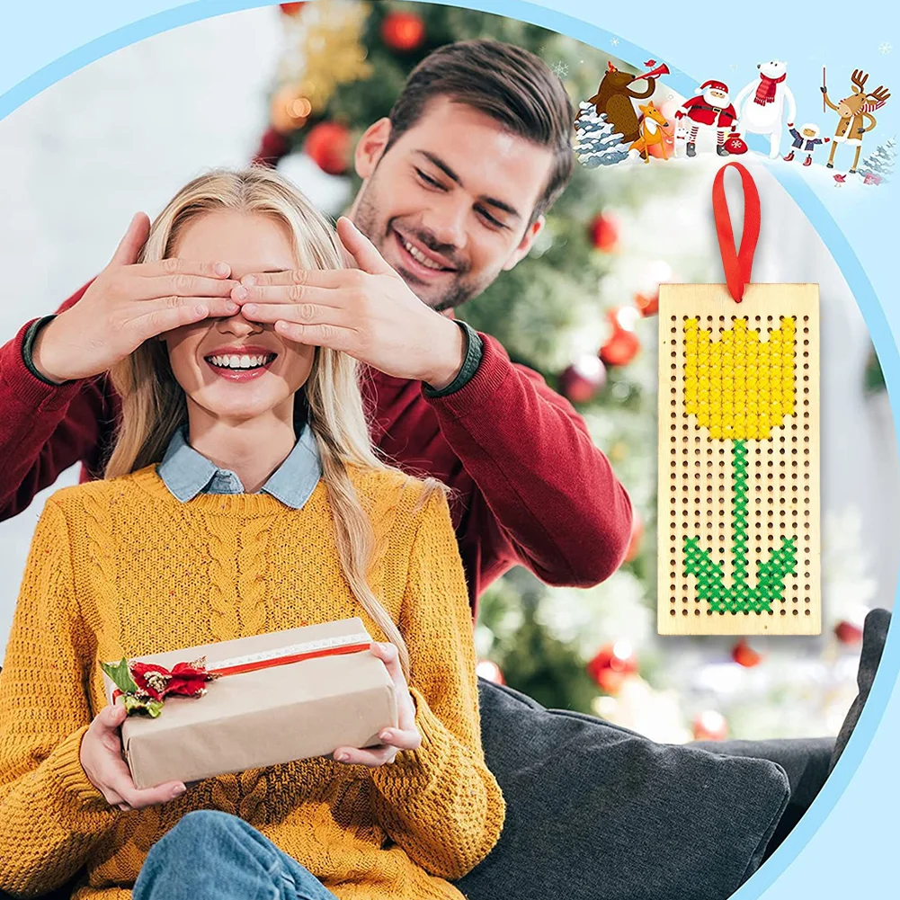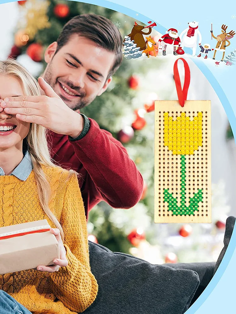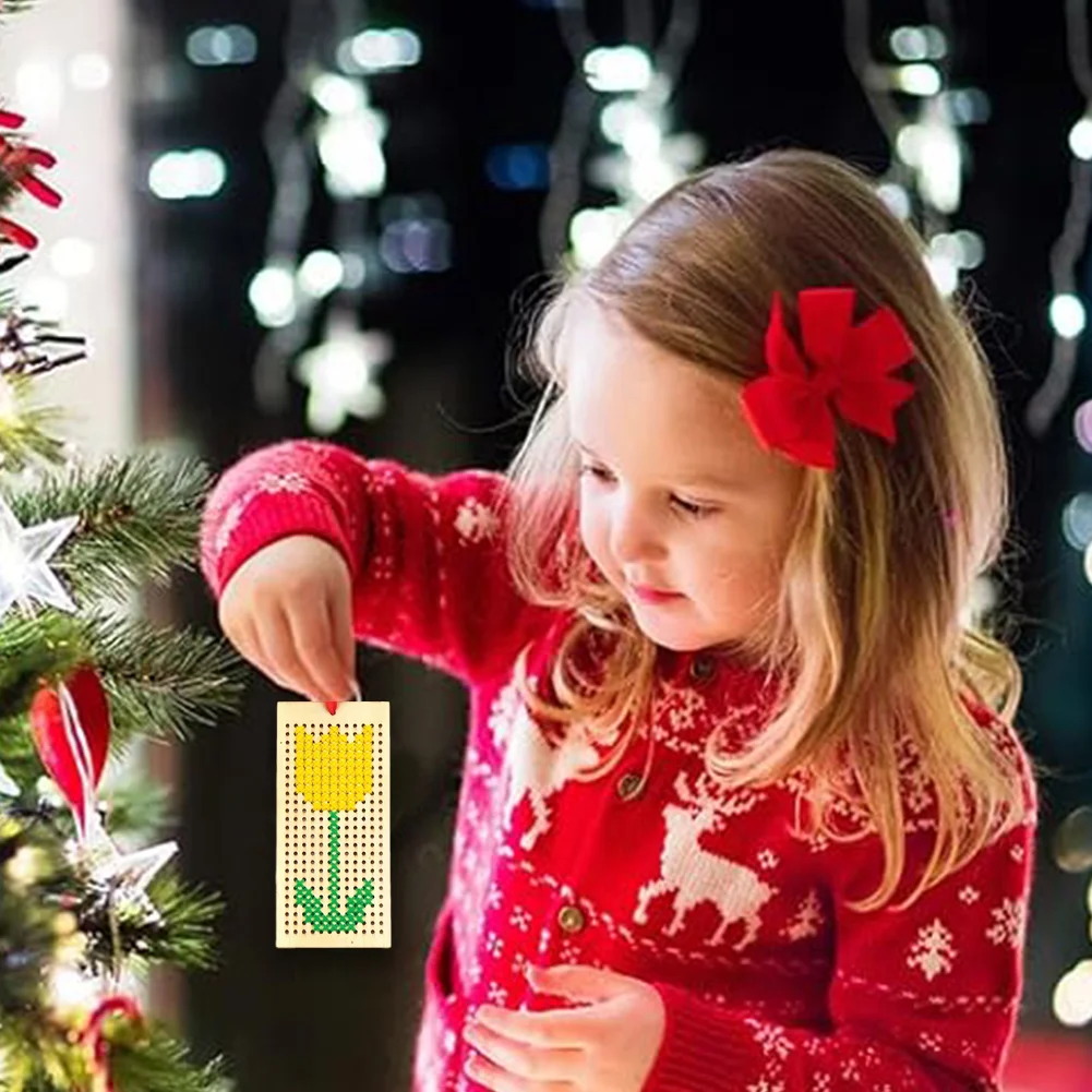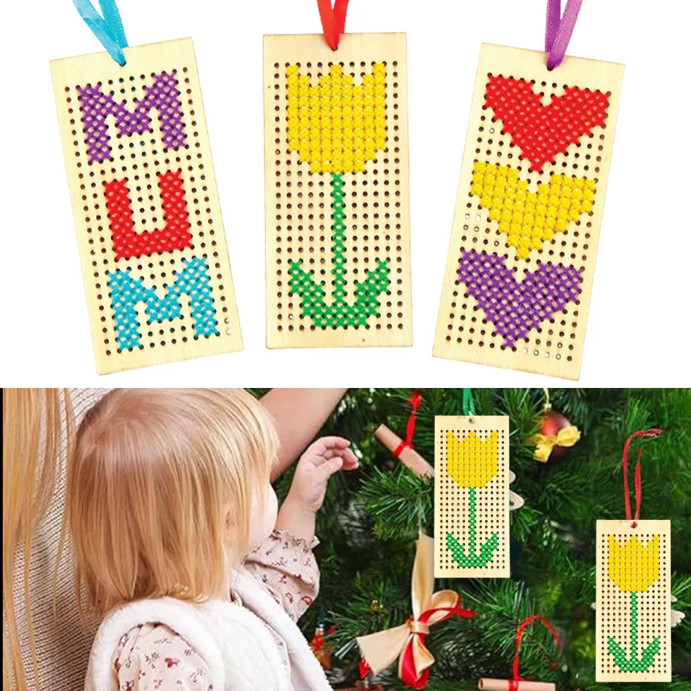 The package content : 4 Blank Wooden Bookmarks + 5 Colors Embroidery Threads + 4 Ribbons + 2 Plastic Needles