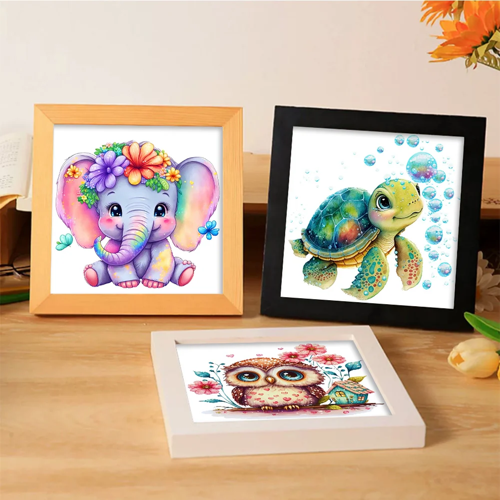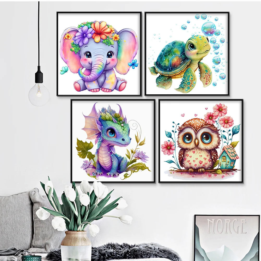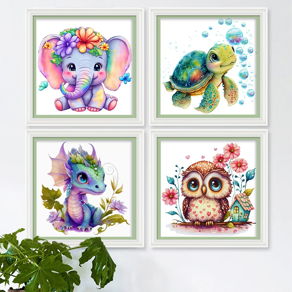 (4pcs) 18CT Full Stamped Cross Stitch Kit - Elephant Owl (20*20CM)