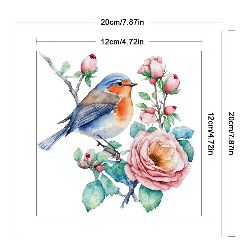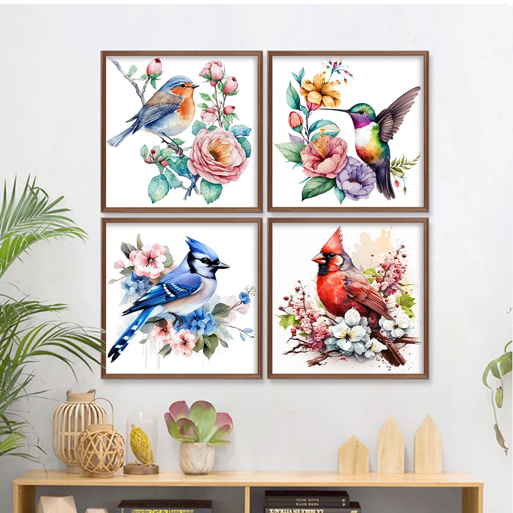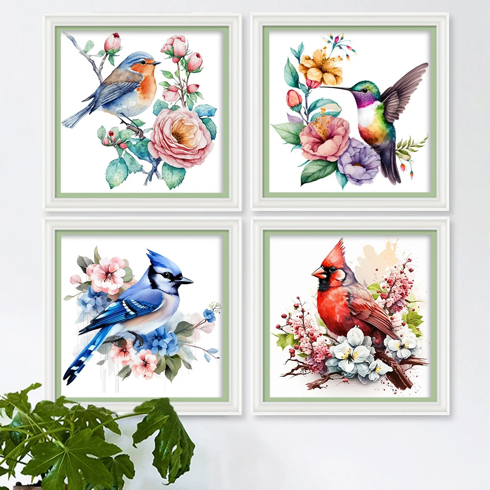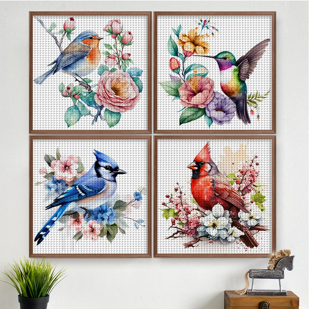 (4pcs) 18CT Full Stamped Cross Stitch Kit - Flower Bird (20*20CM)