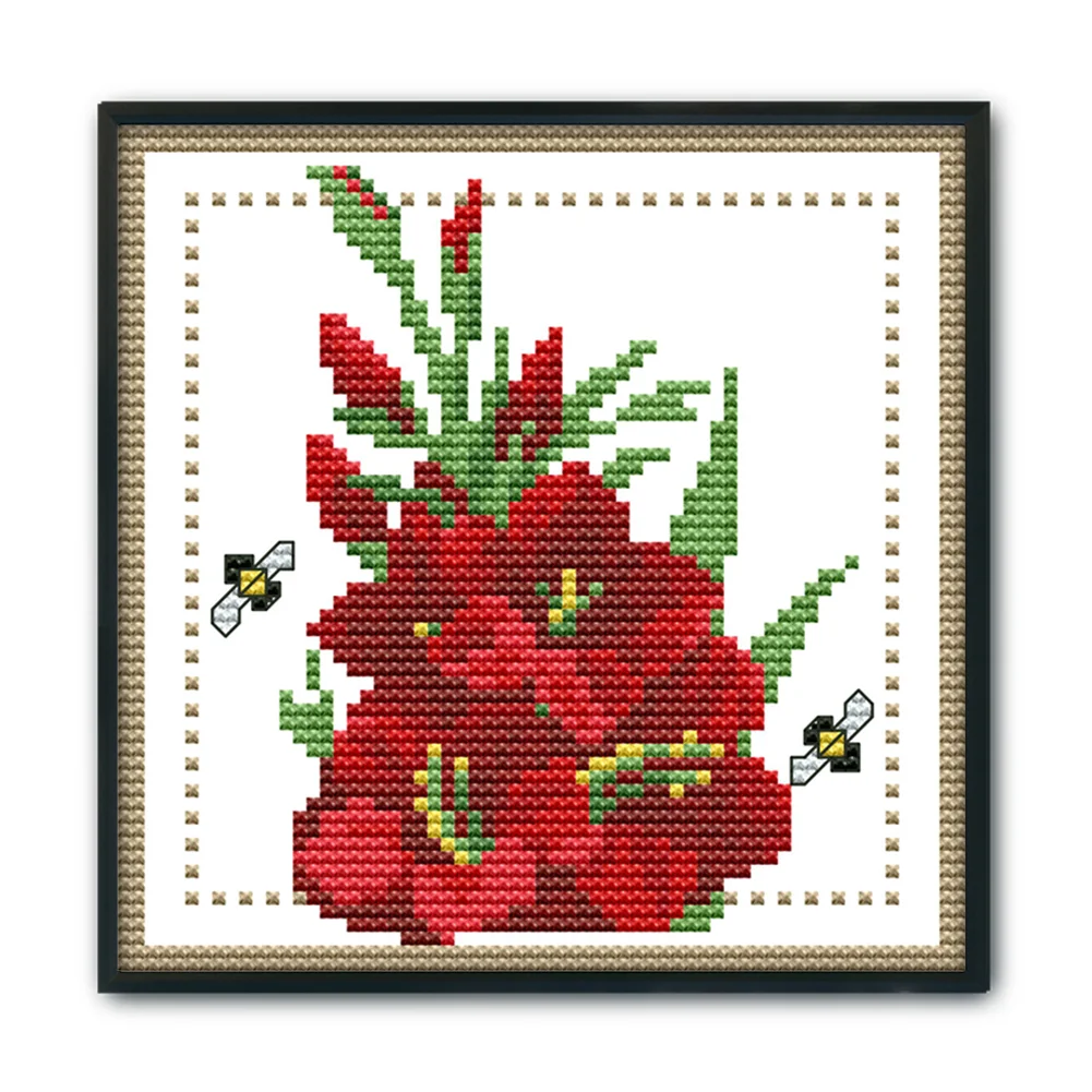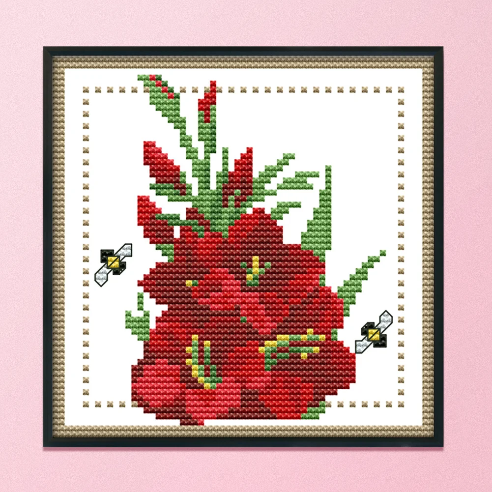 12 Months Flower Cross Stitch Embroidery 14CT Stamped Cotton Thread Painting DIY Needlework Kits Printed Canvas Handmade Crafts Home Decoration 17x17cm