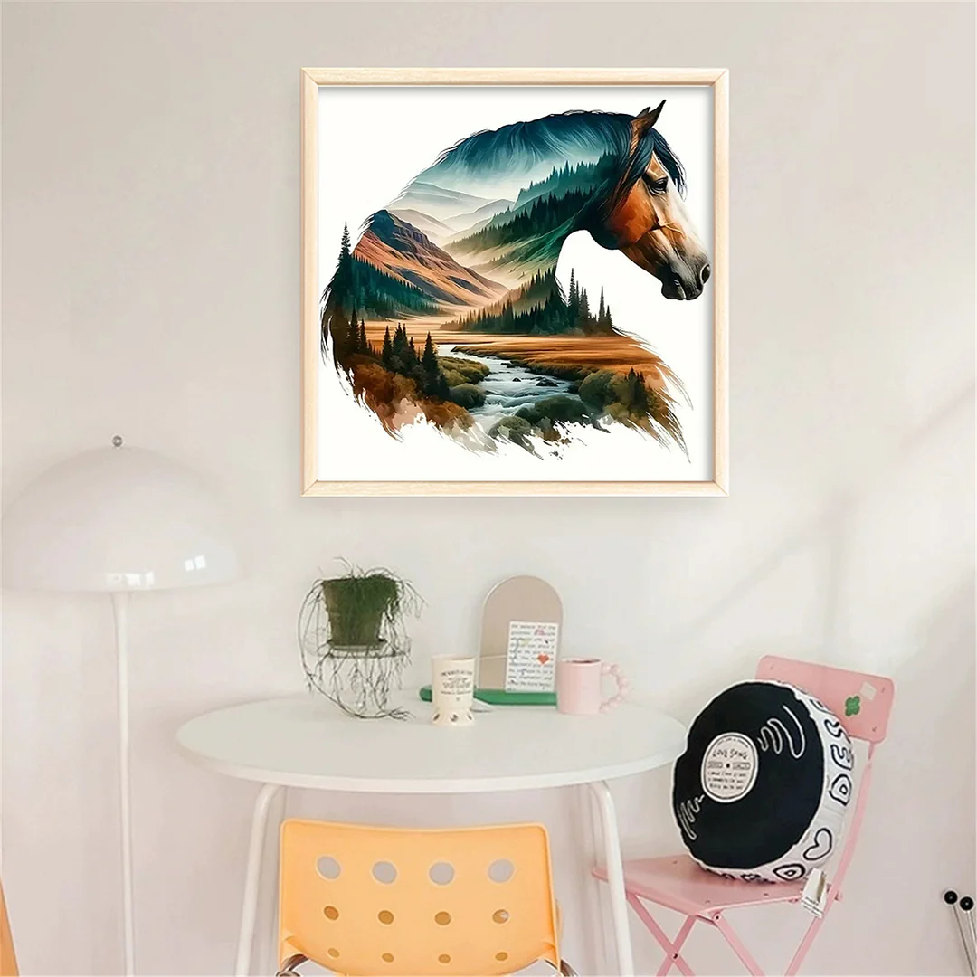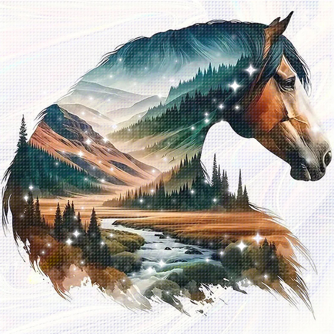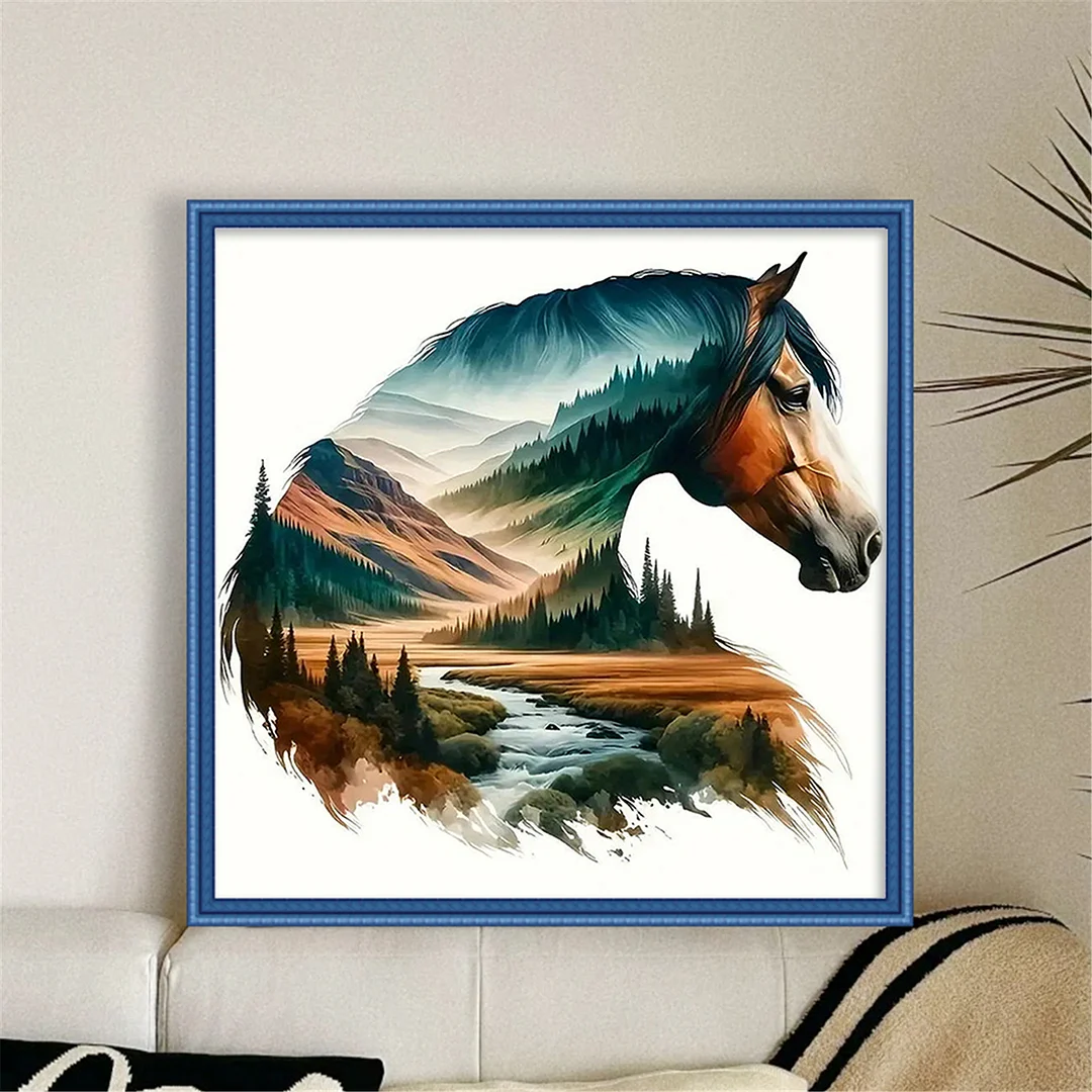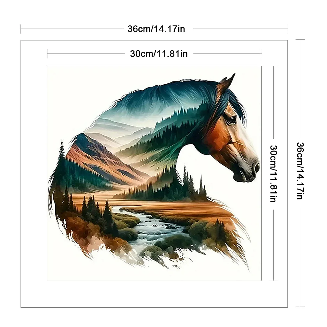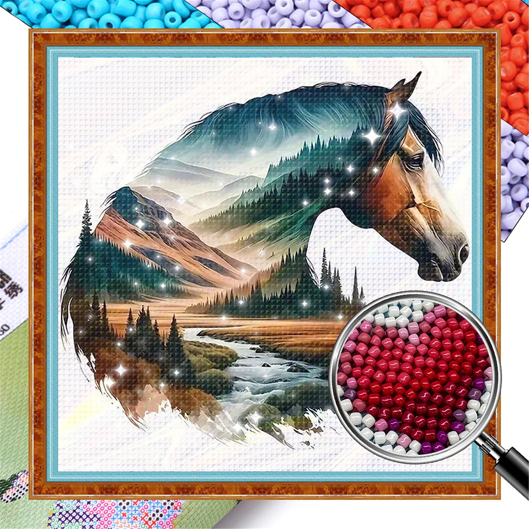 [Bead Embroidery] - 11CT Partial Stamped Cross Stitch - Silhouette Horse (36*36cm)