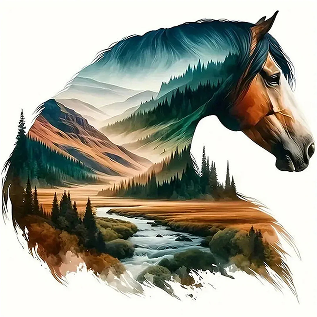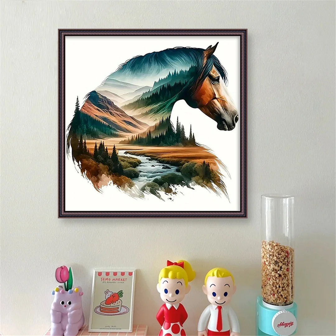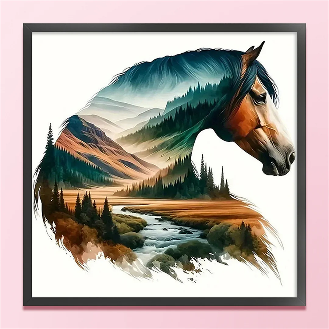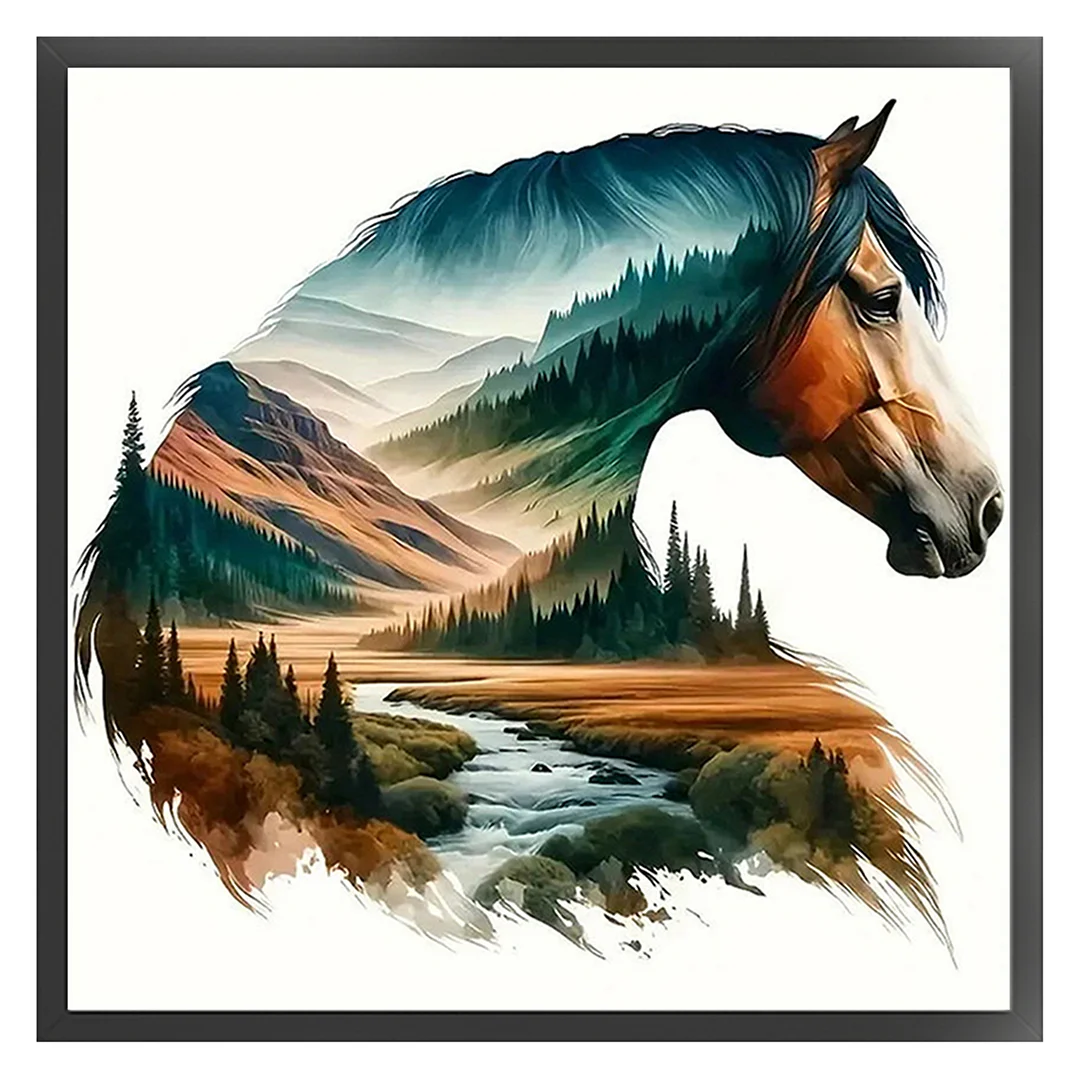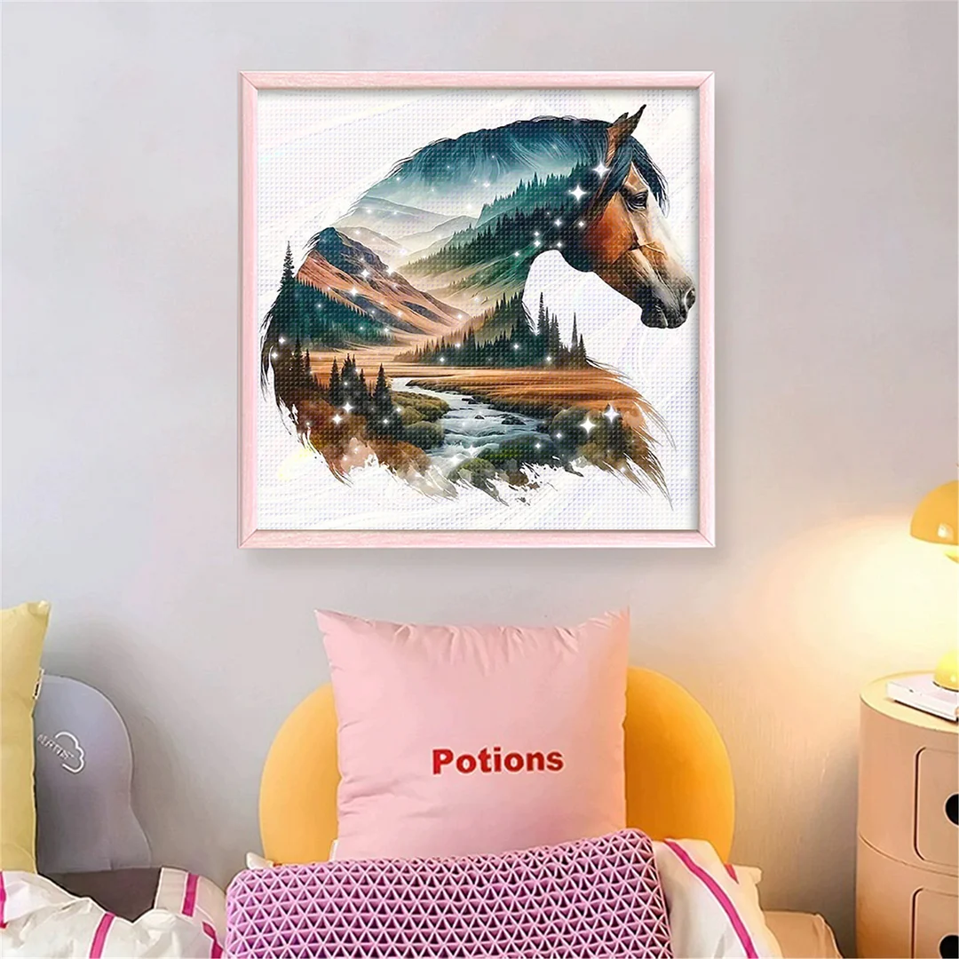 [Bead Embroidery] - 11CT Partial Stamped Cross Stitch - Silhouette Horse (36*36cm)