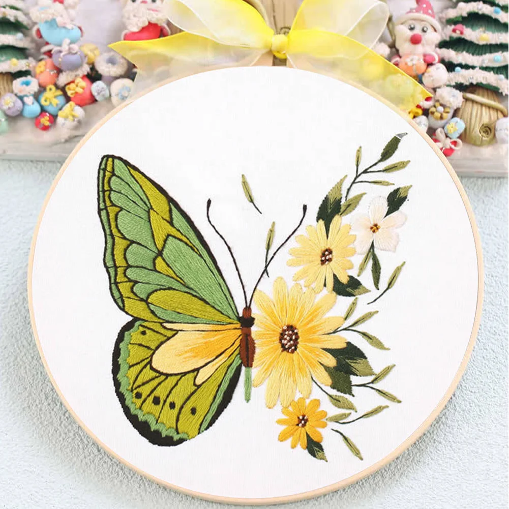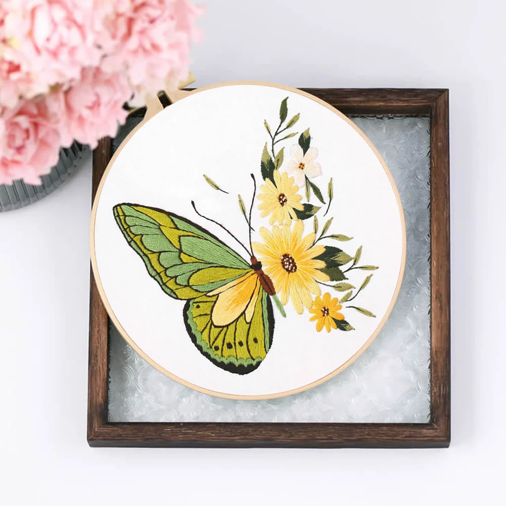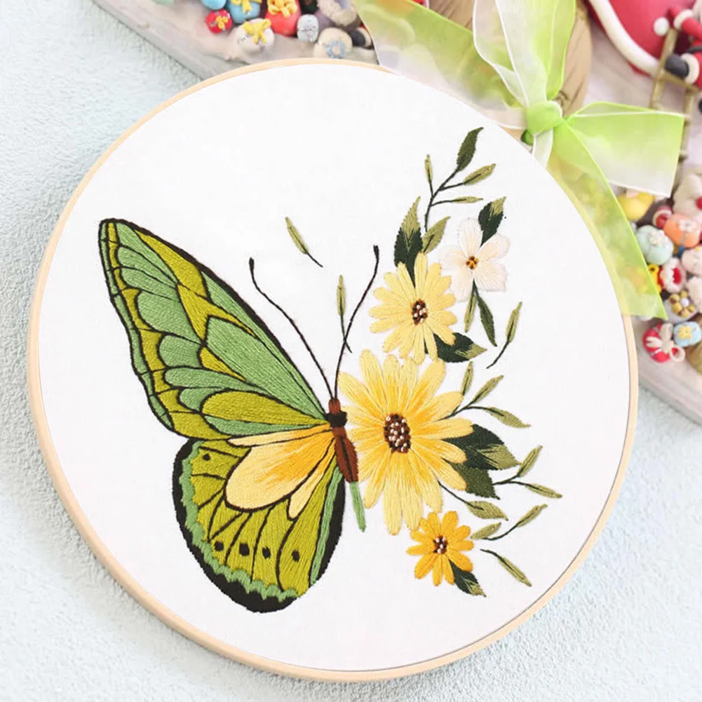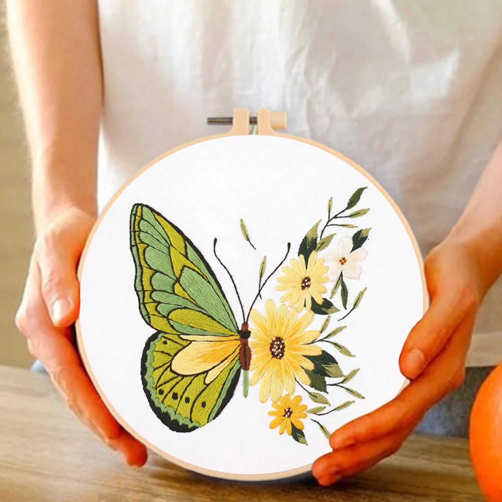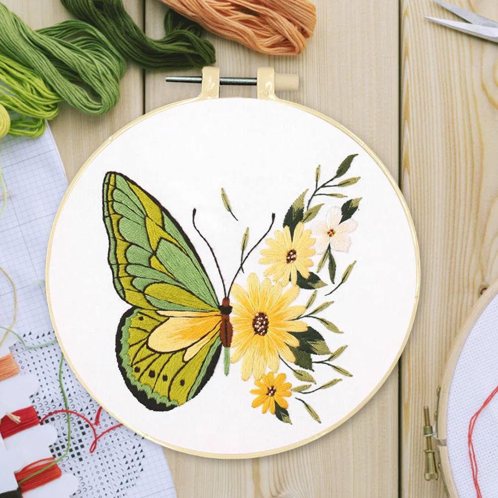 Butterfly DIY Embroidery Kit with Pattern Cotton Threads Needles Hoop