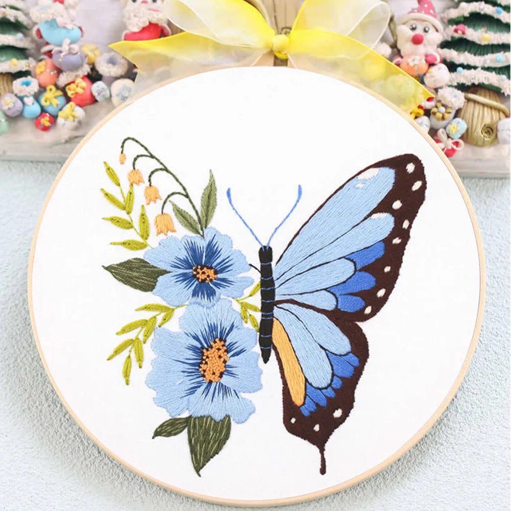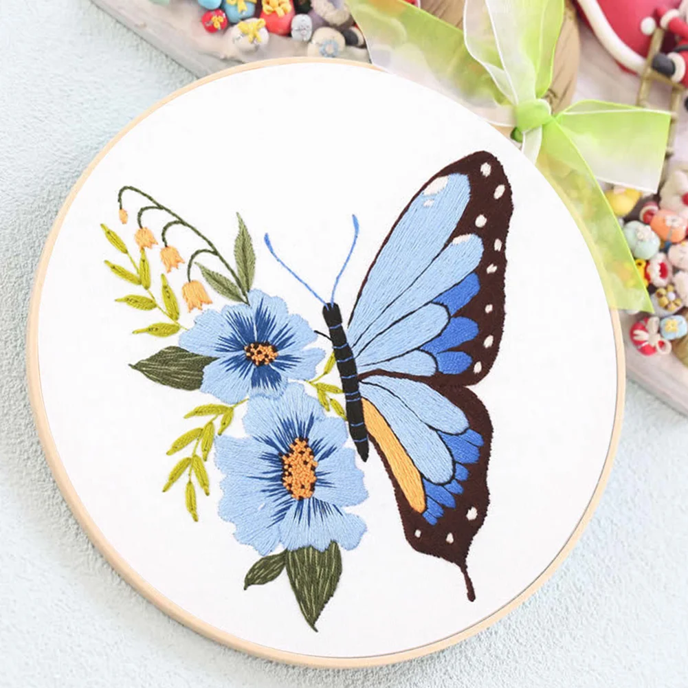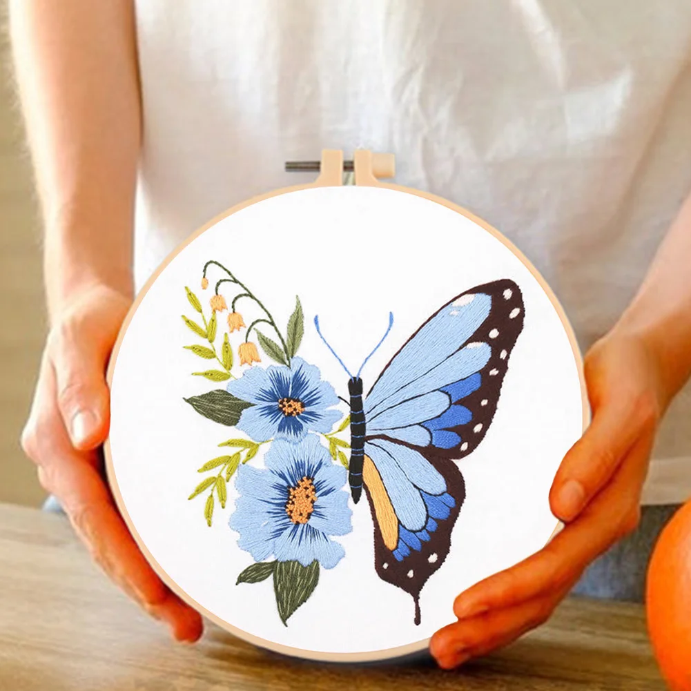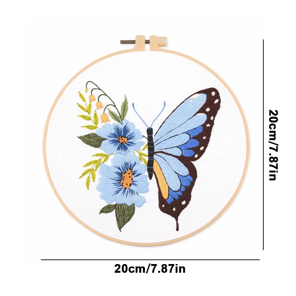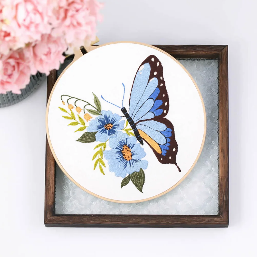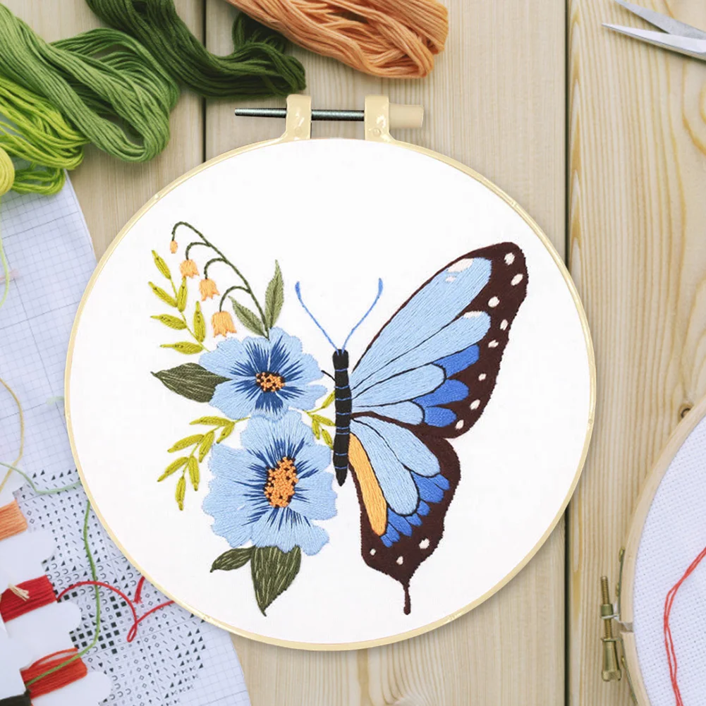 Butterfly DIY Embroidery Kit with Pattern Cotton Threads Needles Hoop