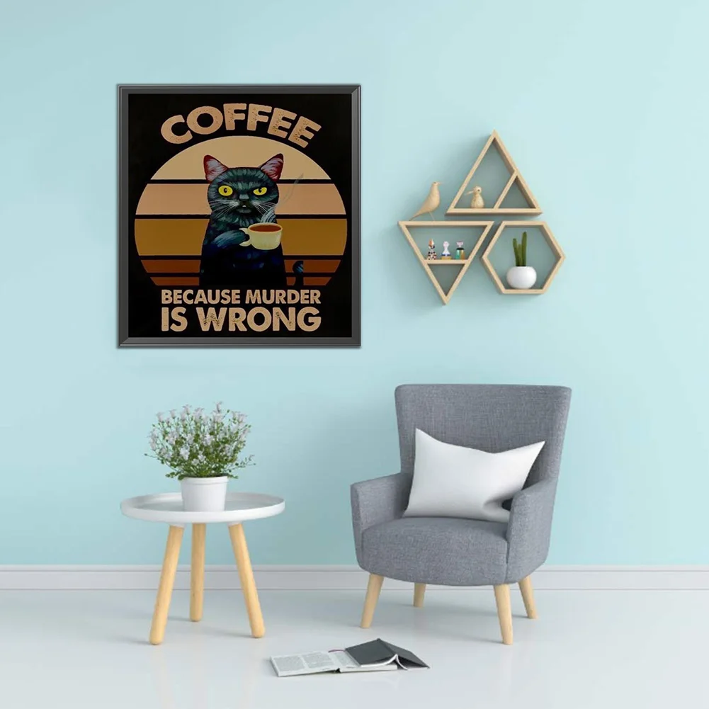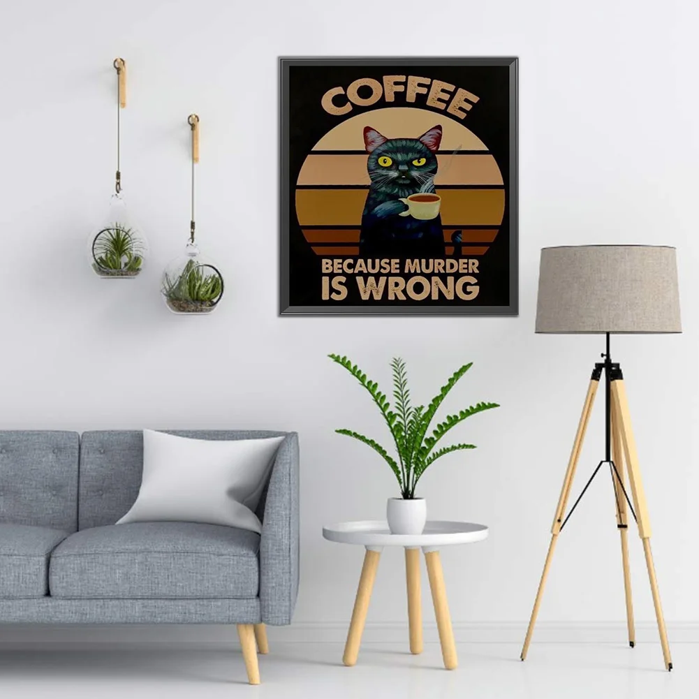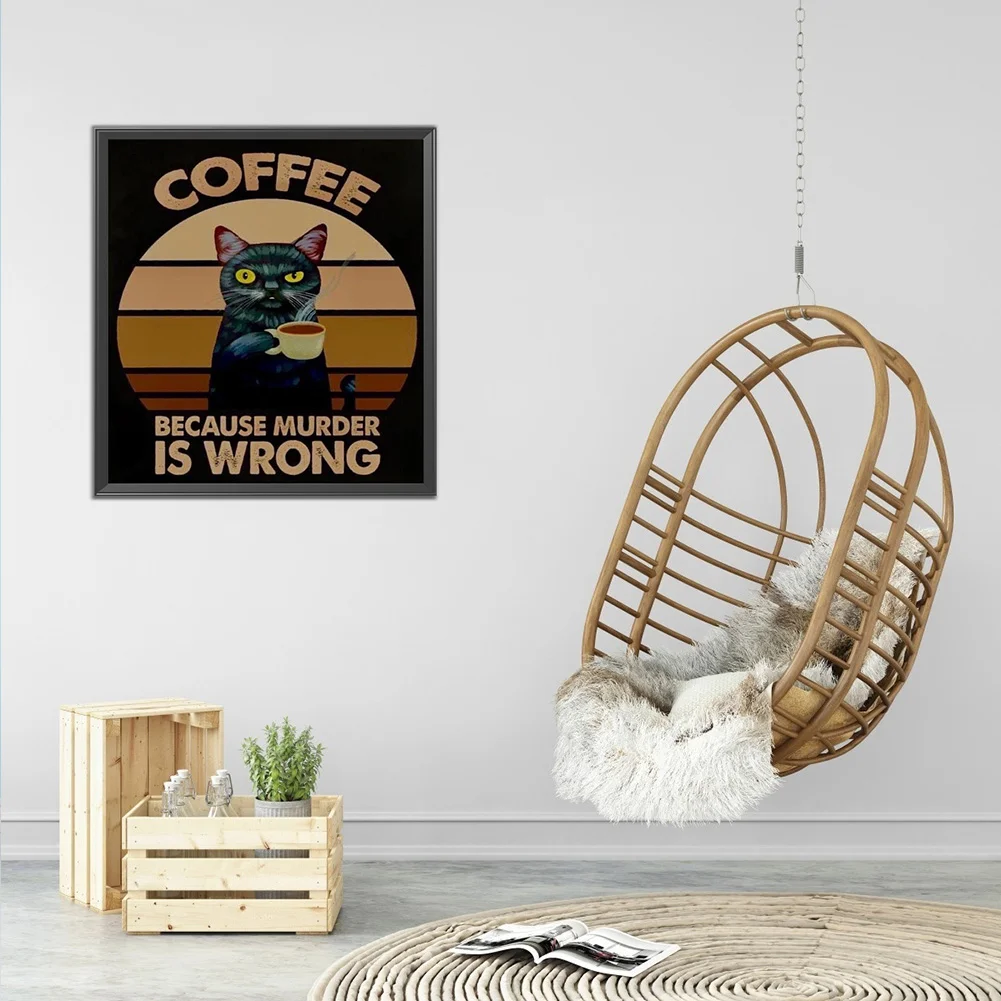 Full Cross Stitch 11CT Coffee Cat Stamped Embroidery DIY Needlework Kits Handmade Cotton Thread Animal Printed Wall Art Crafts Home Decoration Gifts