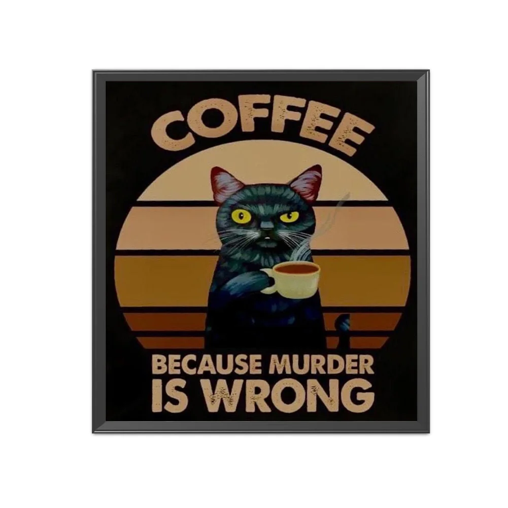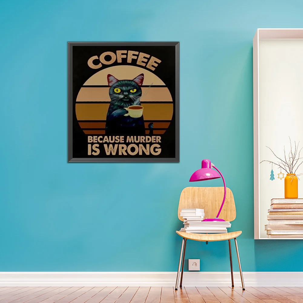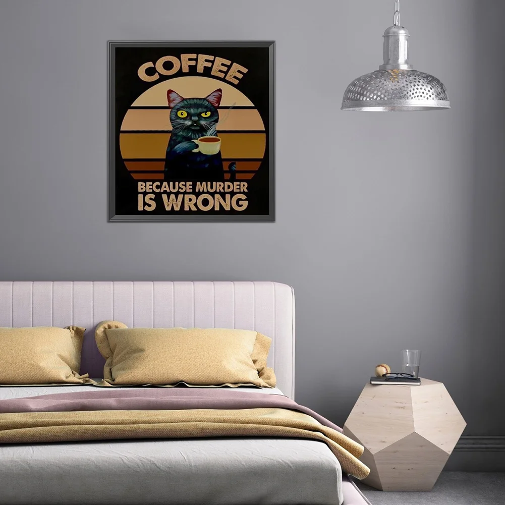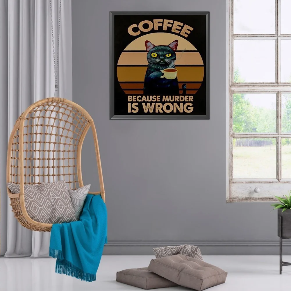 Full Cross Stitch 11CT Coffee Cat Stamped Embroidery DIY Needlework Kits Handmade Cotton Thread Animal Printed Wall Art Crafts Home Decoration Gifts