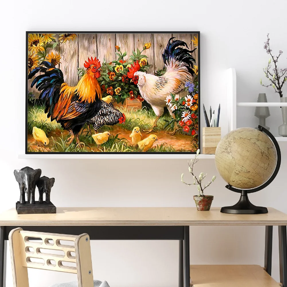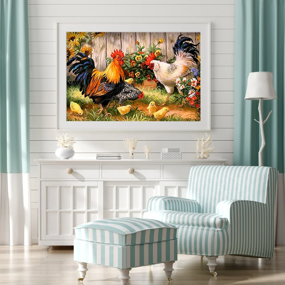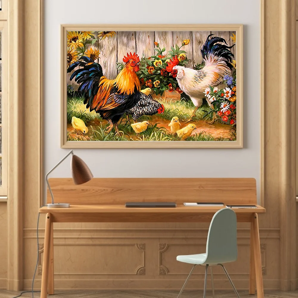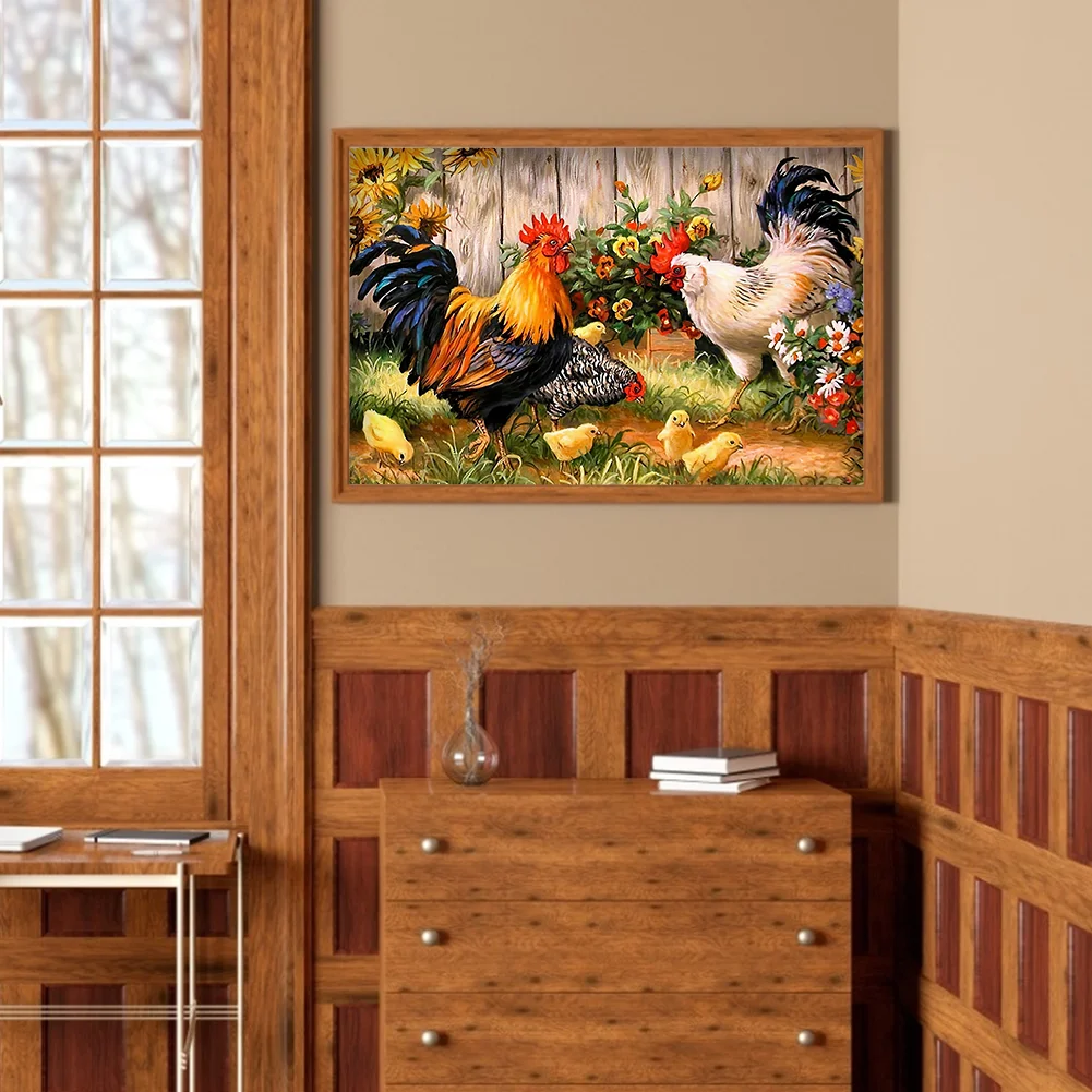 DIY Chicken Animal Pattern Full Embroidery Cross Stitch Kits Stamped Canvas 11CT Needlework Sets Home Decor Gift