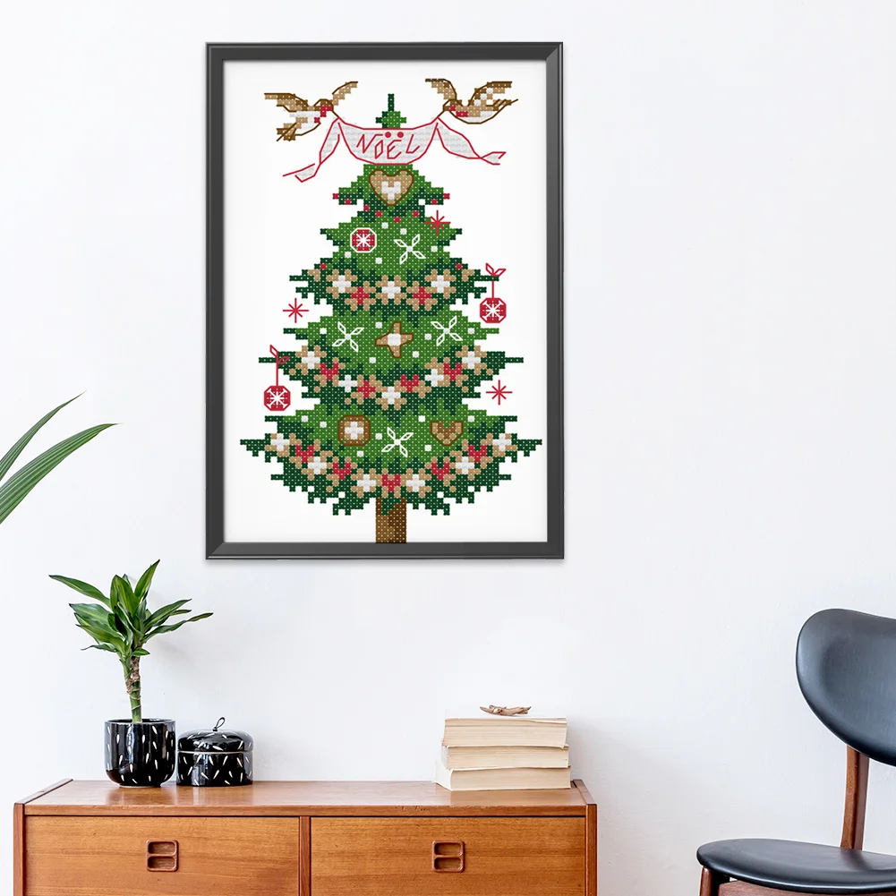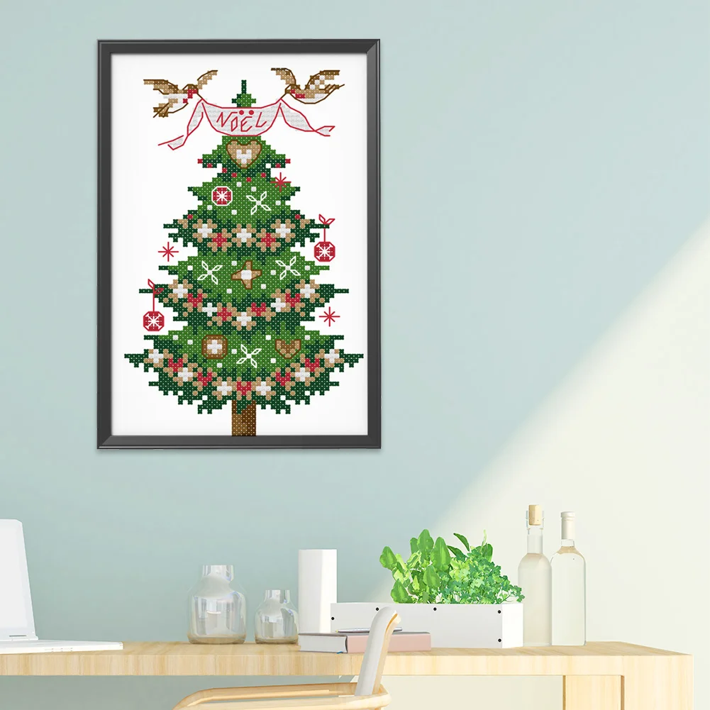 Stamped Cross Stitch Kits Christmas Tree Sock Lantern Embroidery Sets DIY 2-Strand Cotton Thread 14CT Pre Printed Fabric Needlework Crafts Home Decoration