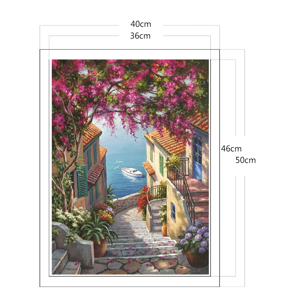 Full Cross Stitch 11CT Coastal City Corner Stamped Embroidery DIY Needlework Kits Handmade Cotton Thread Printed Wall Art Crafts Home Decoration Gifts