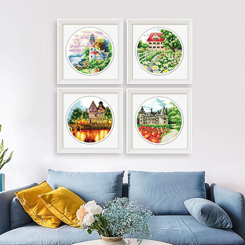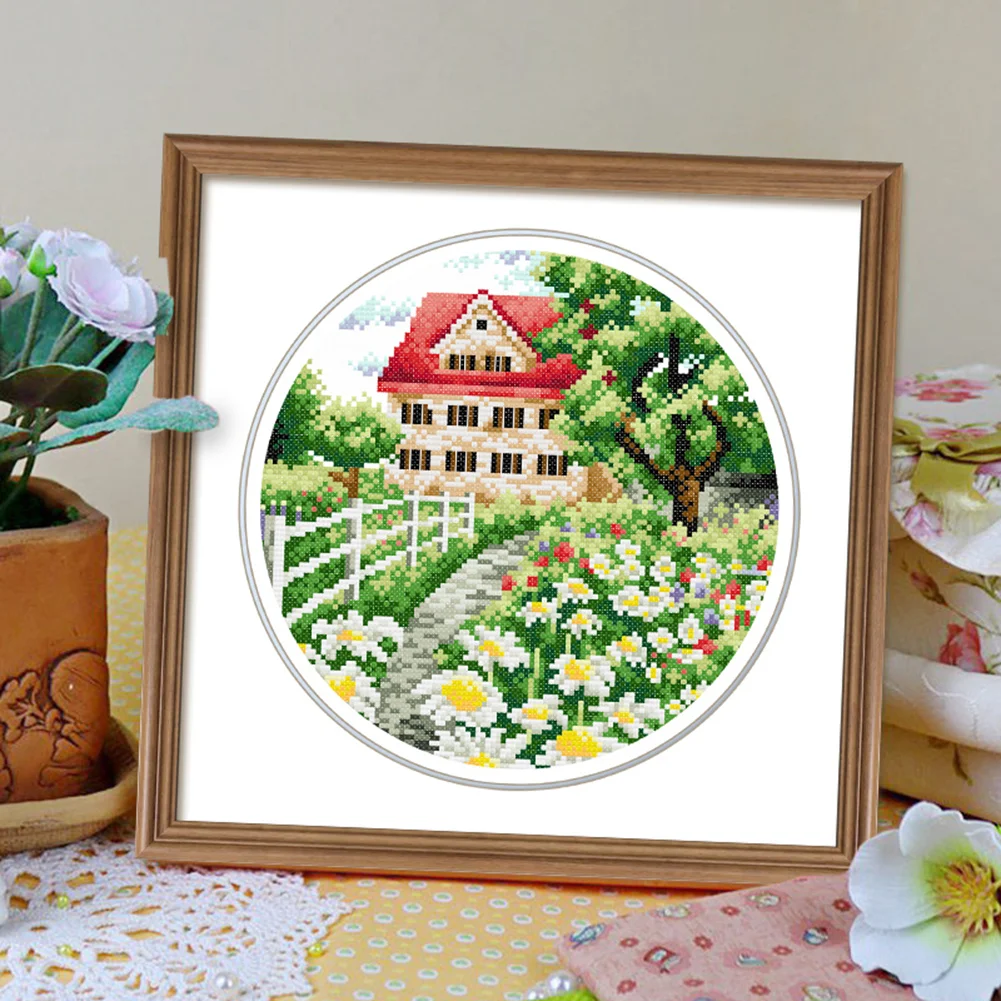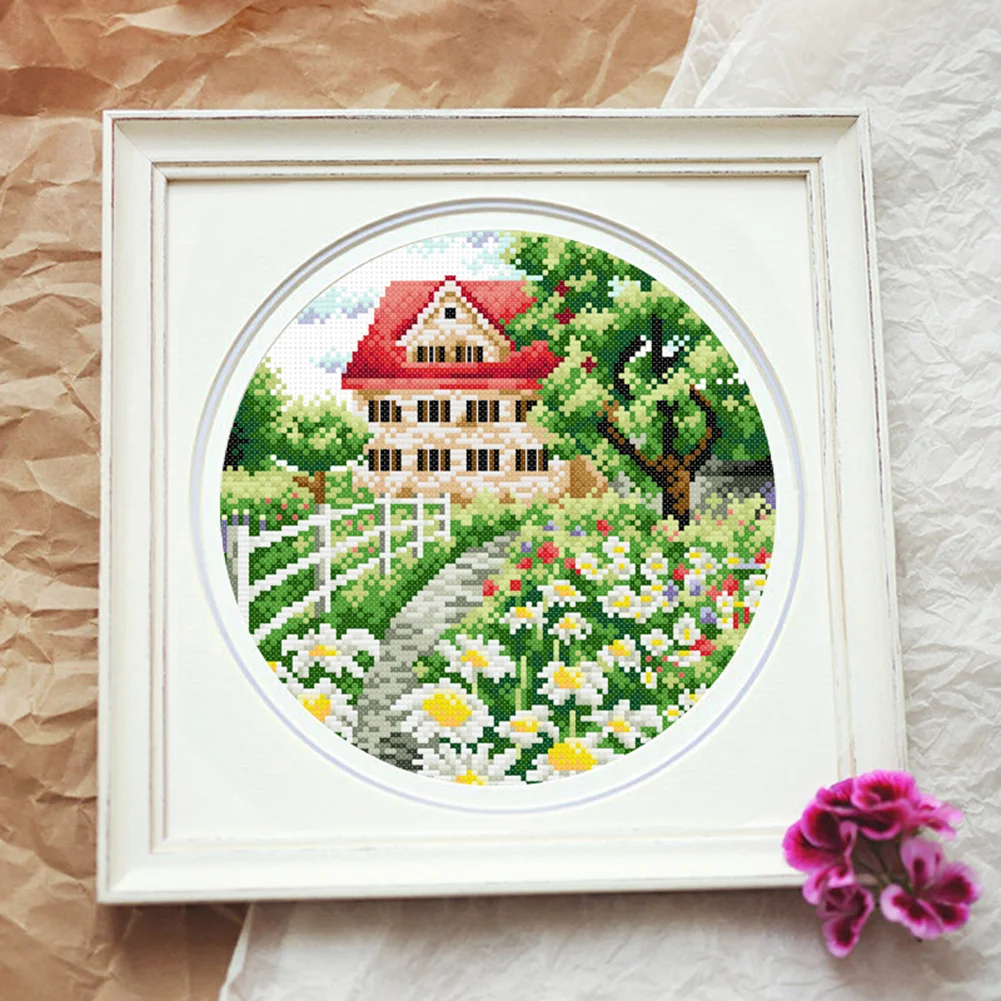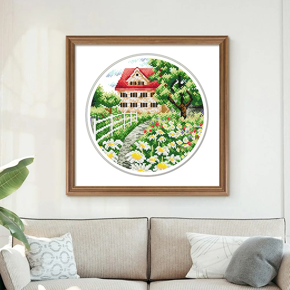 Landscape Garden Cross Stitch Ecological Cotton 11CT Stamped Embroidery Kits Print Canvas DIY Art Needlework Home Decoration Picture Craft
