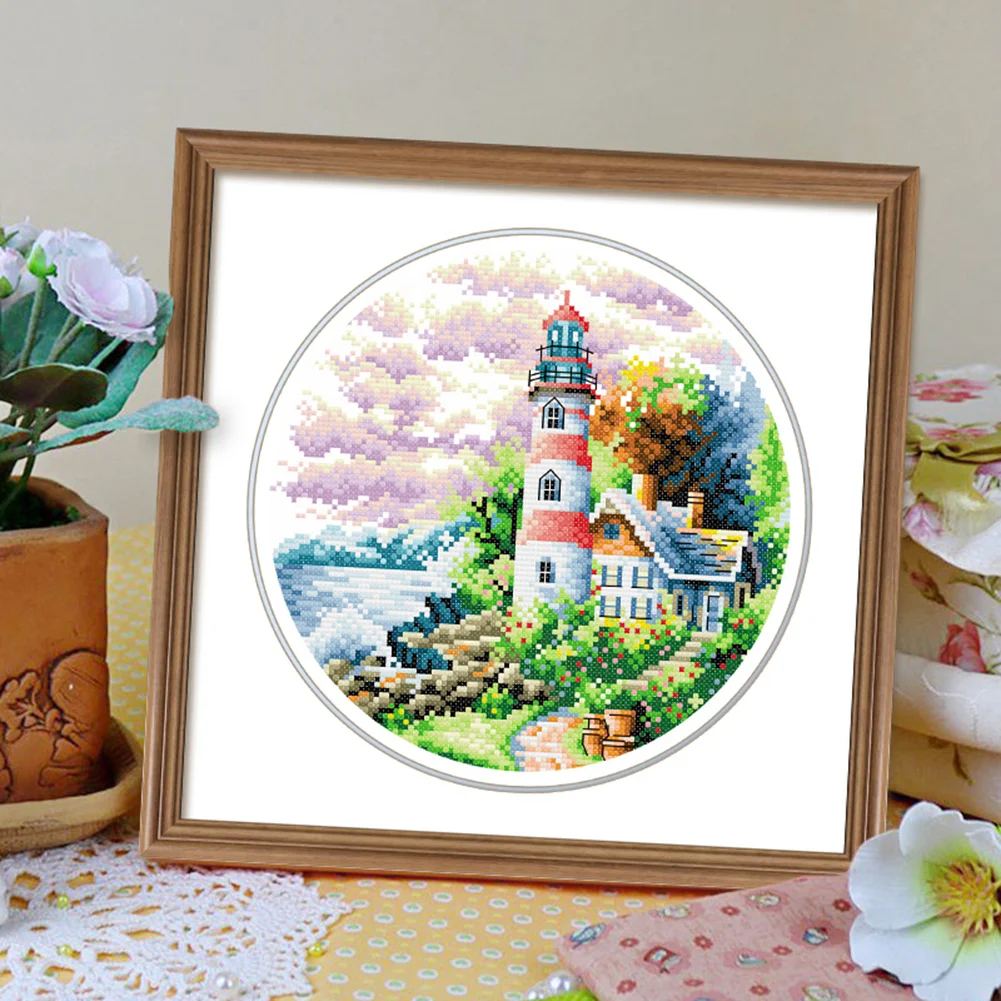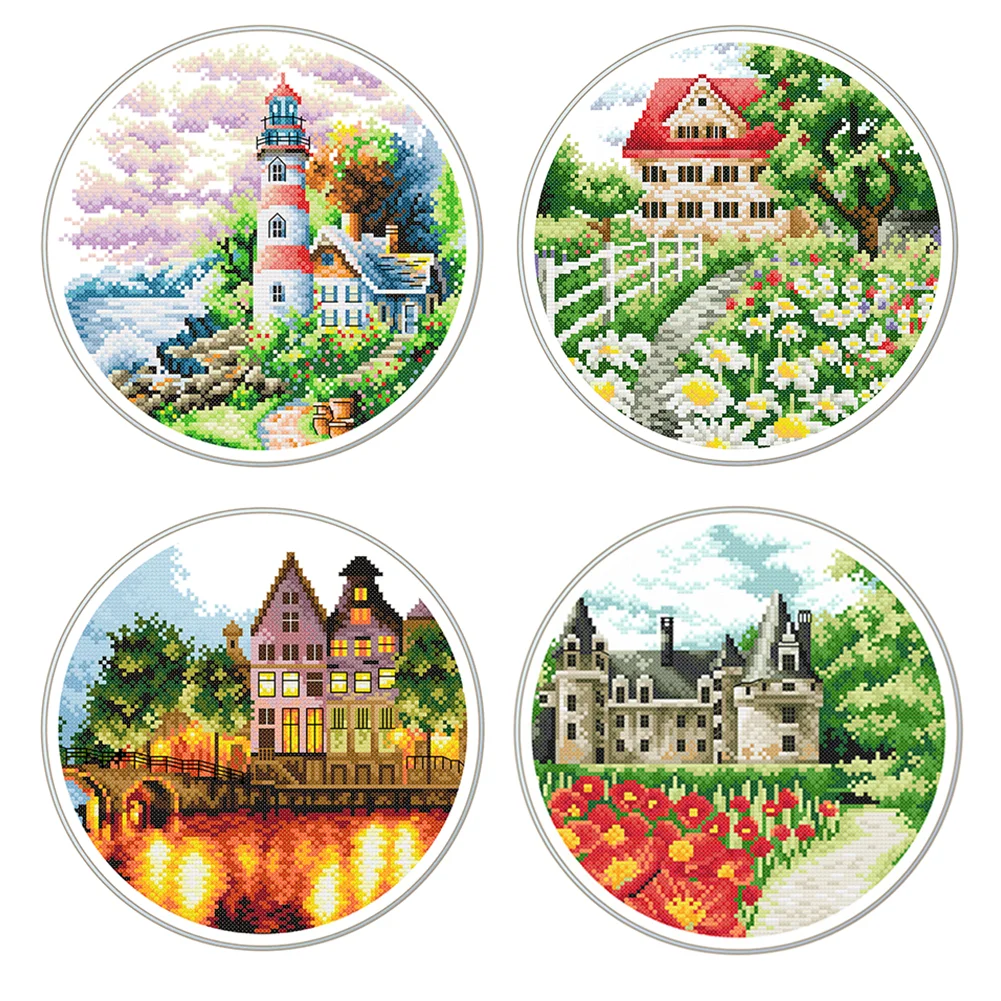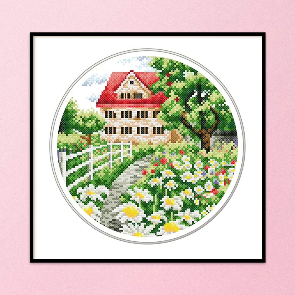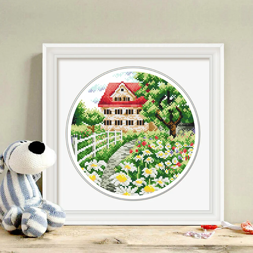 Landscape Garden Cross Stitch Ecological Cotton 11CT Stamped Embroidery Kits Print Canvas DIY Art Needlework Home Decoration Picture Craft