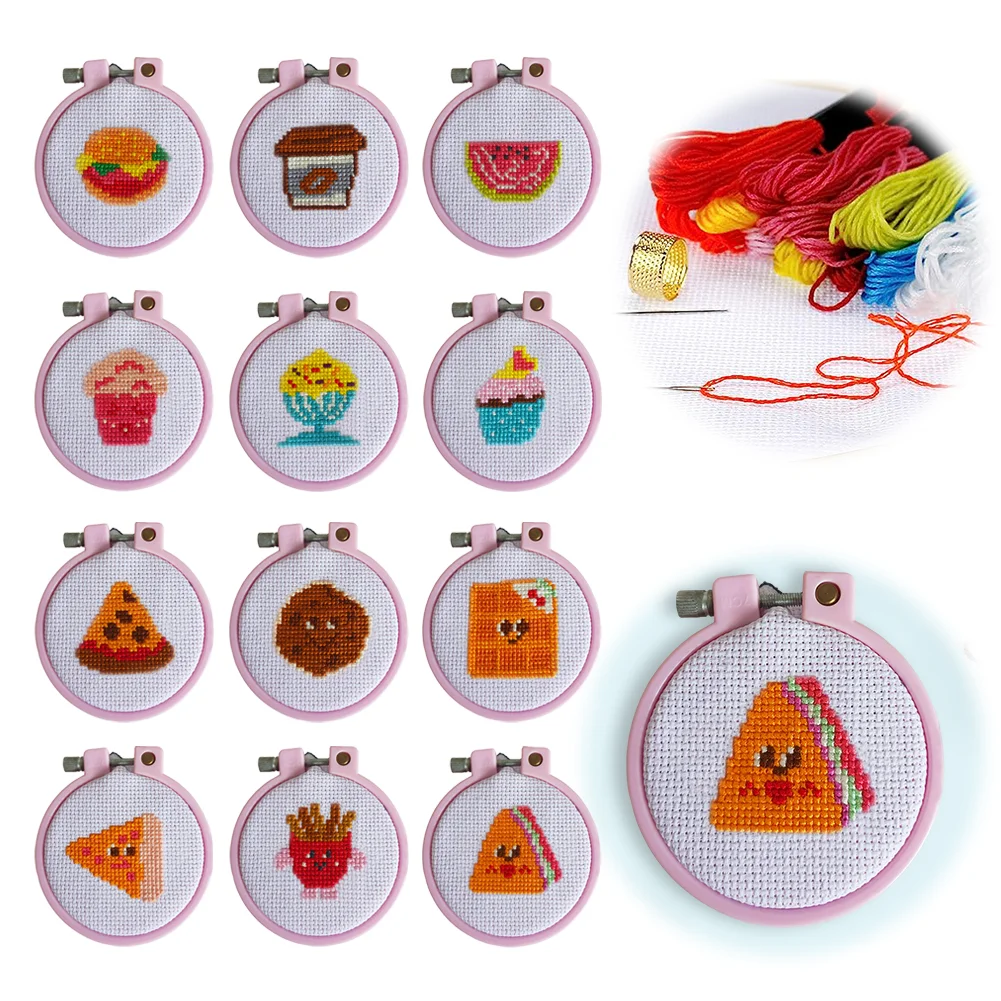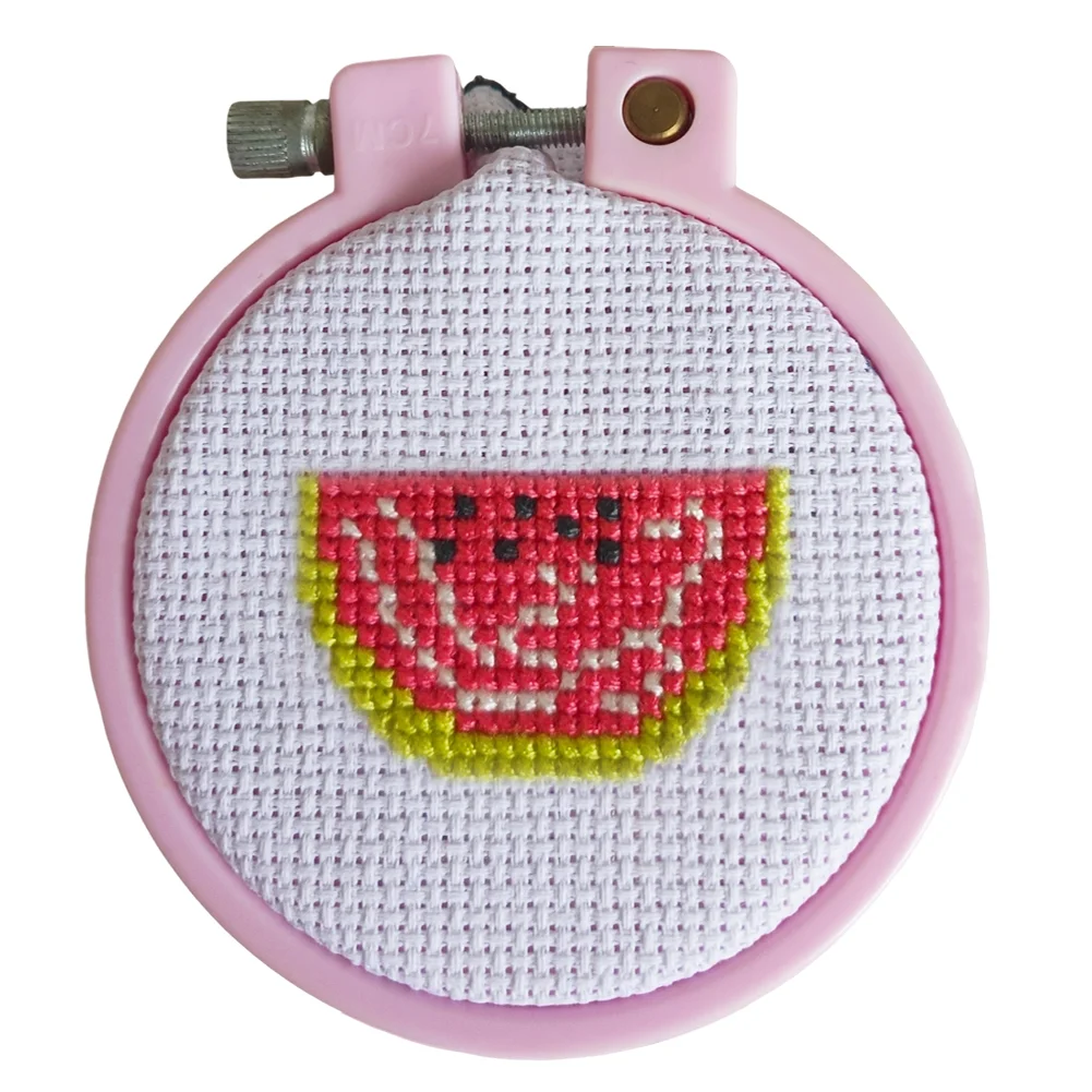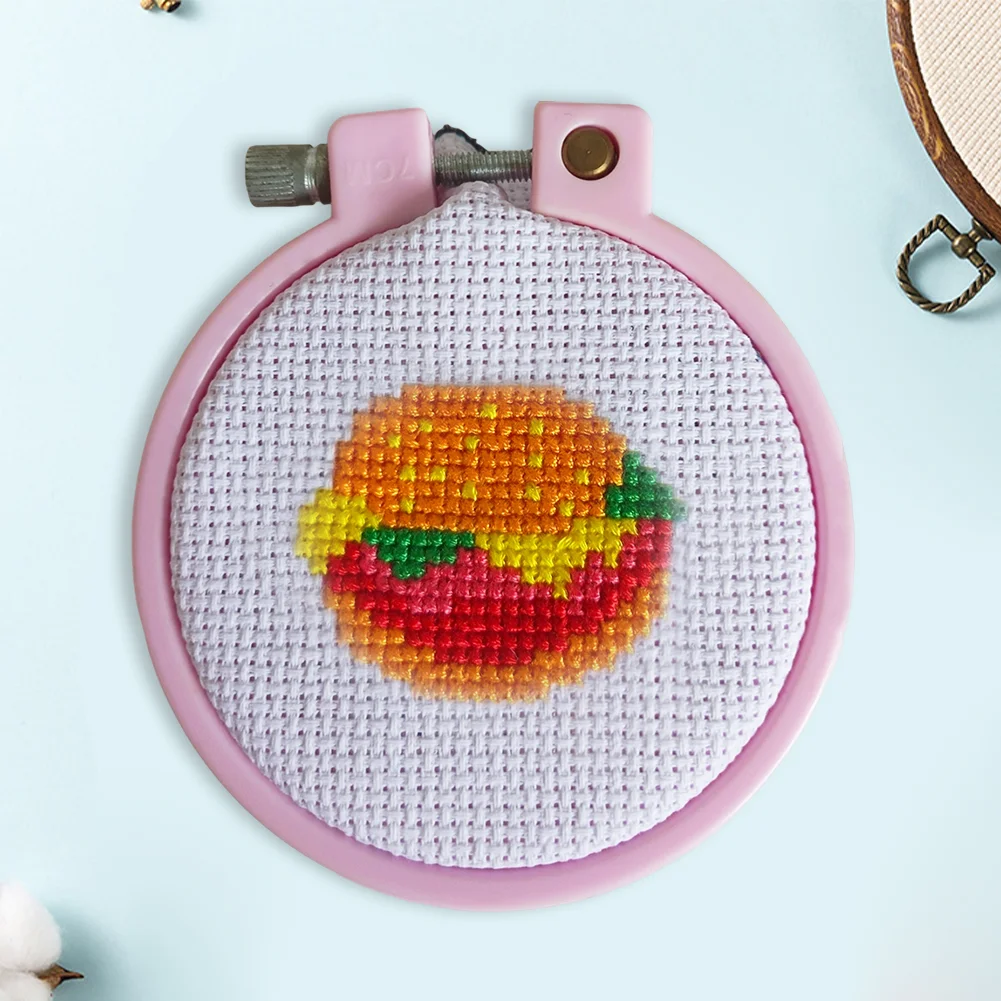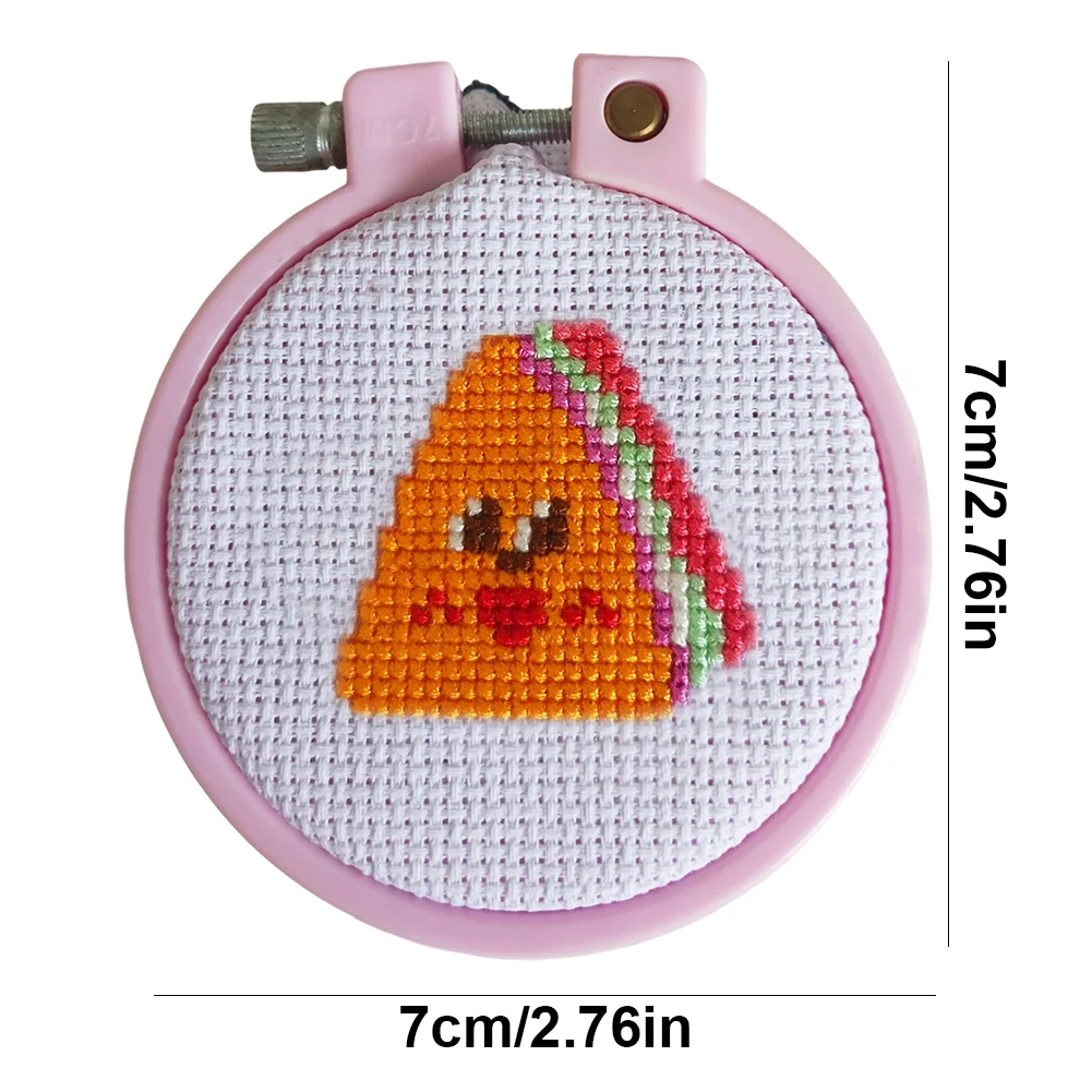 Cross Stitch Keyring Material Pack with Embroidery Hoop Embroidery Art Keychain Pendant Needle Thread Cloth for Beginners Adults