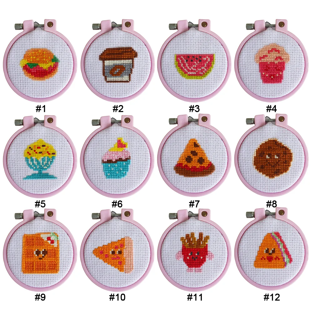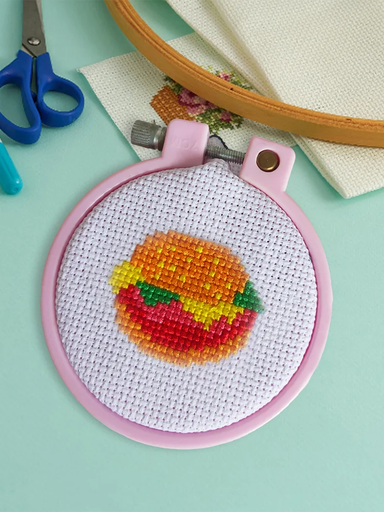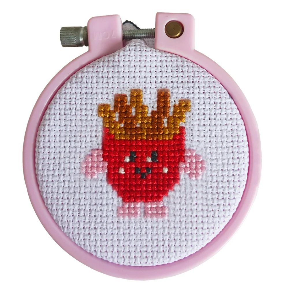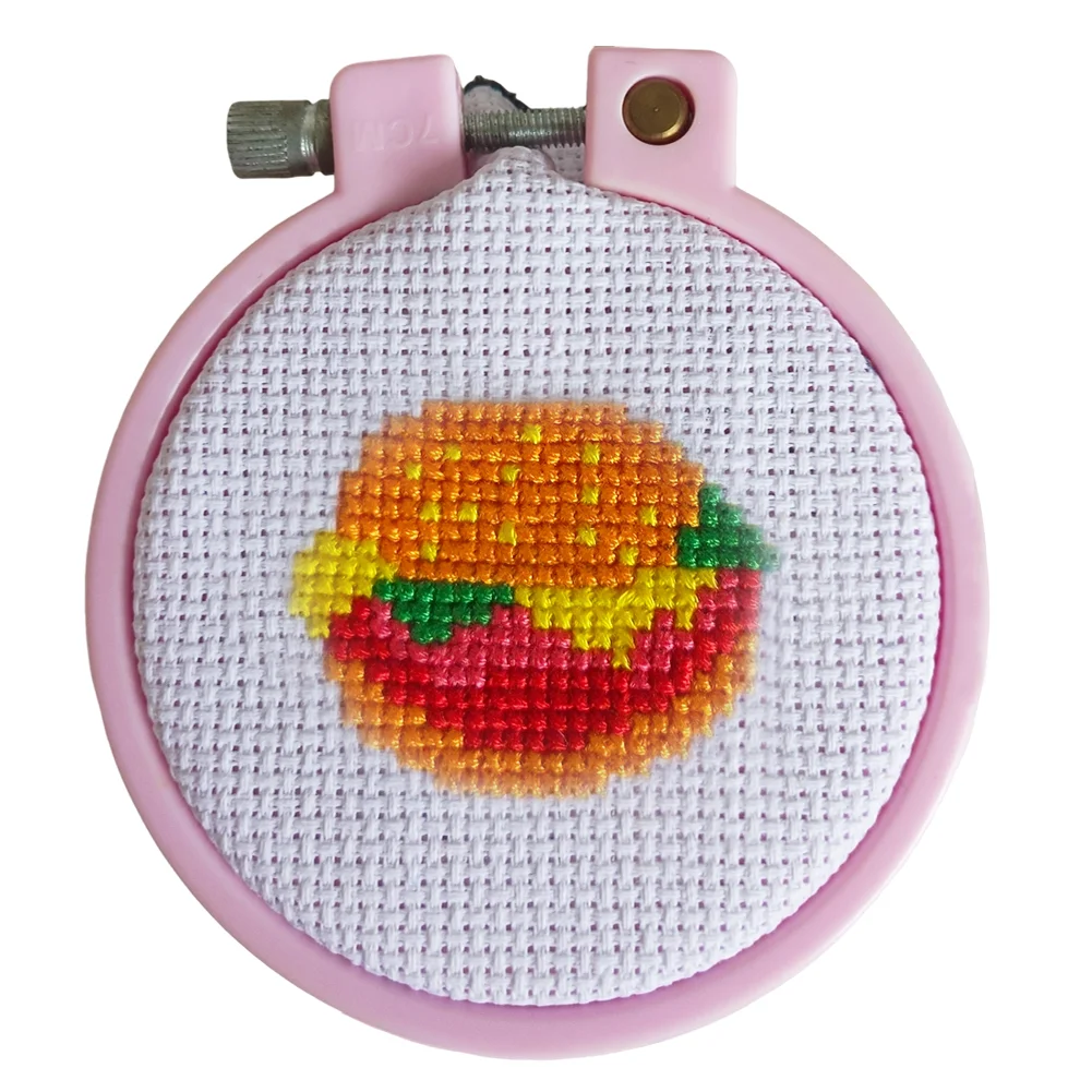 Cross Stitch Keyring Material Pack with Embroidery Hoop Embroidery Art Keychain Pendant Needle Thread Cloth for Beginners Adults