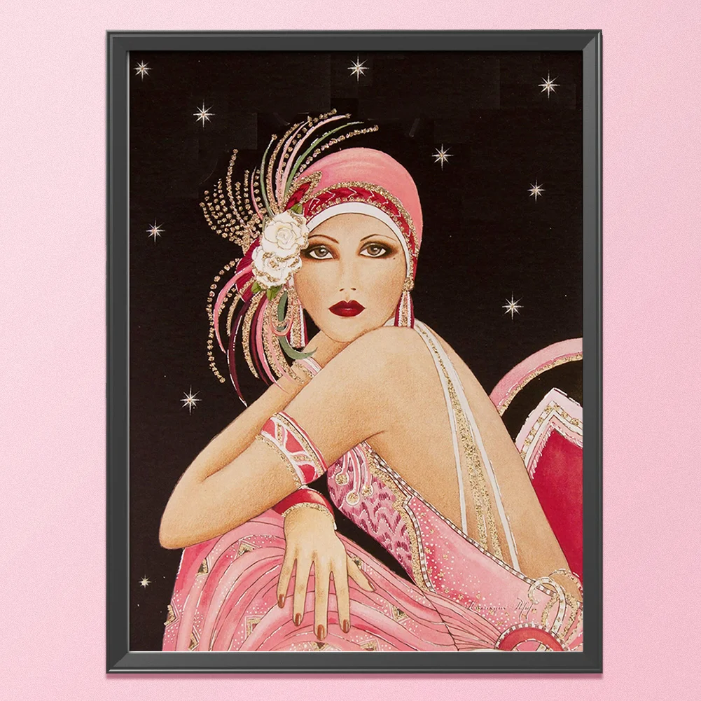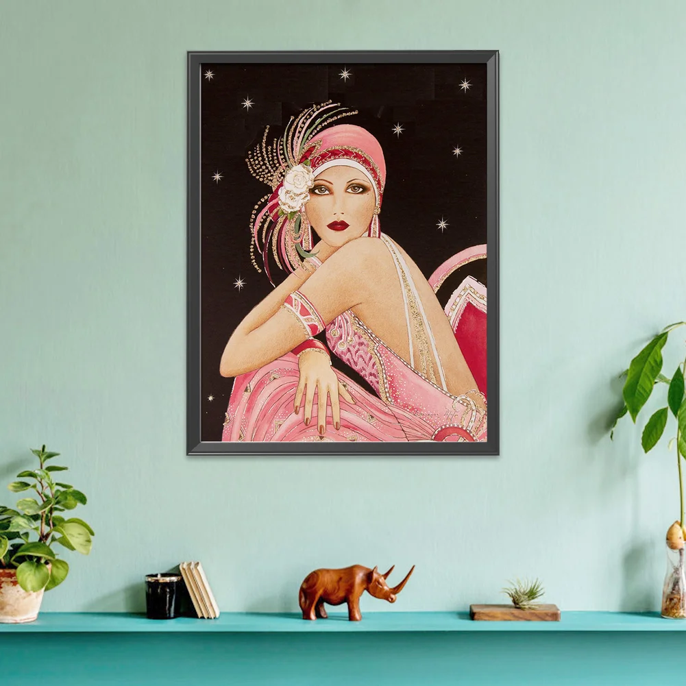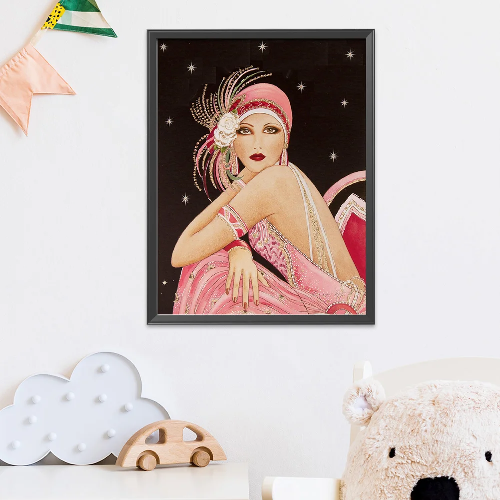 Stamped Cross Stitch Kits Woman Portrait Embroidery Sets DIY 3-Strand Cotton Thread 11CT Pre Printed Fabric Needlework Crafts Home Decoration