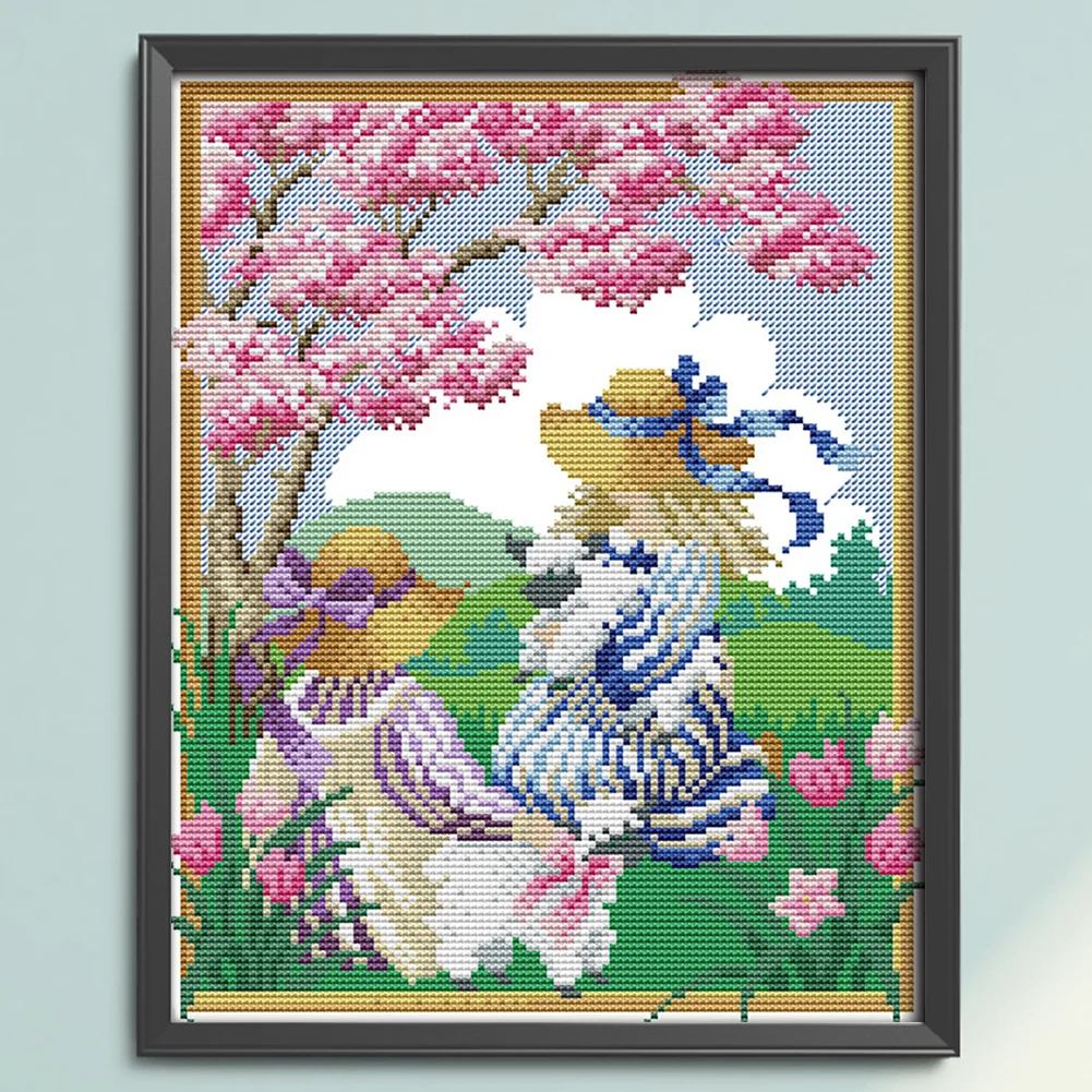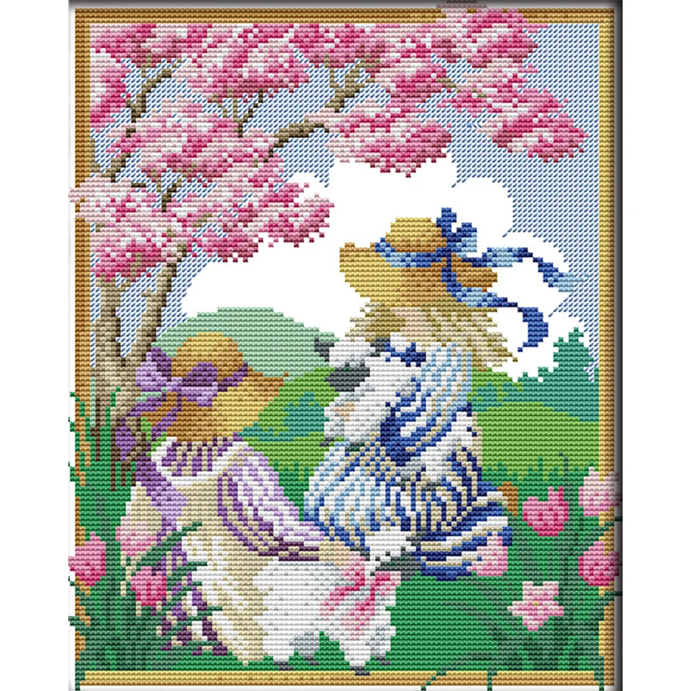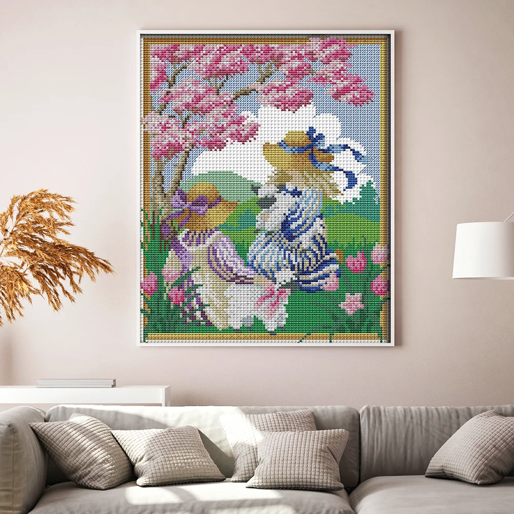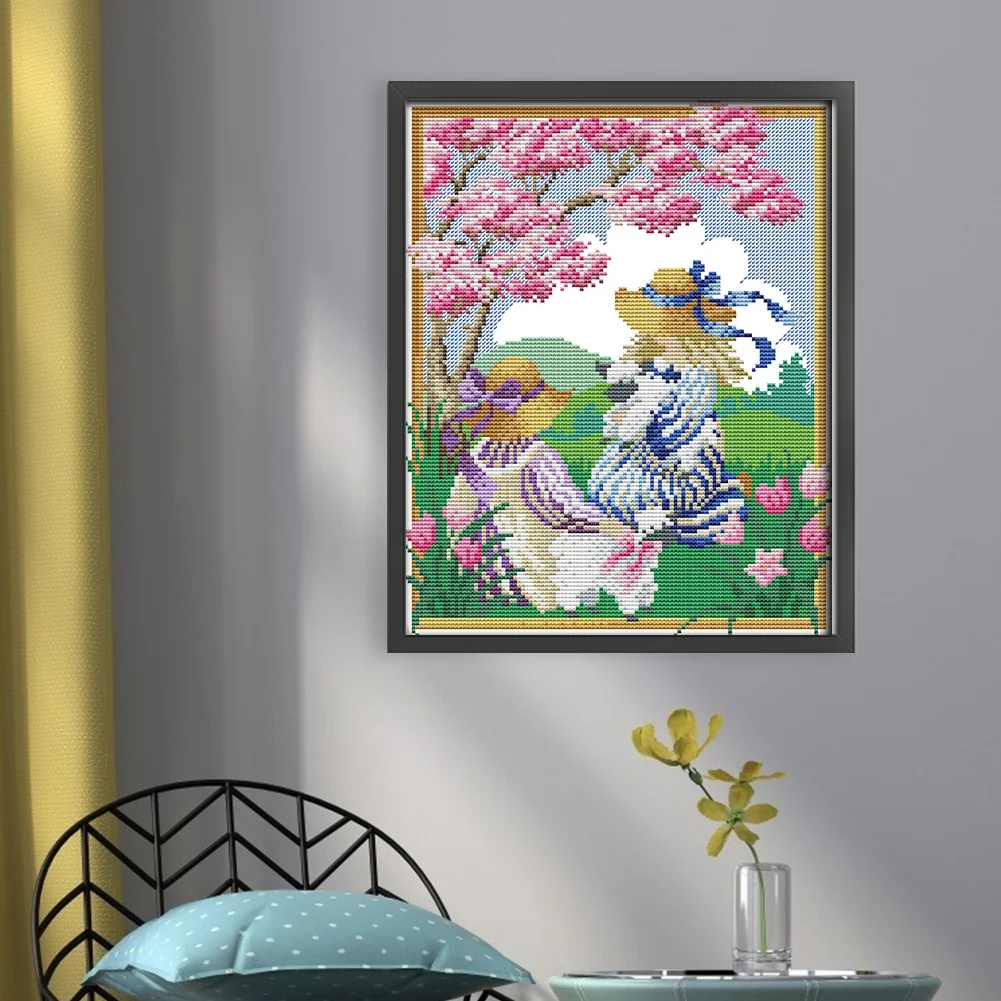 [JOY SUNDAY] -14CT Partial Stamped Cross Stitch Kit - Spring Girl (27*33CM)