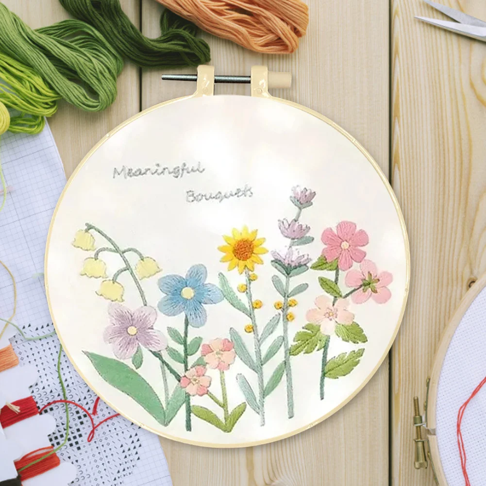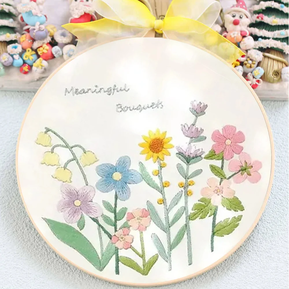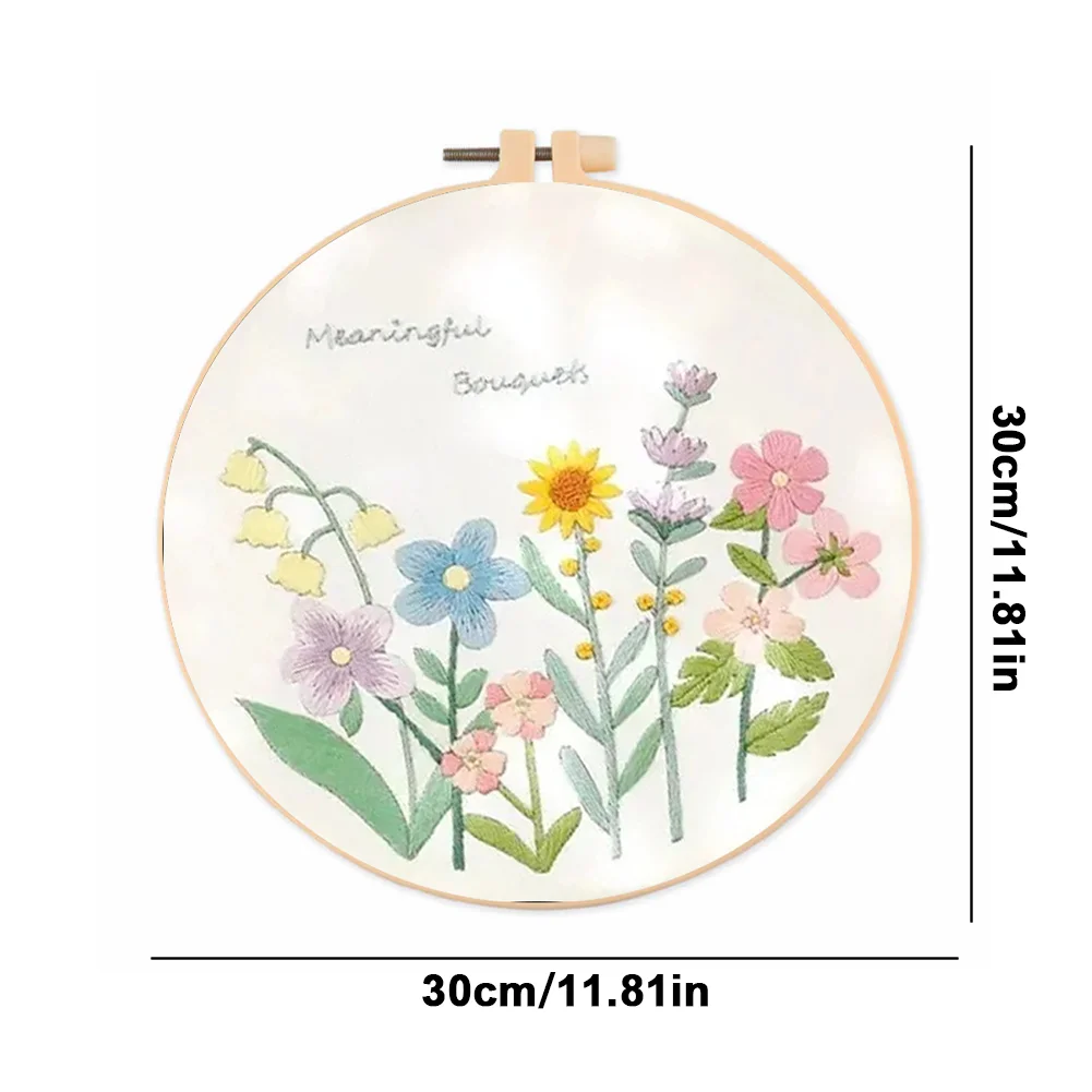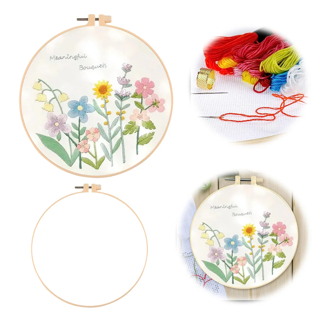 Flower DIY Embroidery Kit with Pattern Cotton Threads Needles Hoop