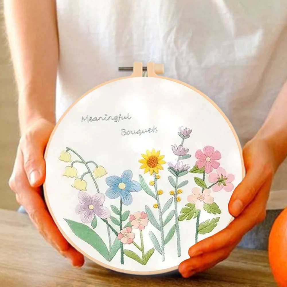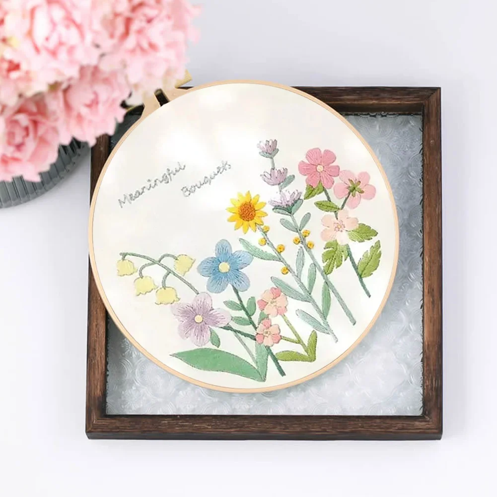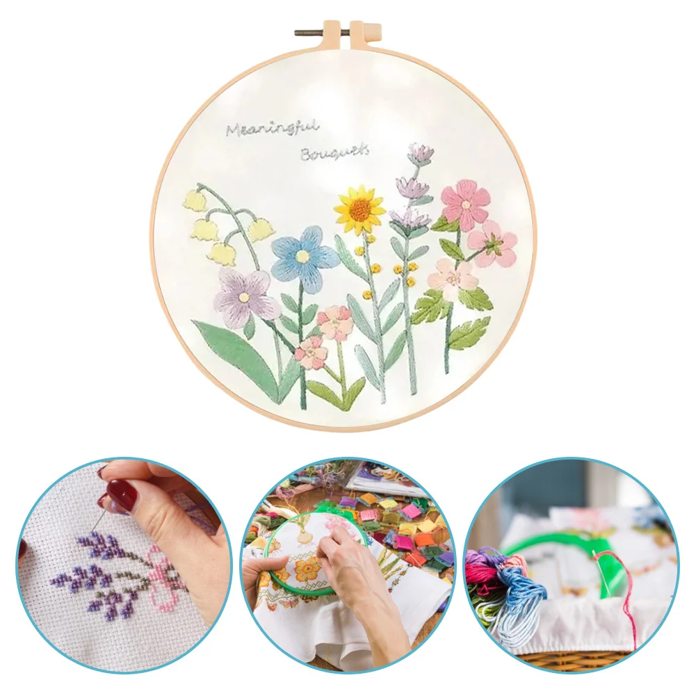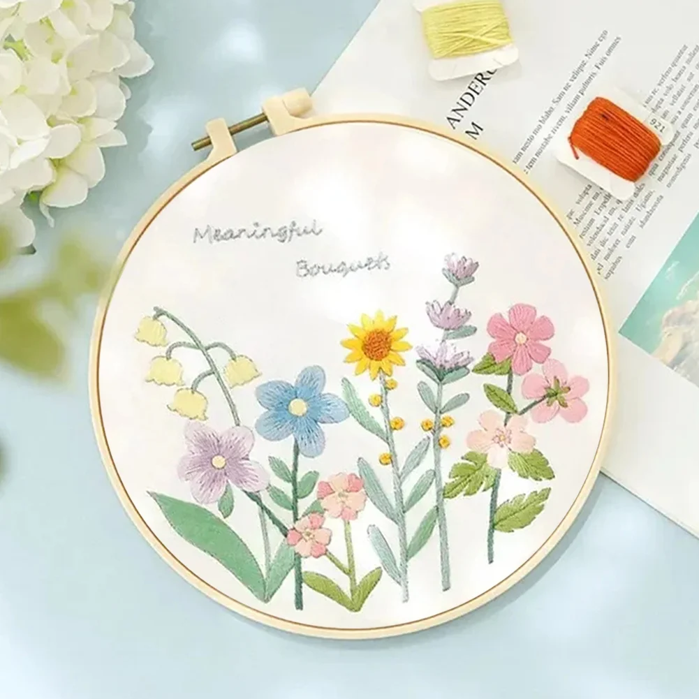 Flower DIY Embroidery Kit with Pattern Cotton Threads Needles Hoop
