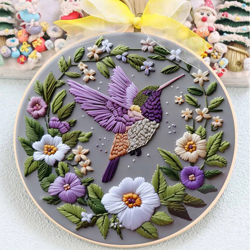 Animal Needlework Embroidery Kit with Pattern Cotton Threads Needles Hoop Handmade Sewing Art Craft Kit for Mom Grandma