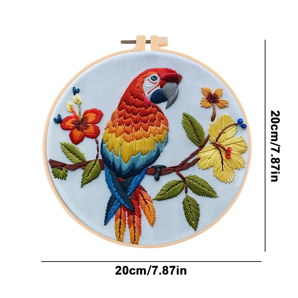 Animal Needlework Embroidery Kit with Pattern Cotton Threads Needles Hoop Handmade Sewing Art Craft Kit for Mom Grandma