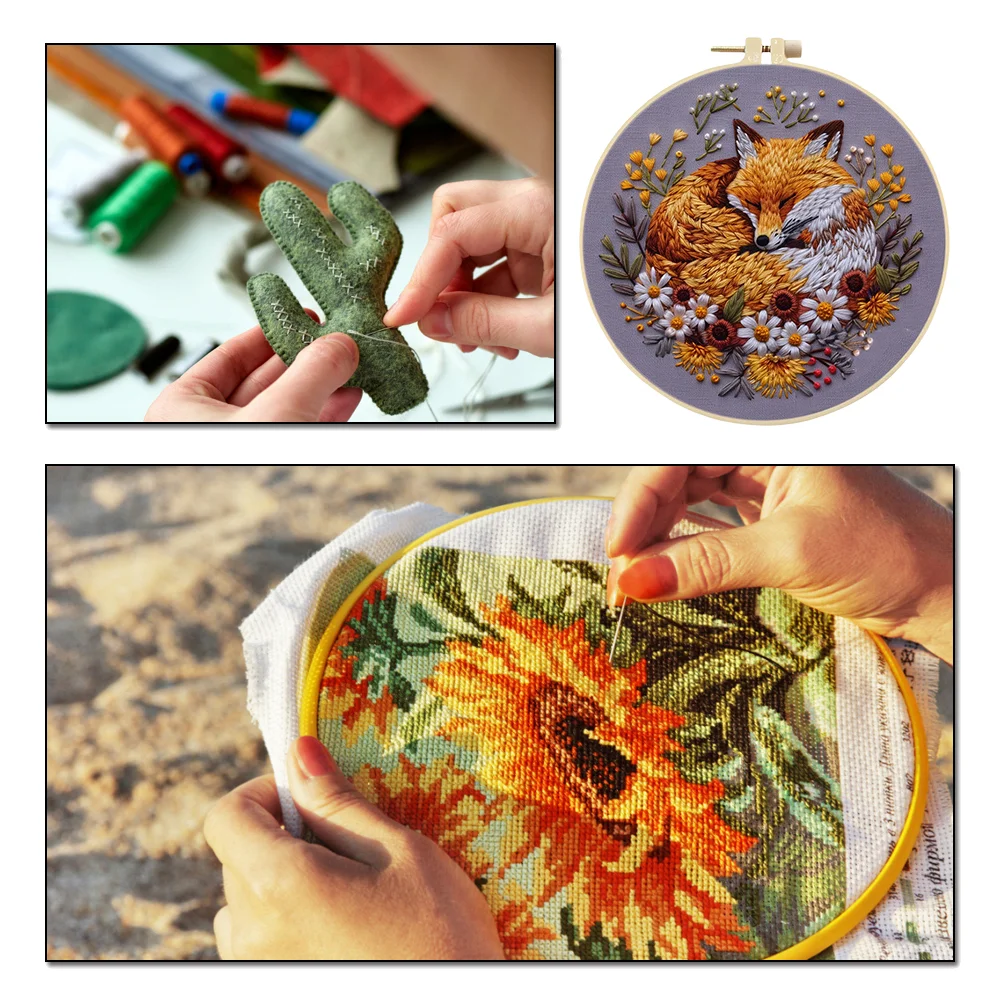 3. Adjustable Bamboo Embroidery Hoop: The bamboo embroidery hoop features adjustable tension screws for secure and even stitching. It can also be used as a frame for your finished artwork.