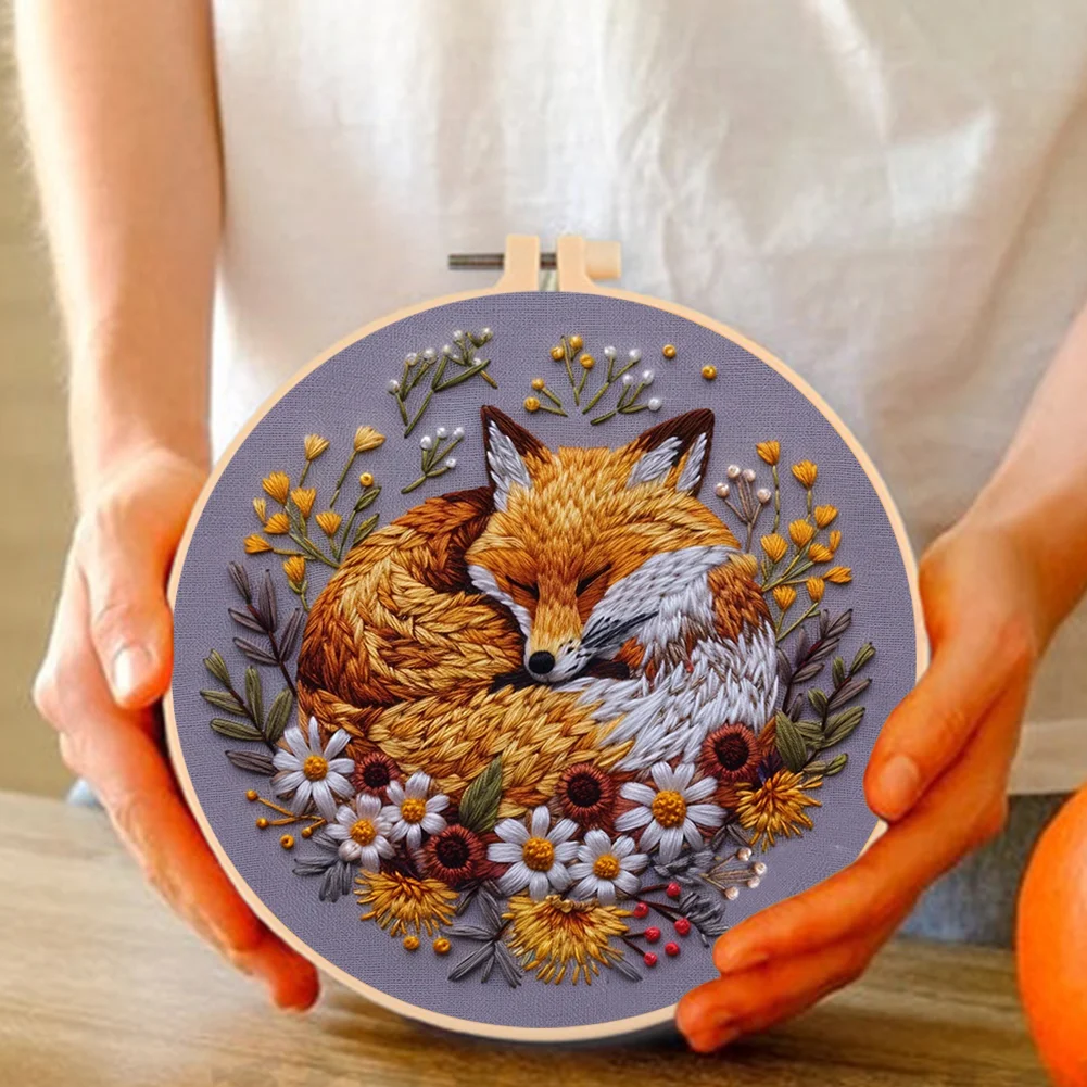 1. Embroidery Starter Kit: Complete set of tools including printed fabric, embroidery thread, embroidery hoop, embroidery needle, and instructions.