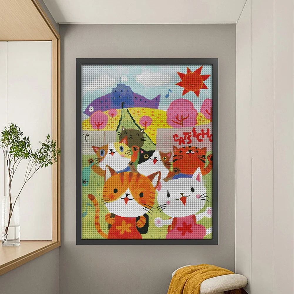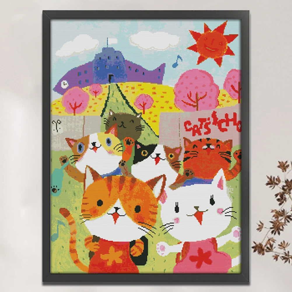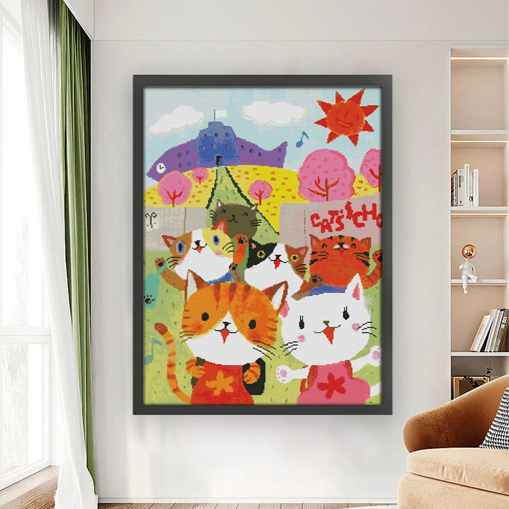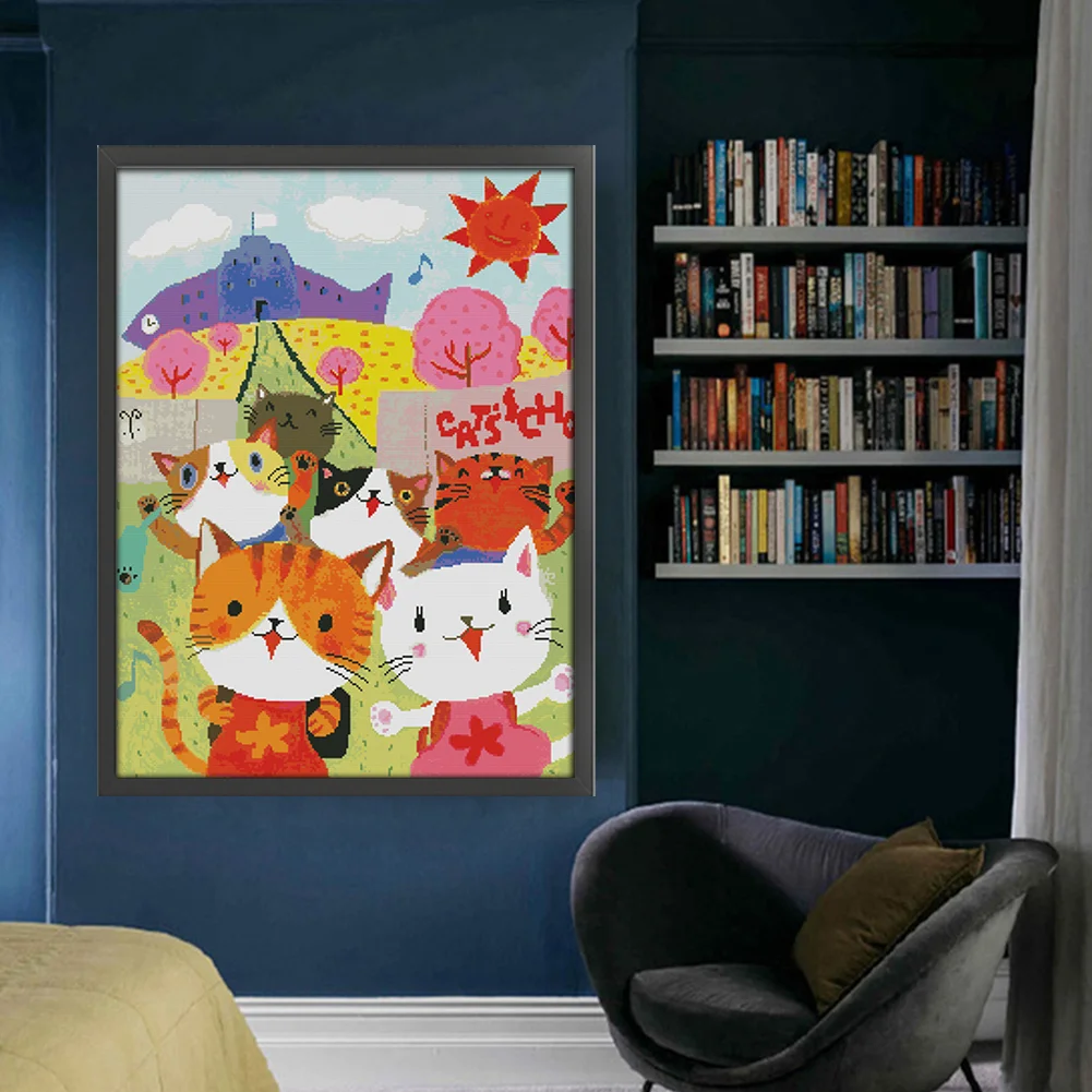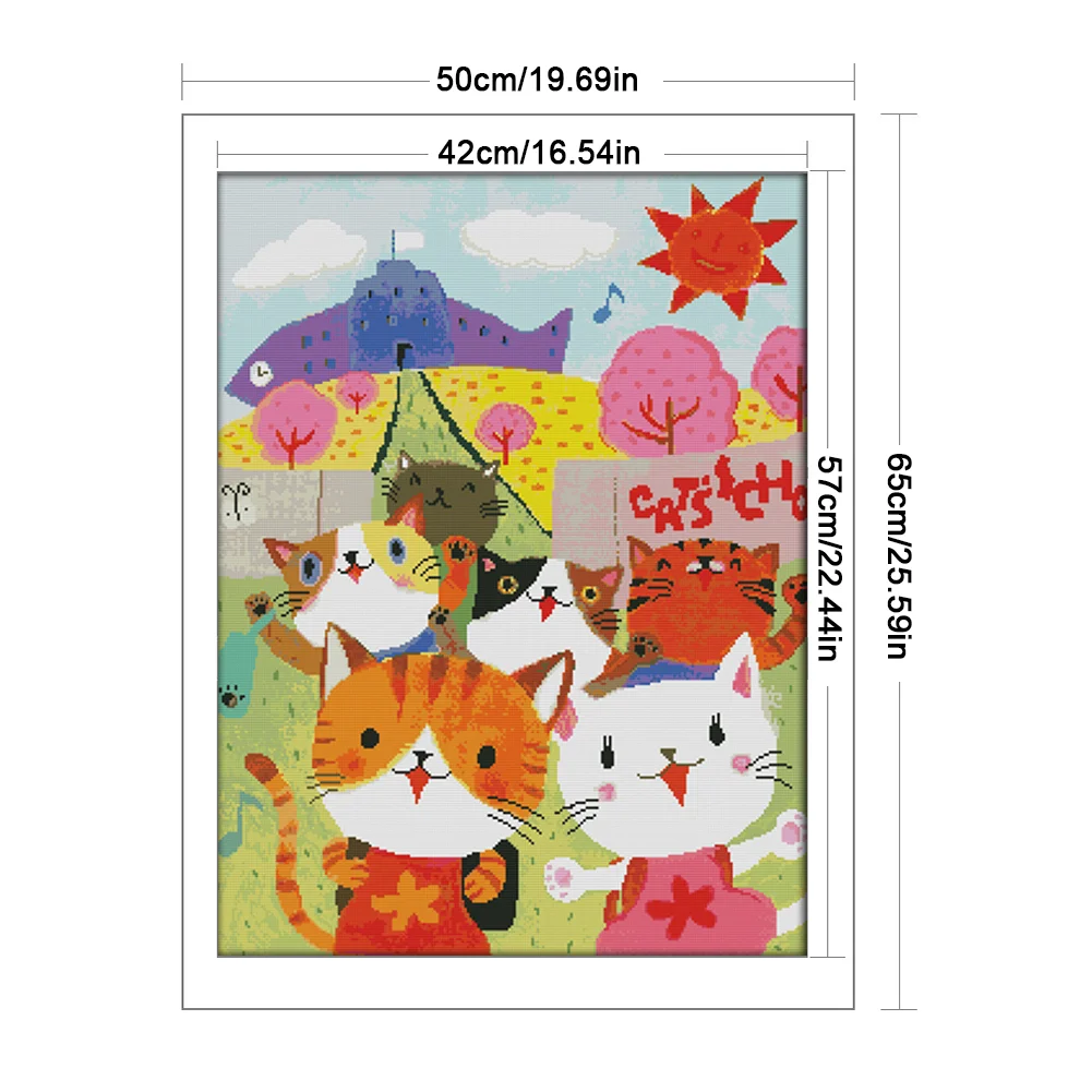 [JOY SUNDAY] -14CT Full Stamped Cross Stitch Kit - Cat After School Picture (50*65CM)