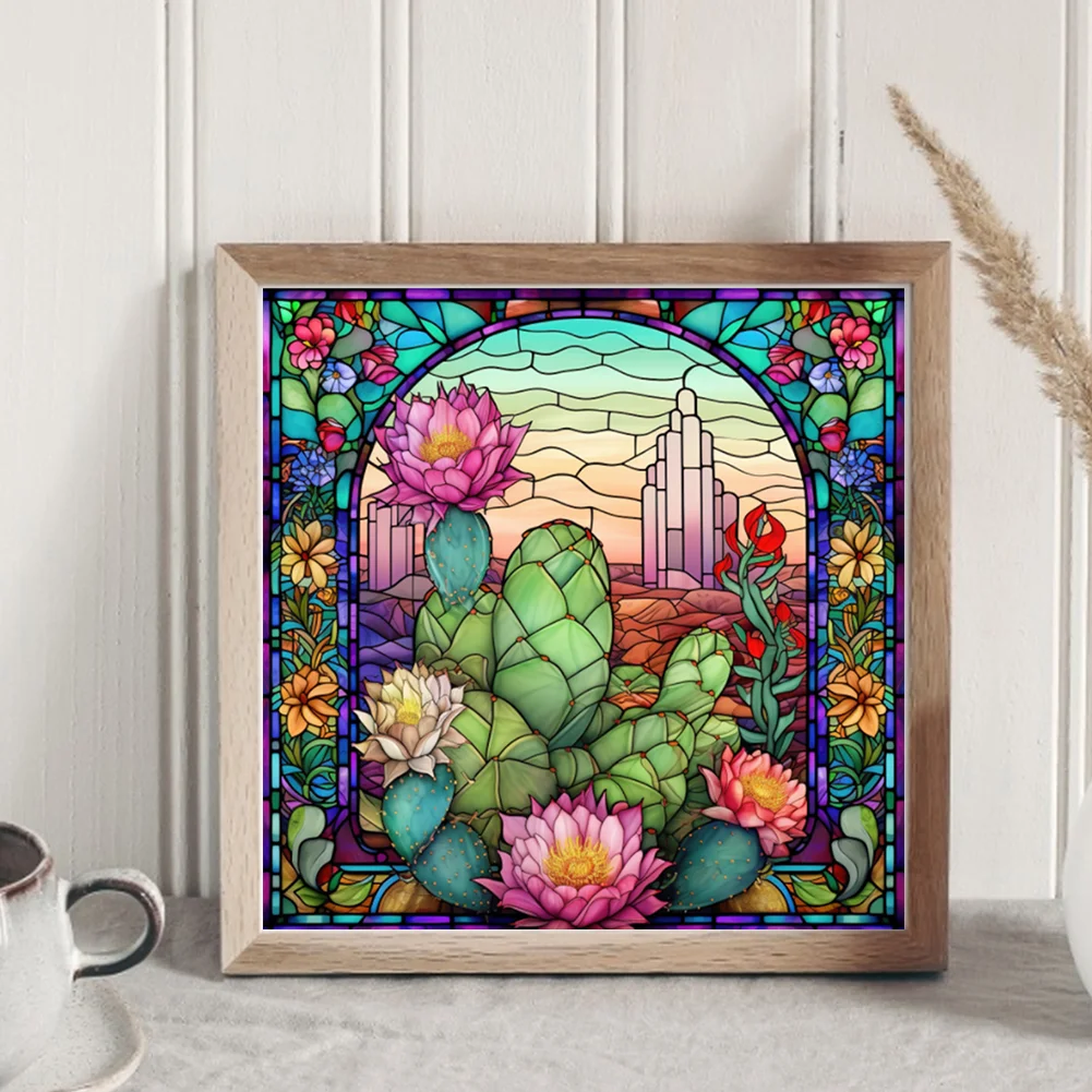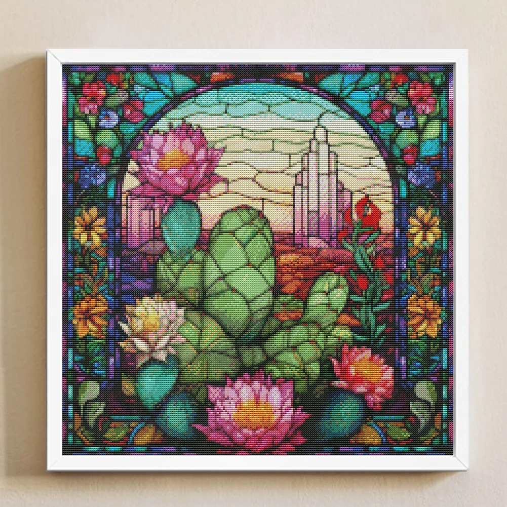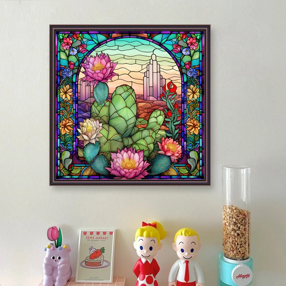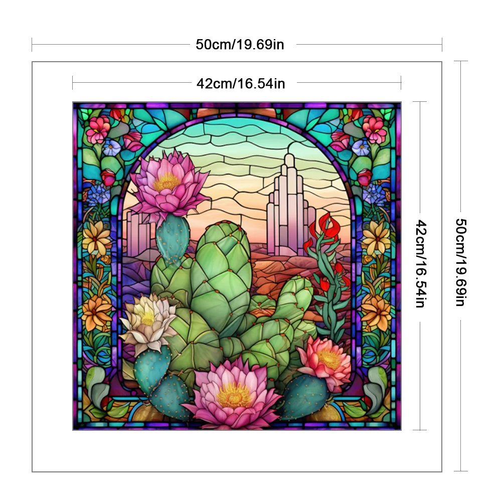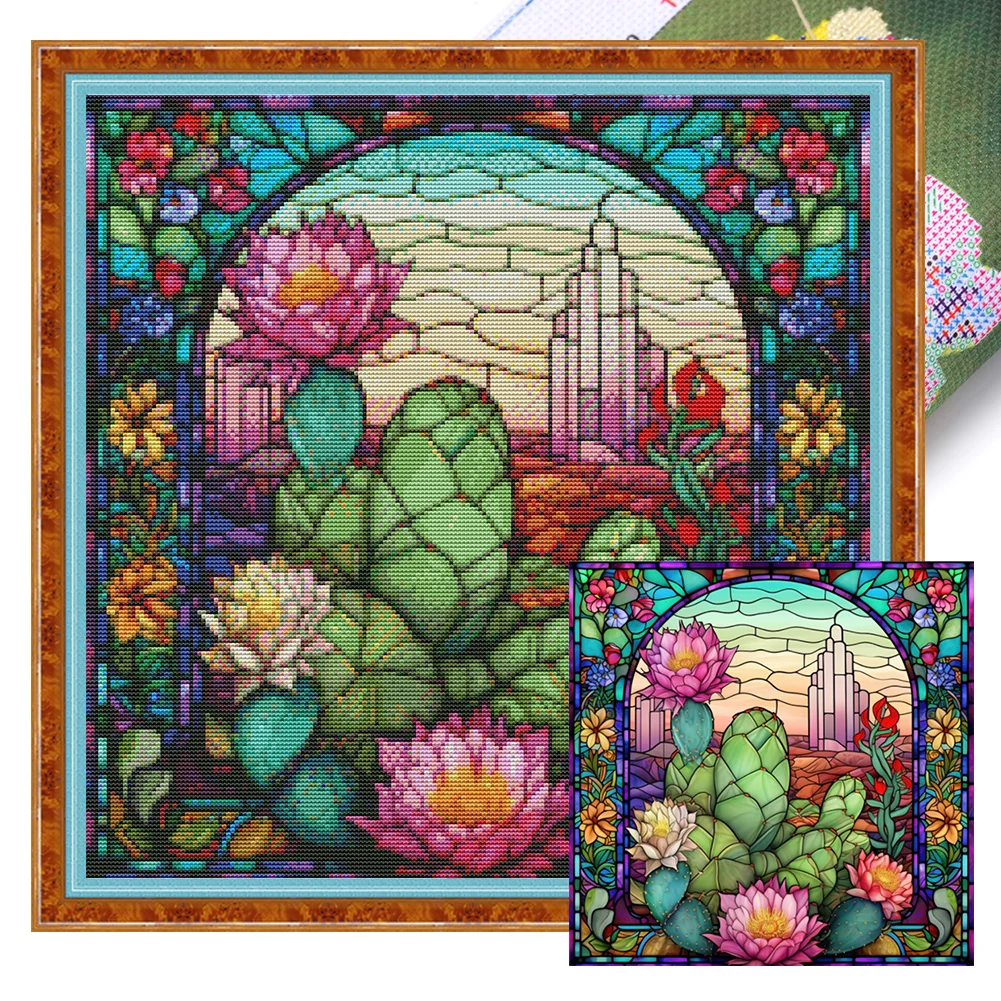 11CT Full Stamped Cross Stitch Kit - Stain Glass Cactus (50*50CM)