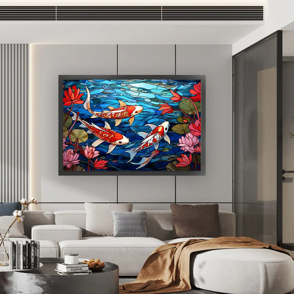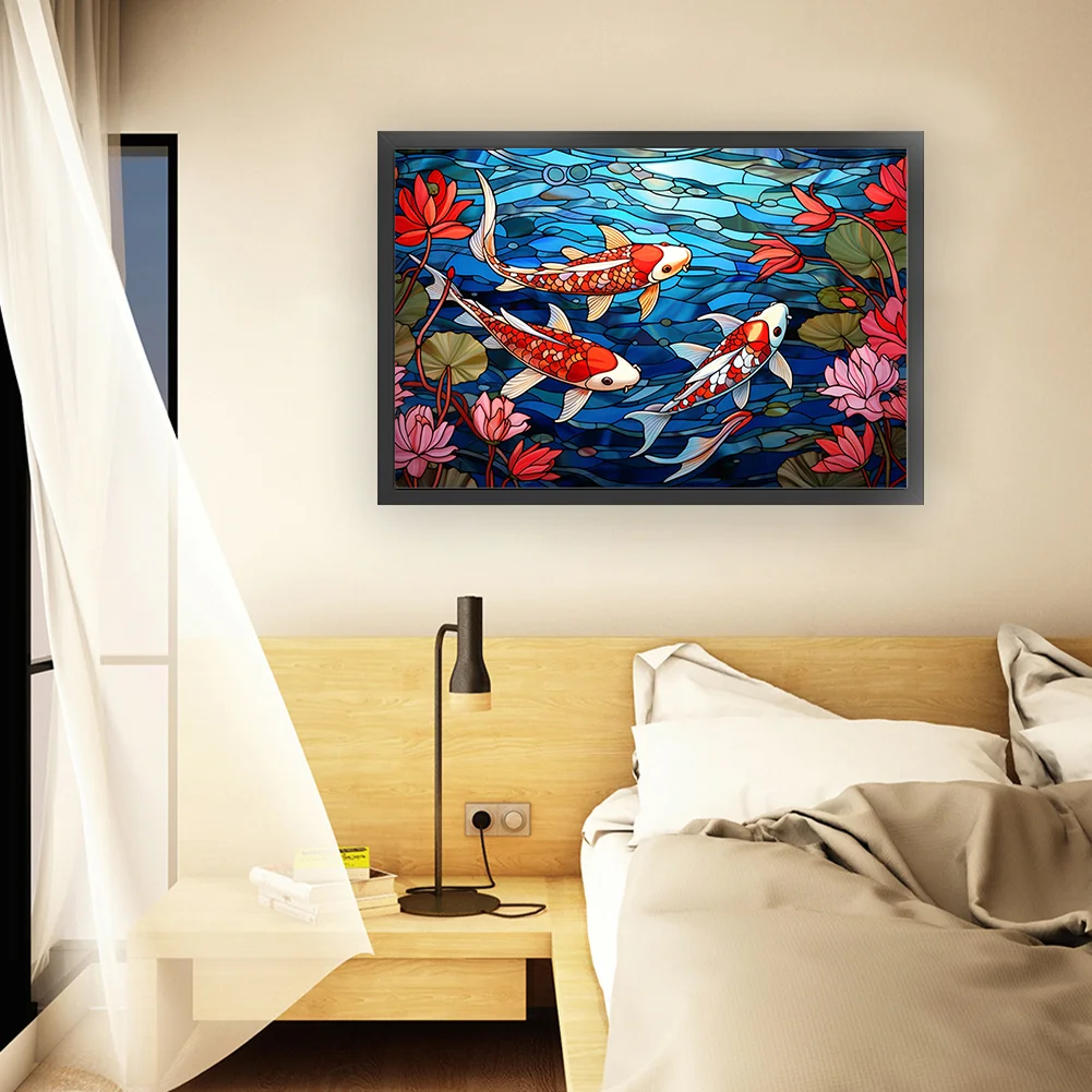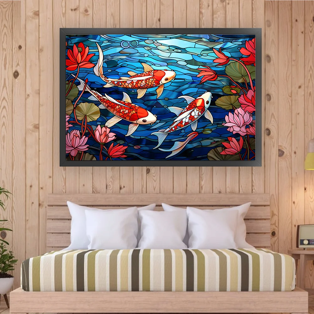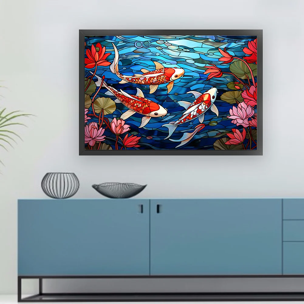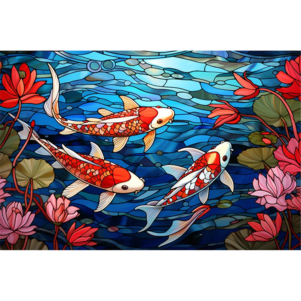 11CT Full Stamped Cross Stitch Kit - Stain Glass Fish (60*40CM)