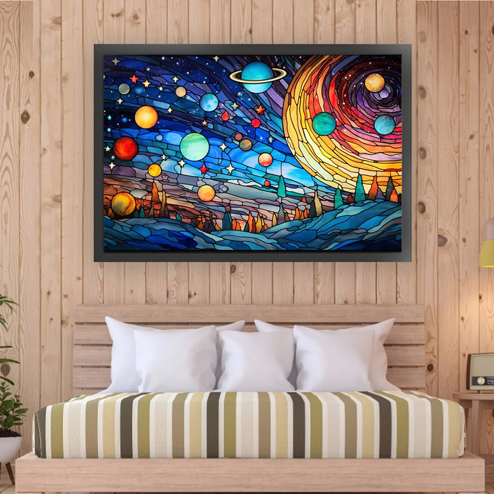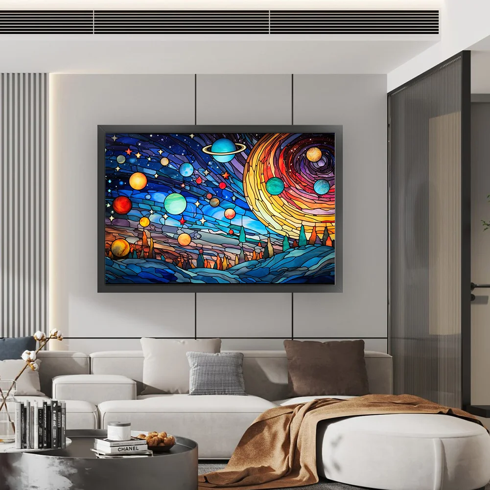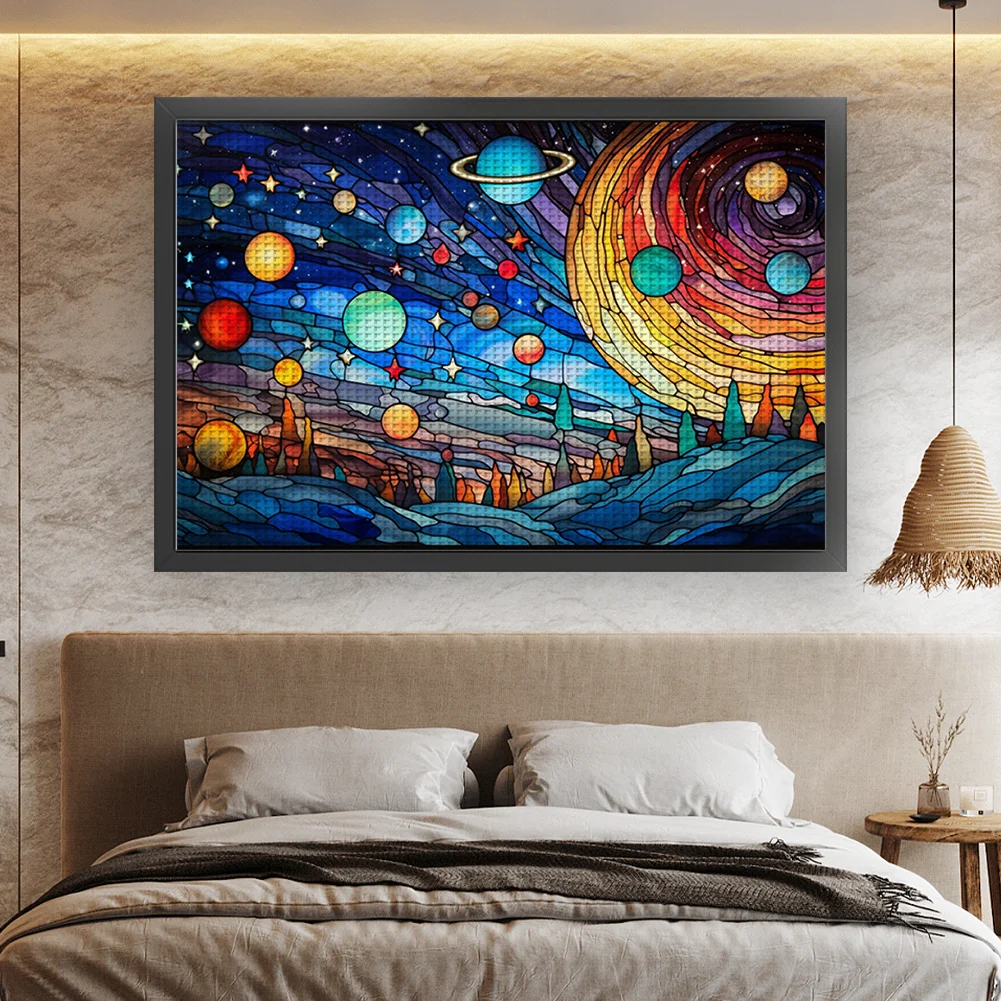 11CT Full Stamped Cross Stitch Kit - Stain Glass Planet (60*40CM)