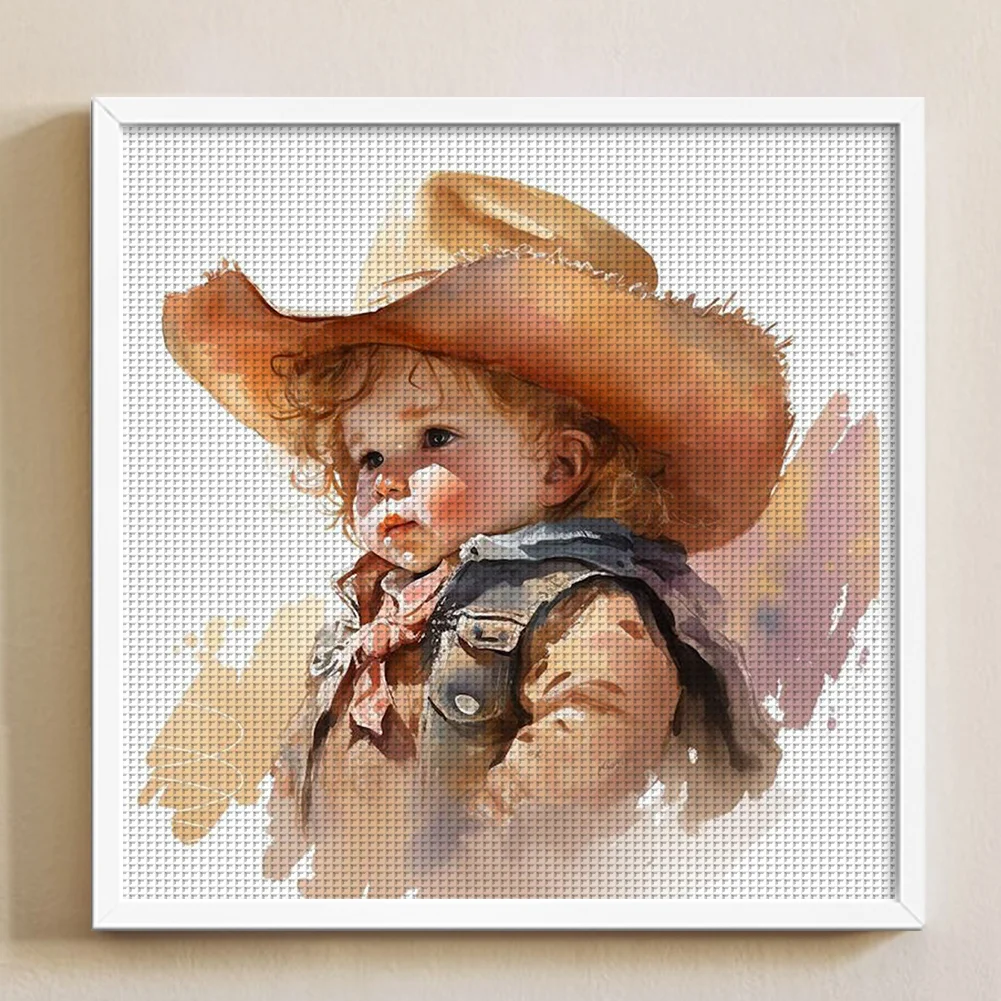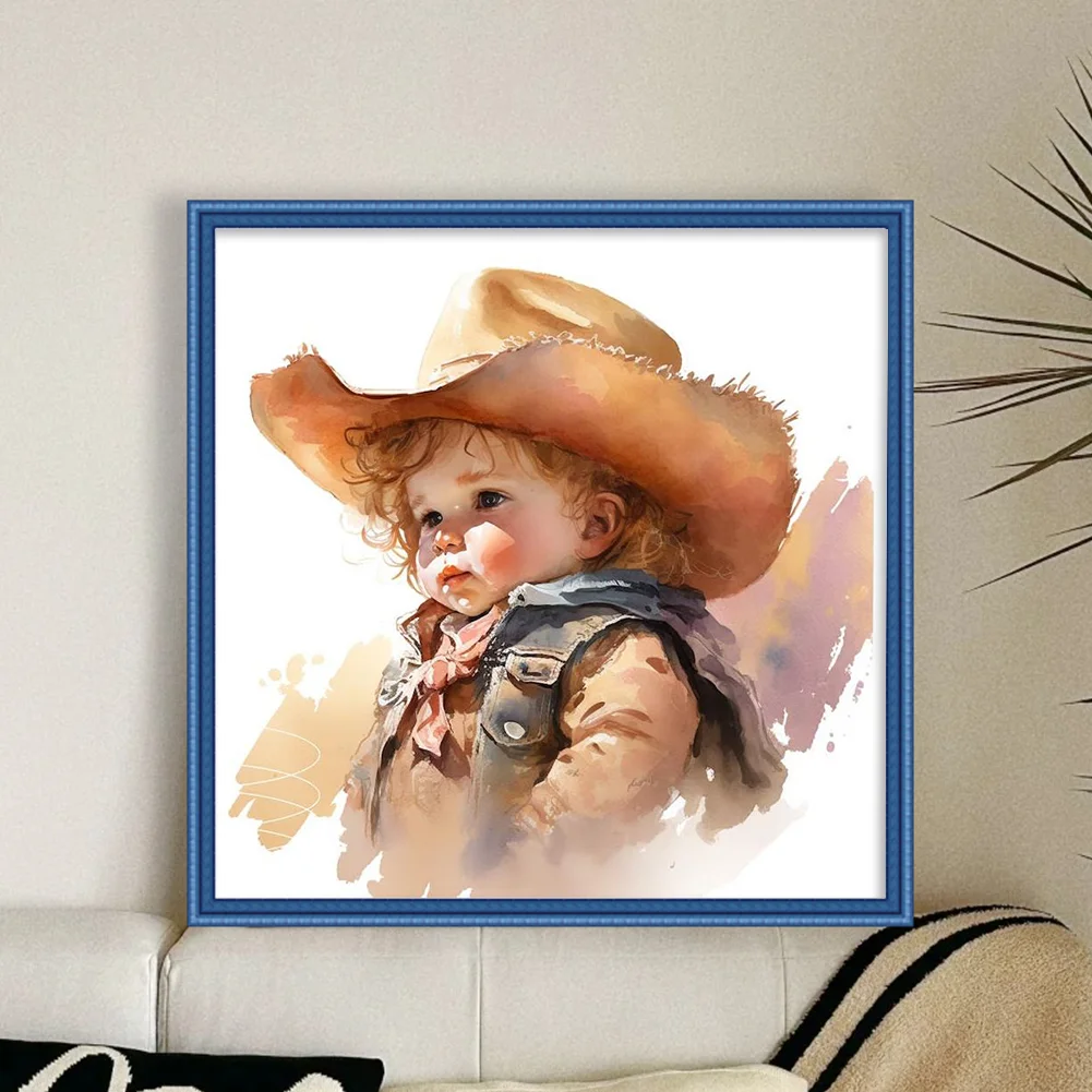 11CT Full Stamped Cross Stitch Kit - Little Cowboy Boy (40*40CM)