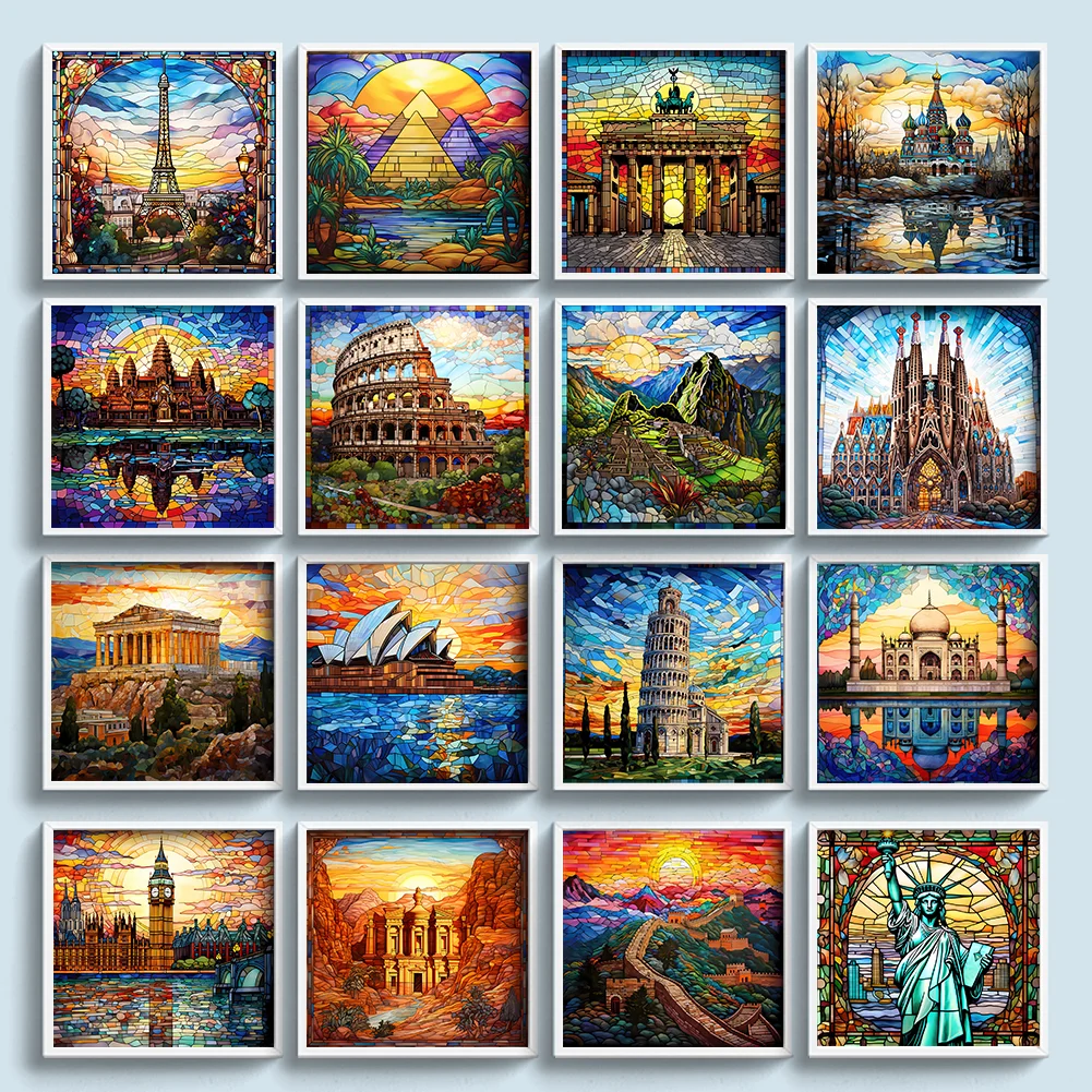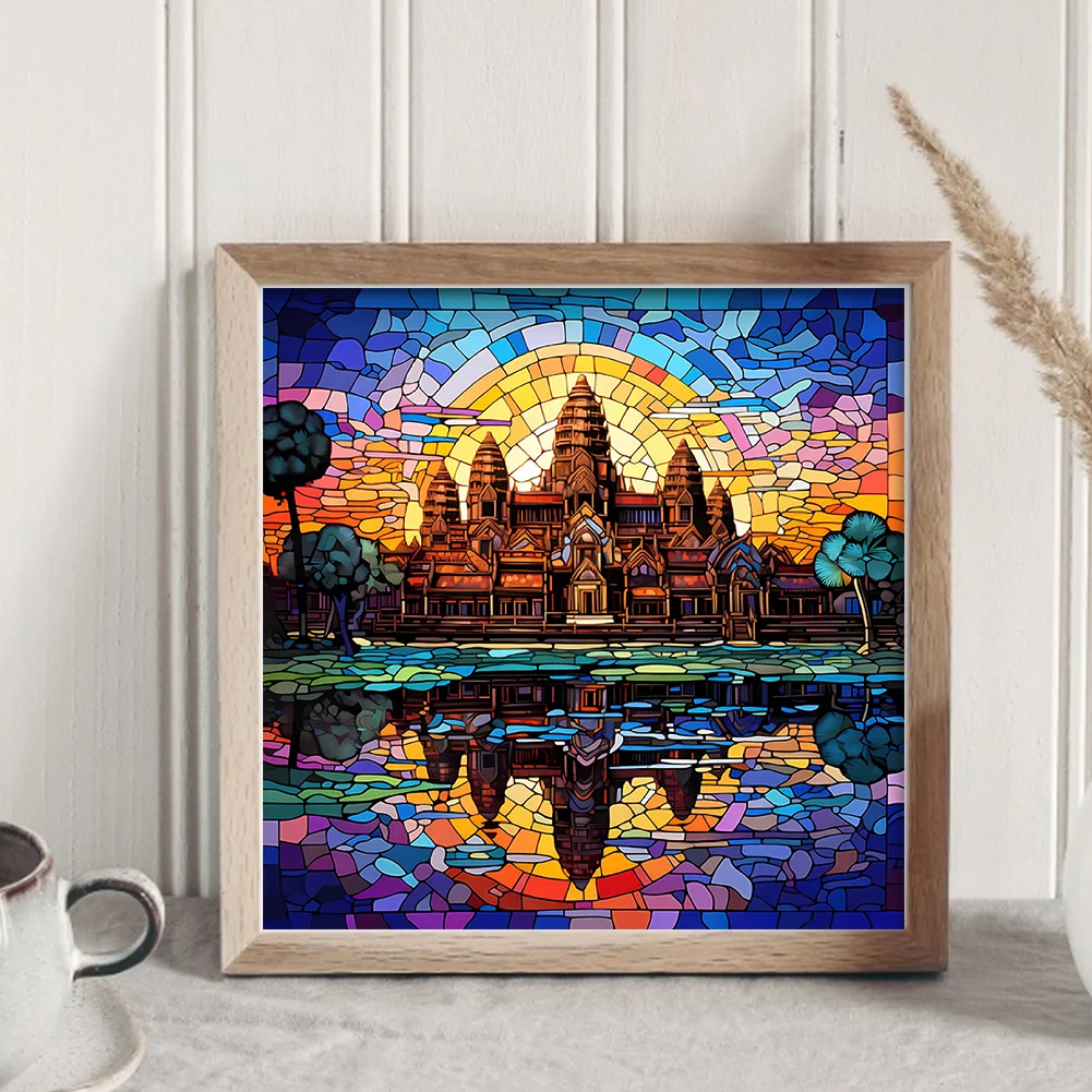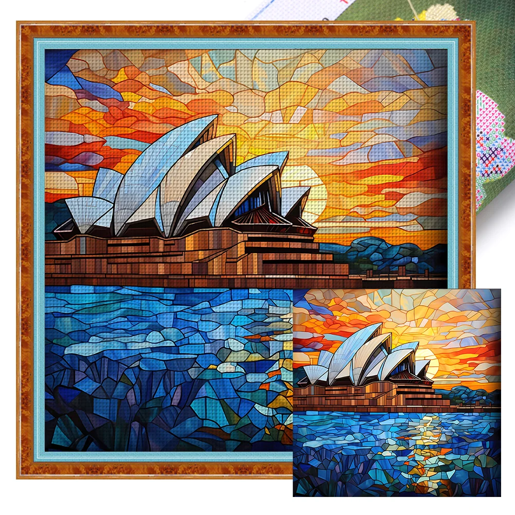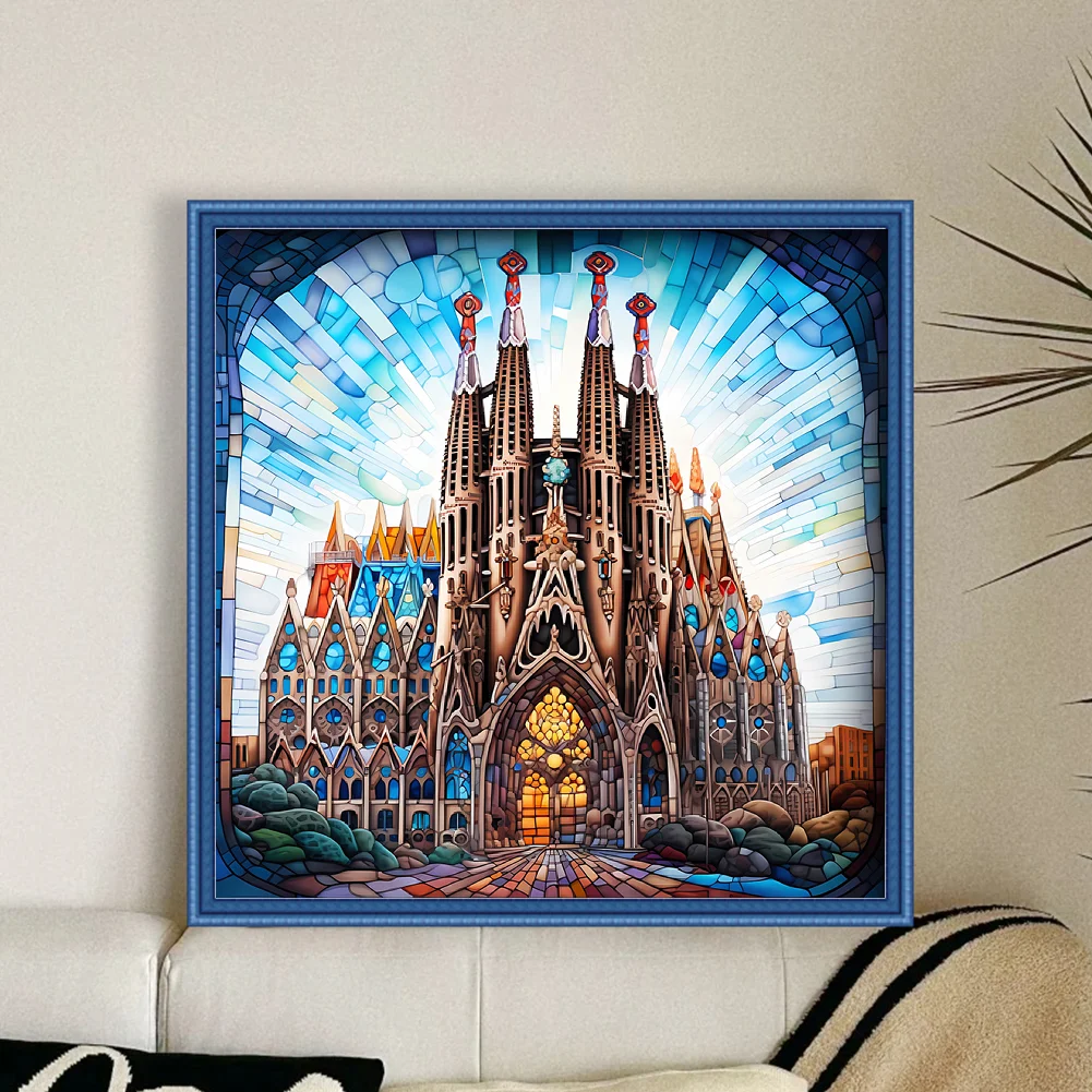 [Hot Series] -11CT Full Stamped Cross Stitch Kit - Stained Glass Landscape (50*50CM)