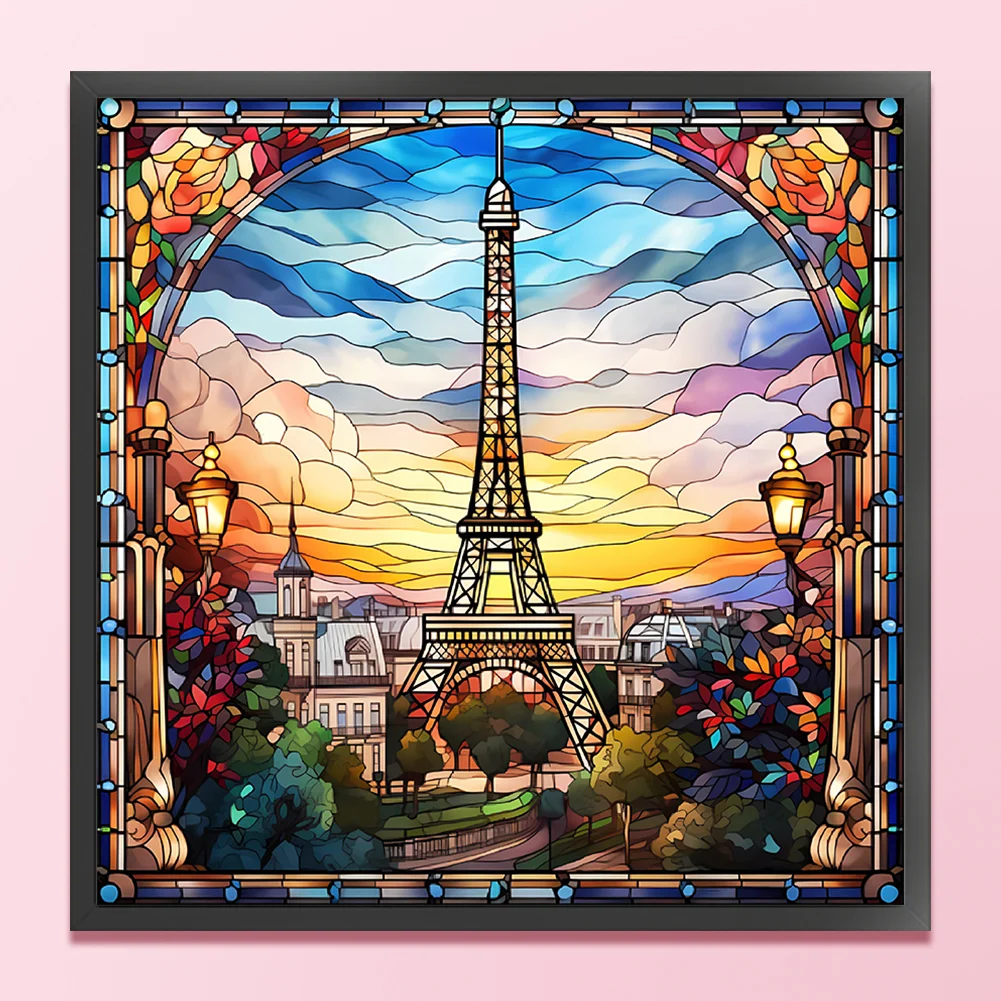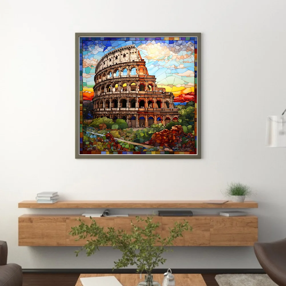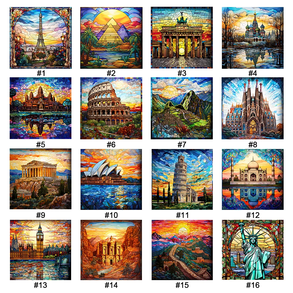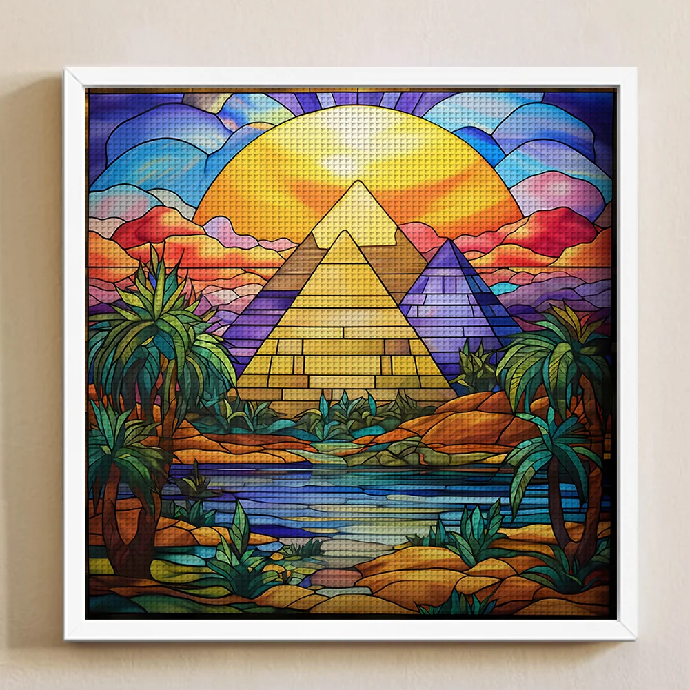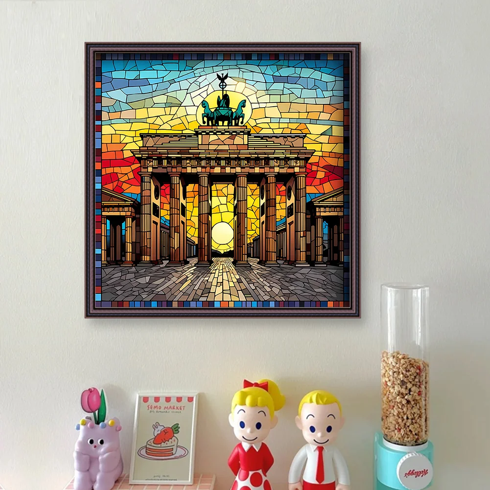 [Hot Series] -11CT Full Stamped Cross Stitch Kit - Stained Glass Landscape (50*50CM)