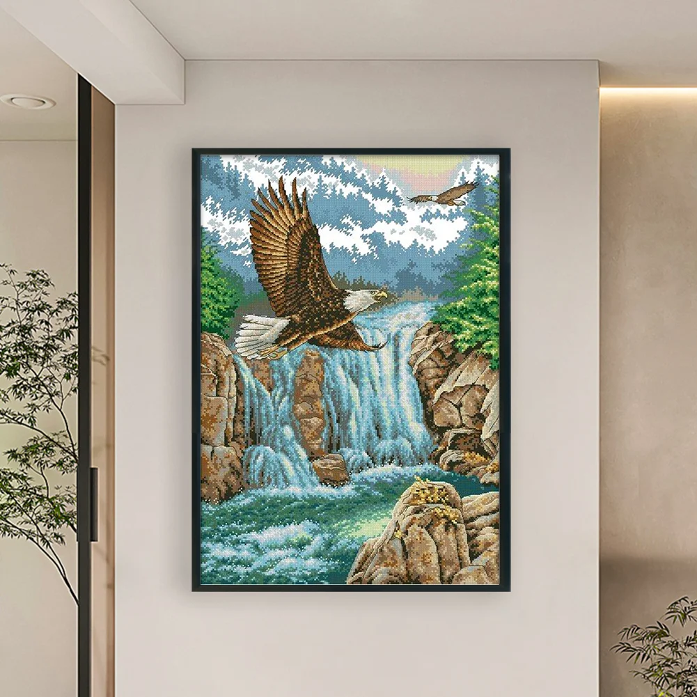 [JOY SUNDAY] -11CT Full Stamped Cross Stitch Kit - Waterfall Eagle (50*70CM)