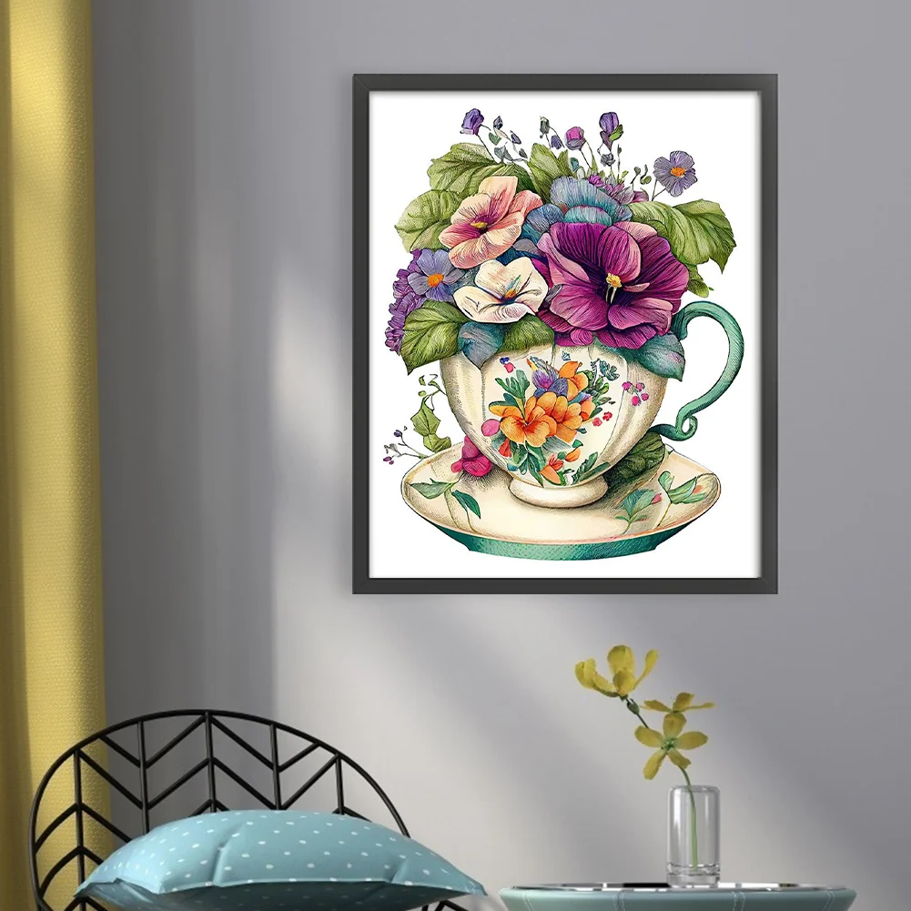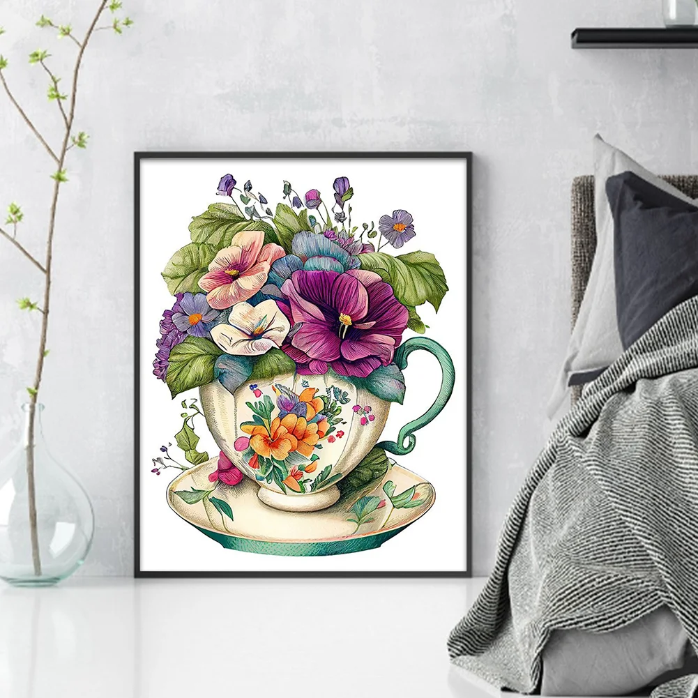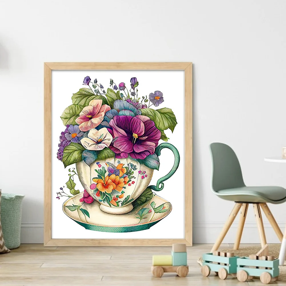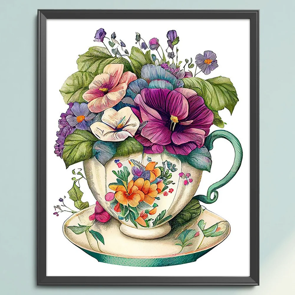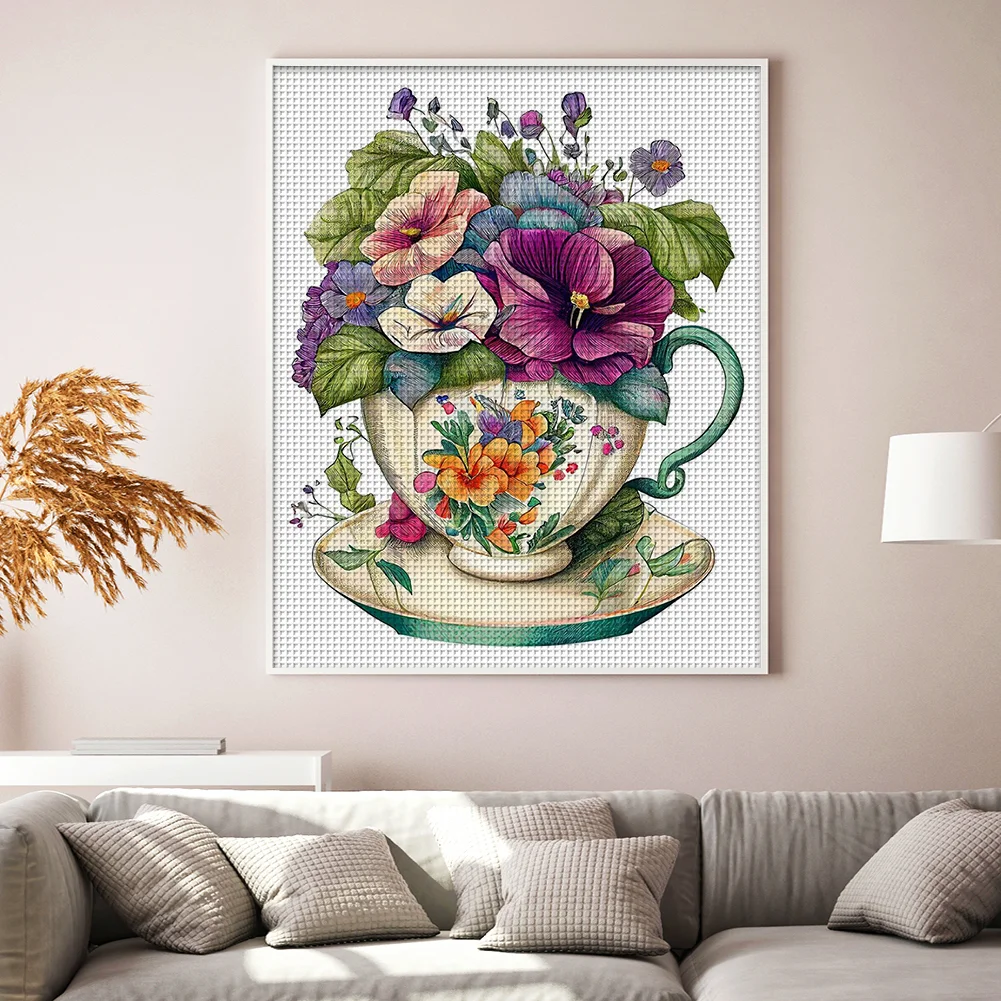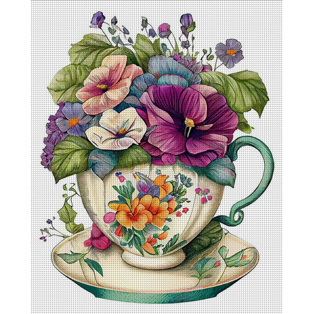 18CT Full Stamped Cross Stitch Kit - Flowers in a Teacup (20*25CM)