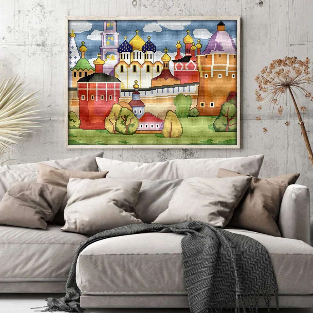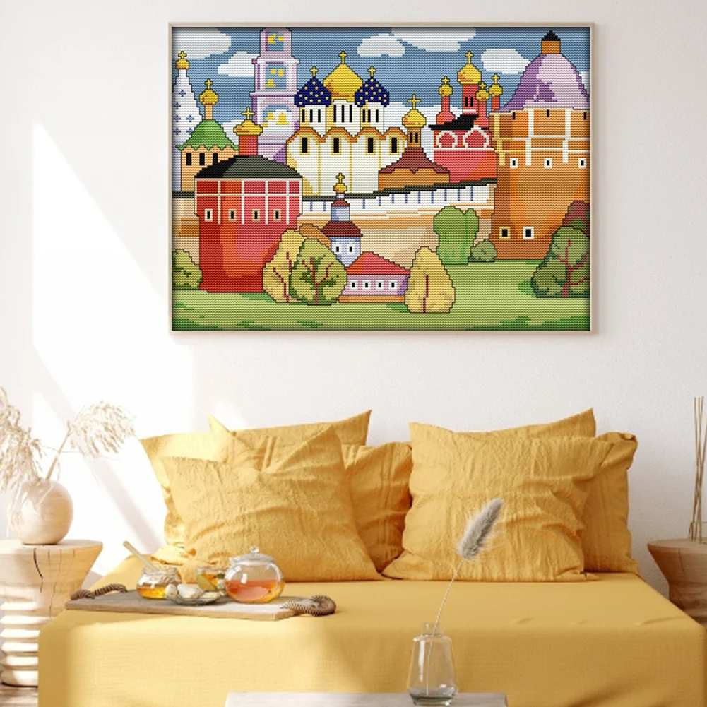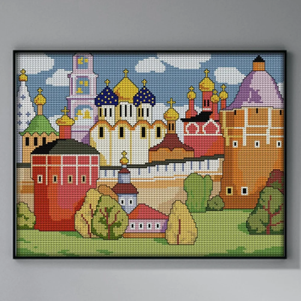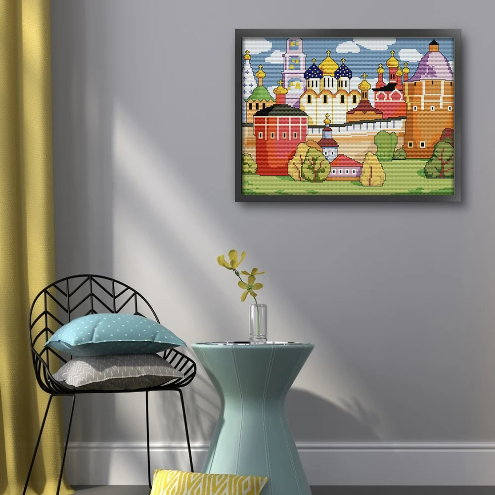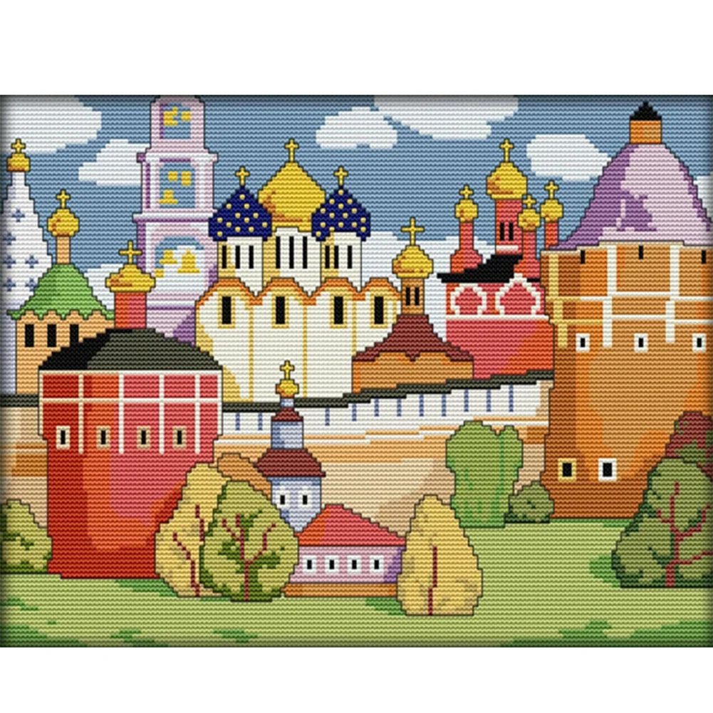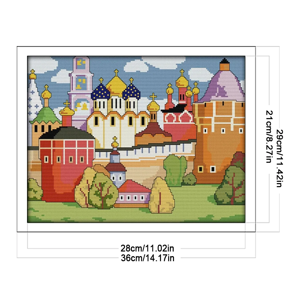 [JOY SUNDAY] -14CT Full Stamped Cross Stitch Kit - Castle in Spring Light (36*29CM)
