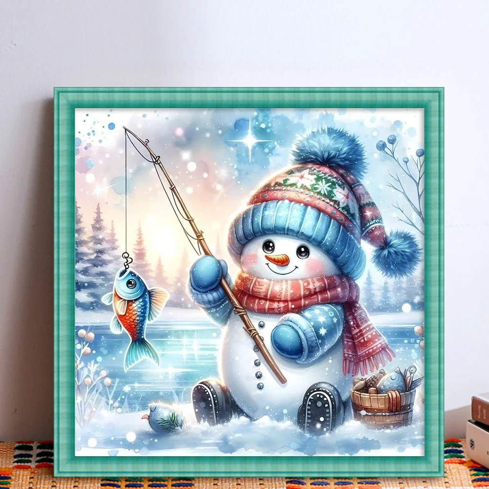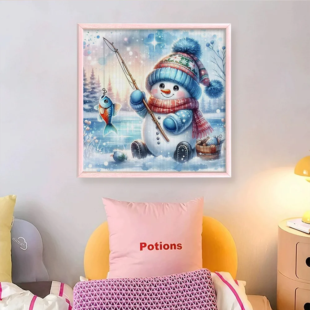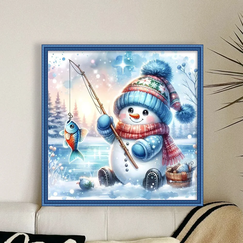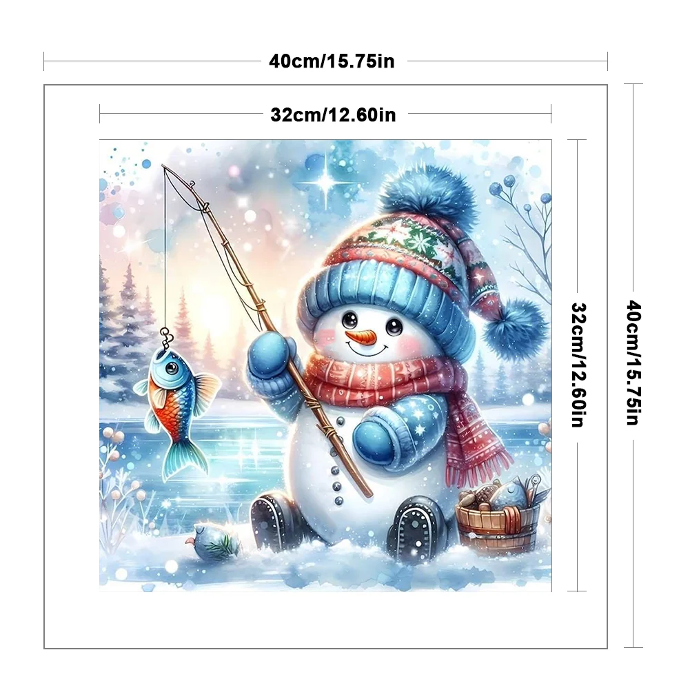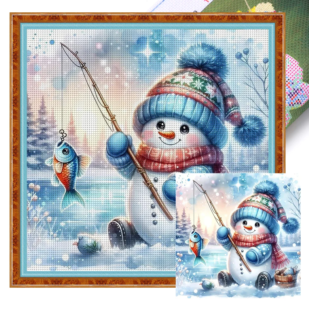 11CT Full Stamped Cross Stitch Kit - Snowman Fishing (40*40CM)