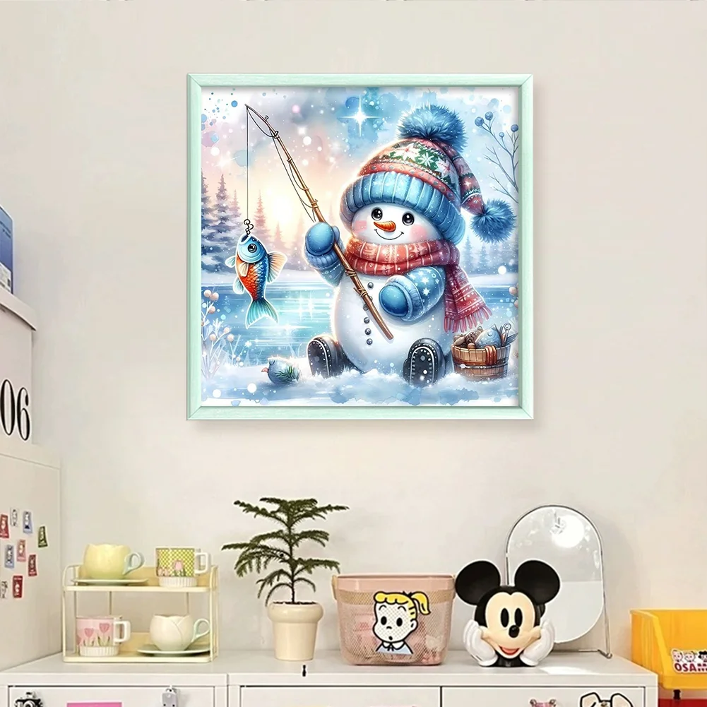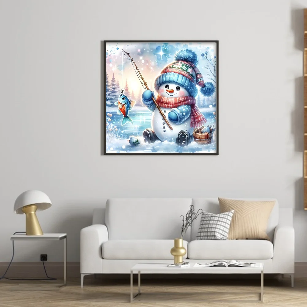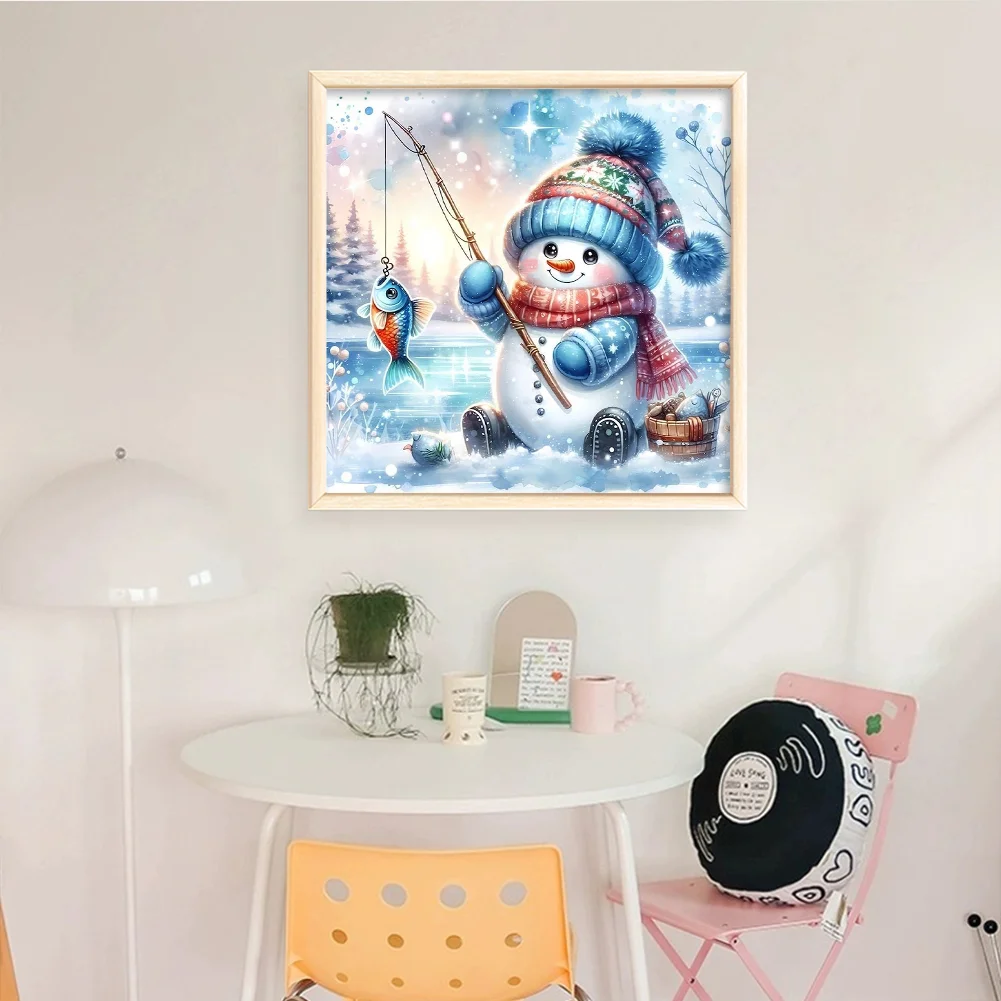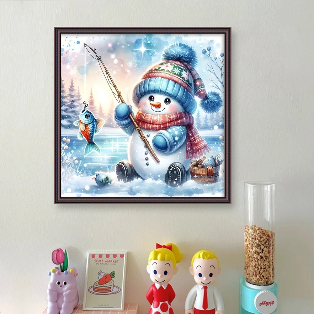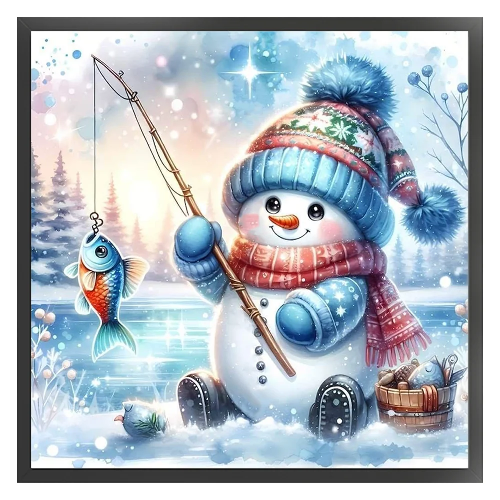 11CT Full Stamped Cross Stitch Kit - Snowman Fishing (40*40CM)