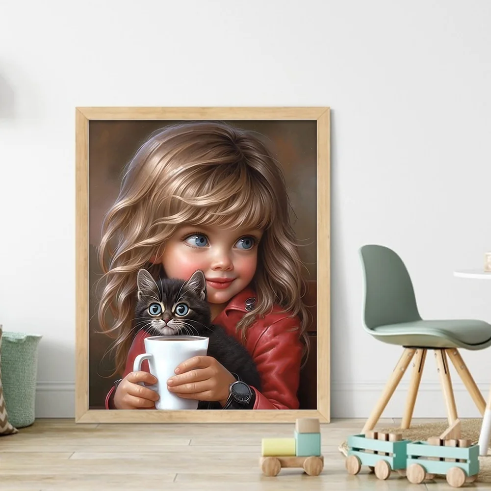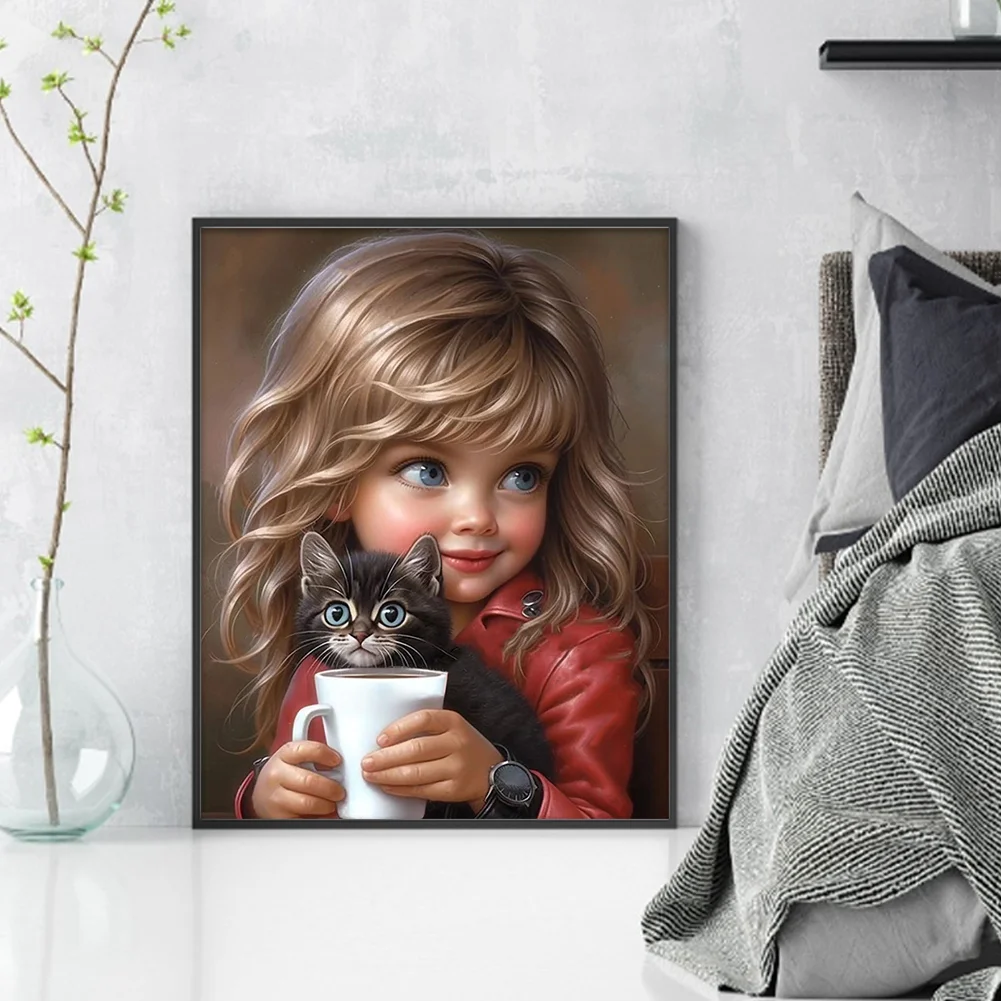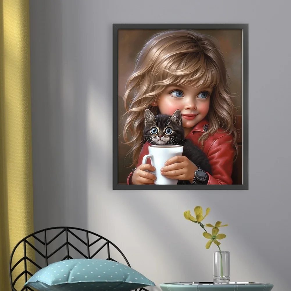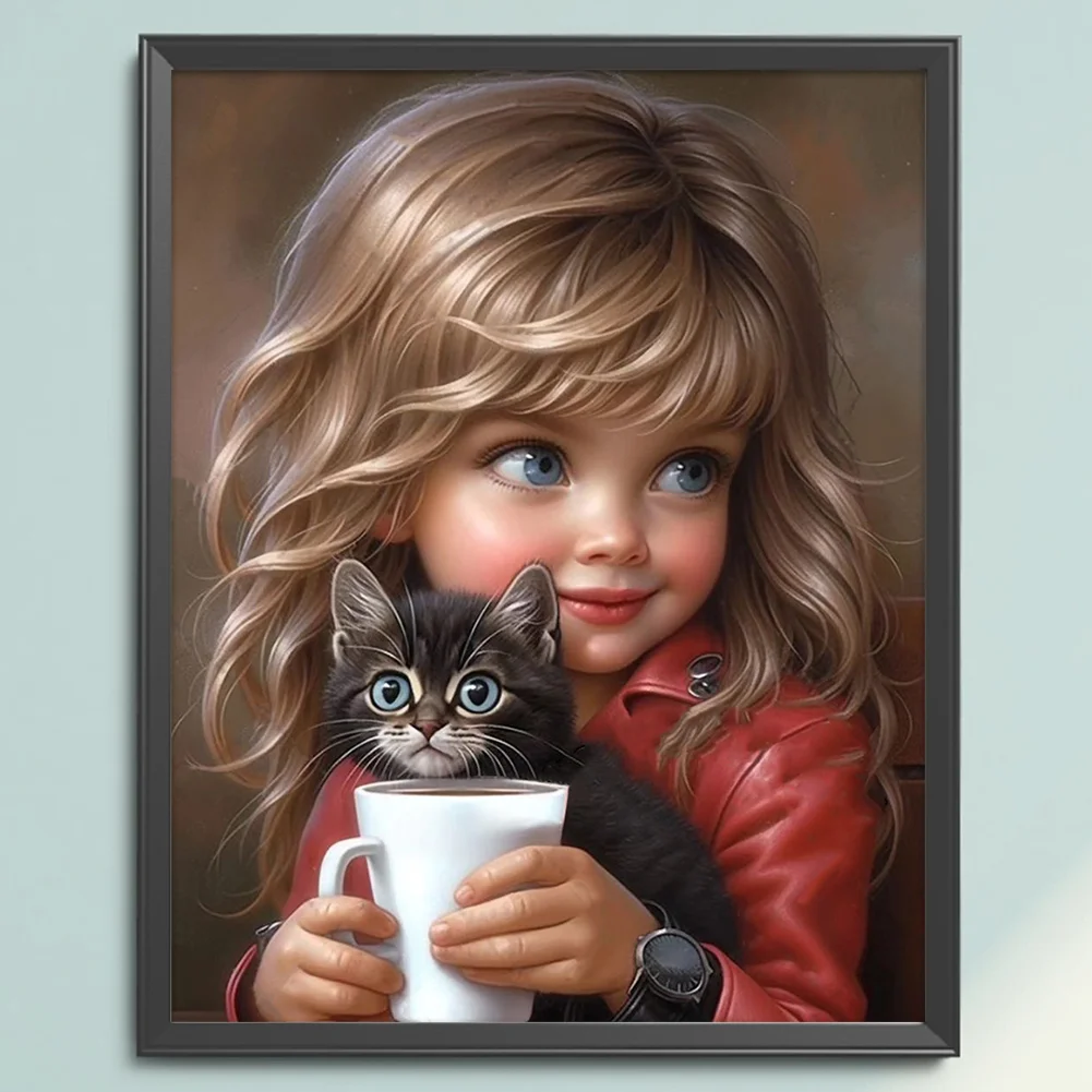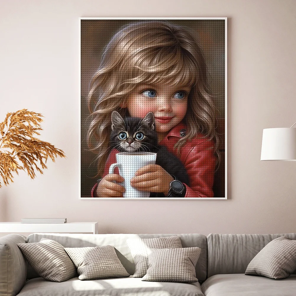 11CT Full Stamped/Counted Cross Stitch Kit - Sweet Girl Cat (40*50CM)