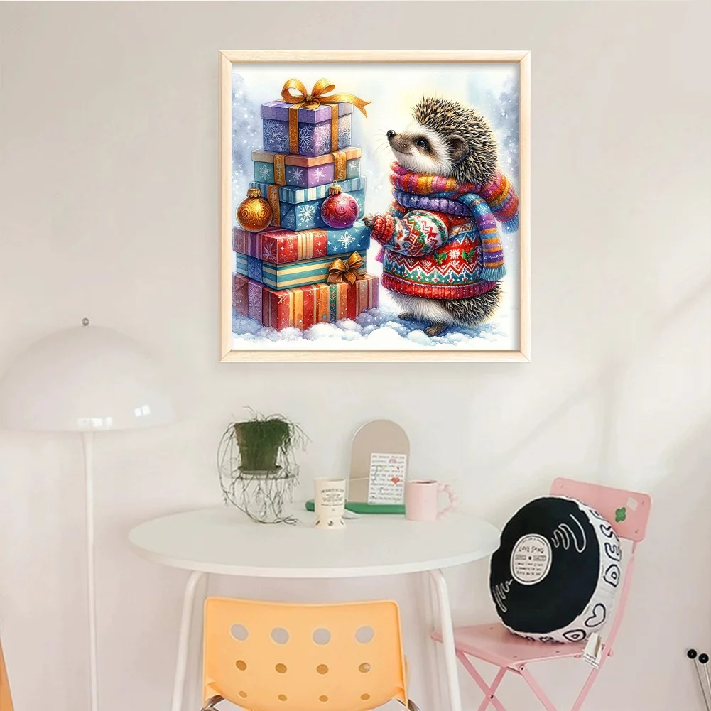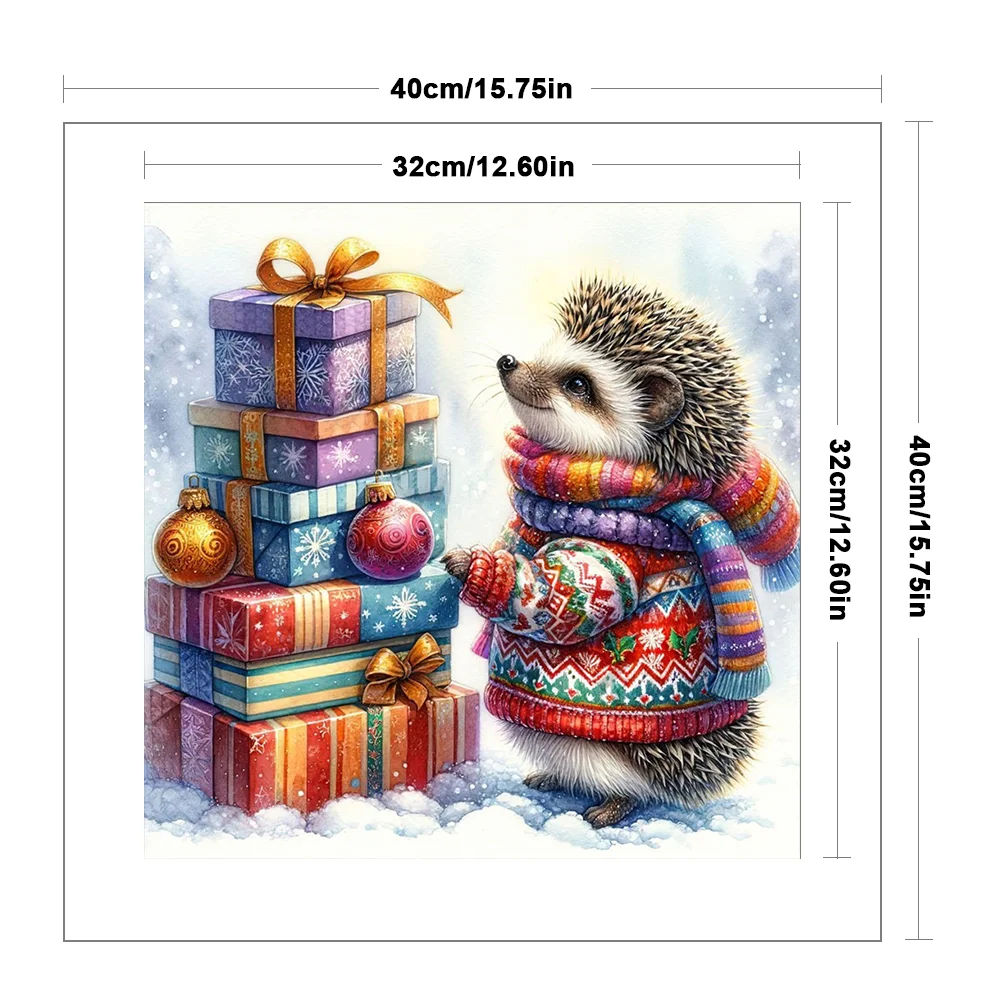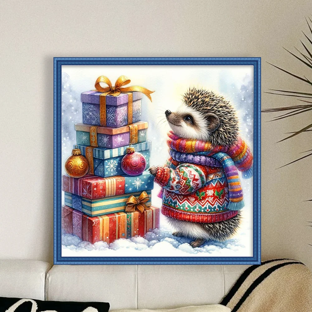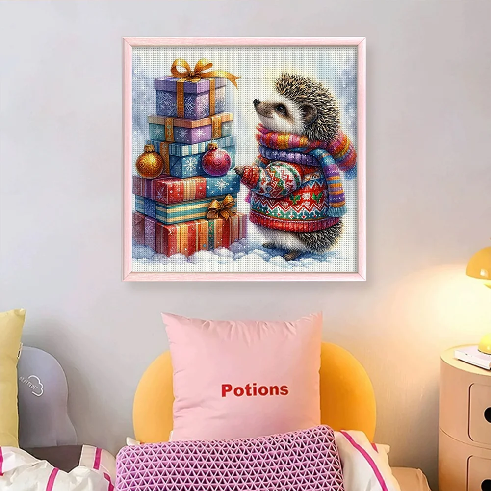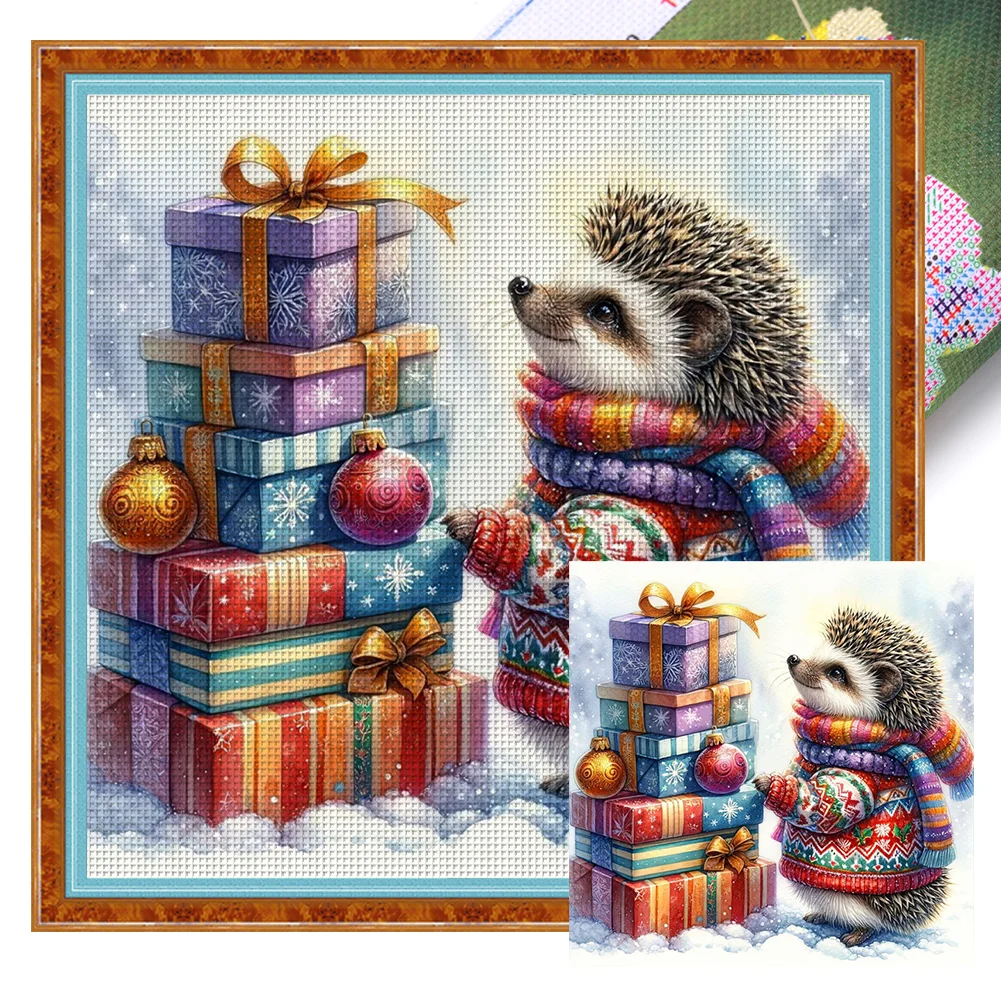 11CT Full Stamped Cross Stitch Kit - Xmas Hedgehog (40*40CM)