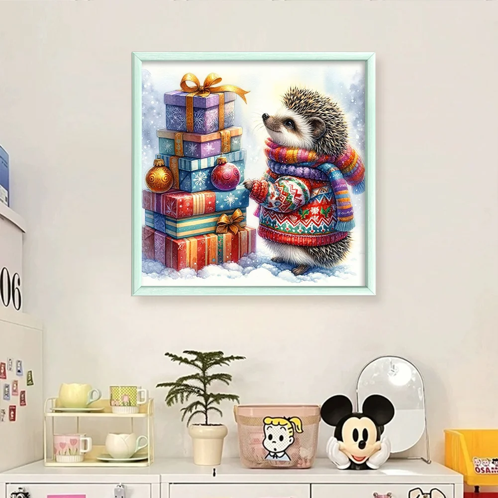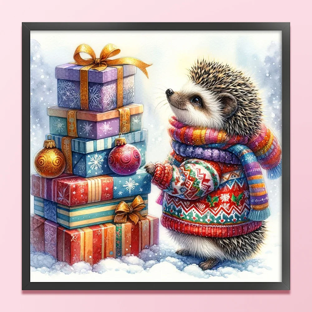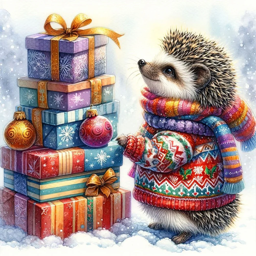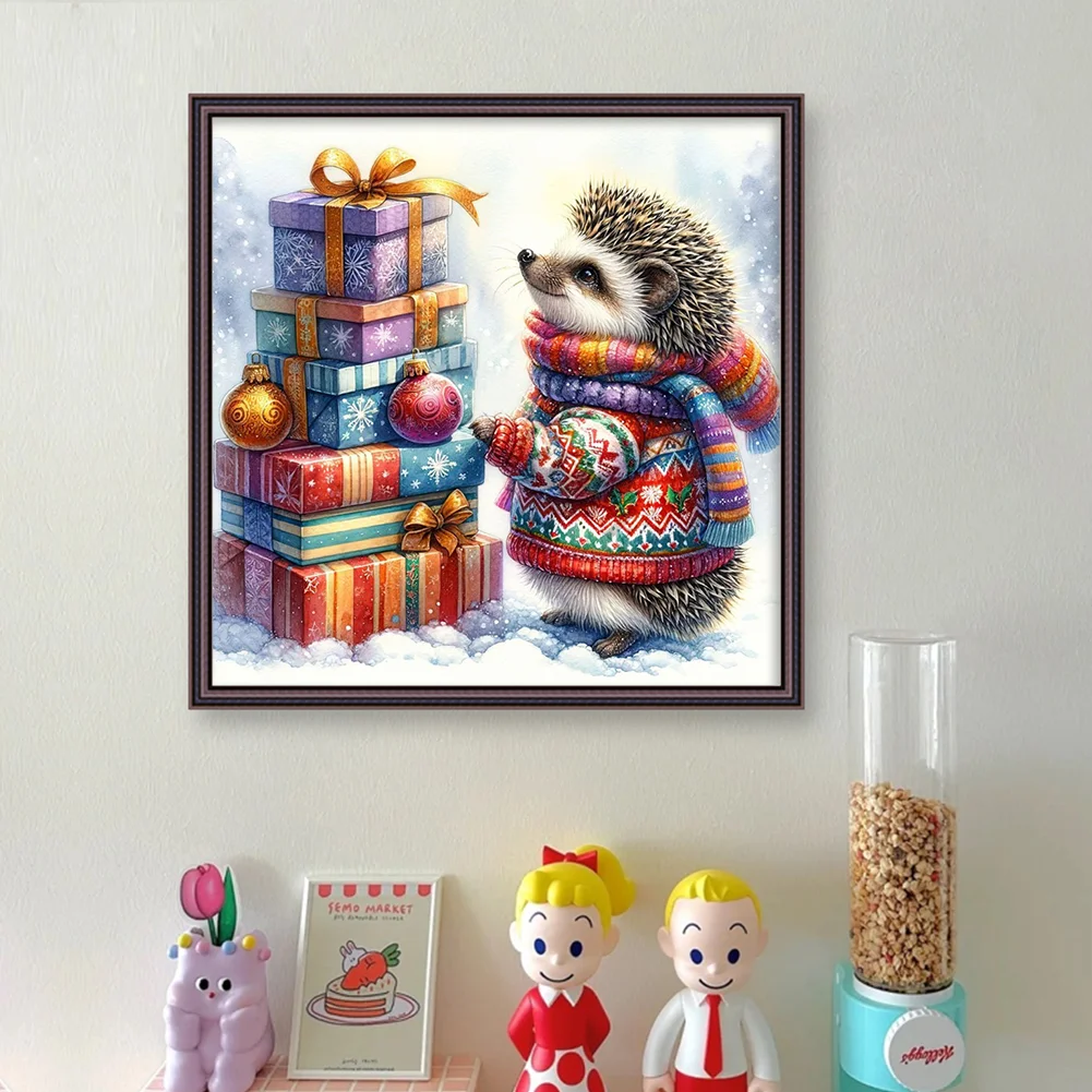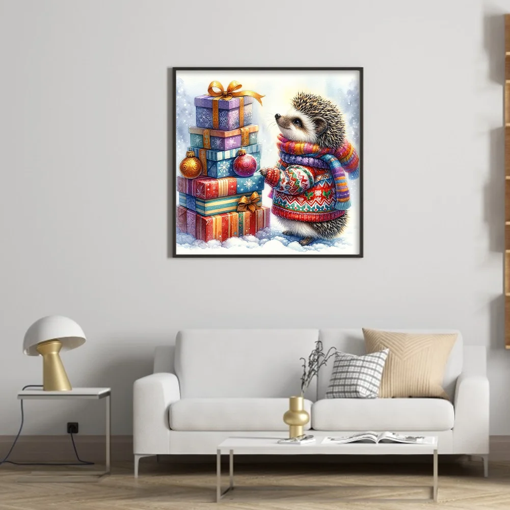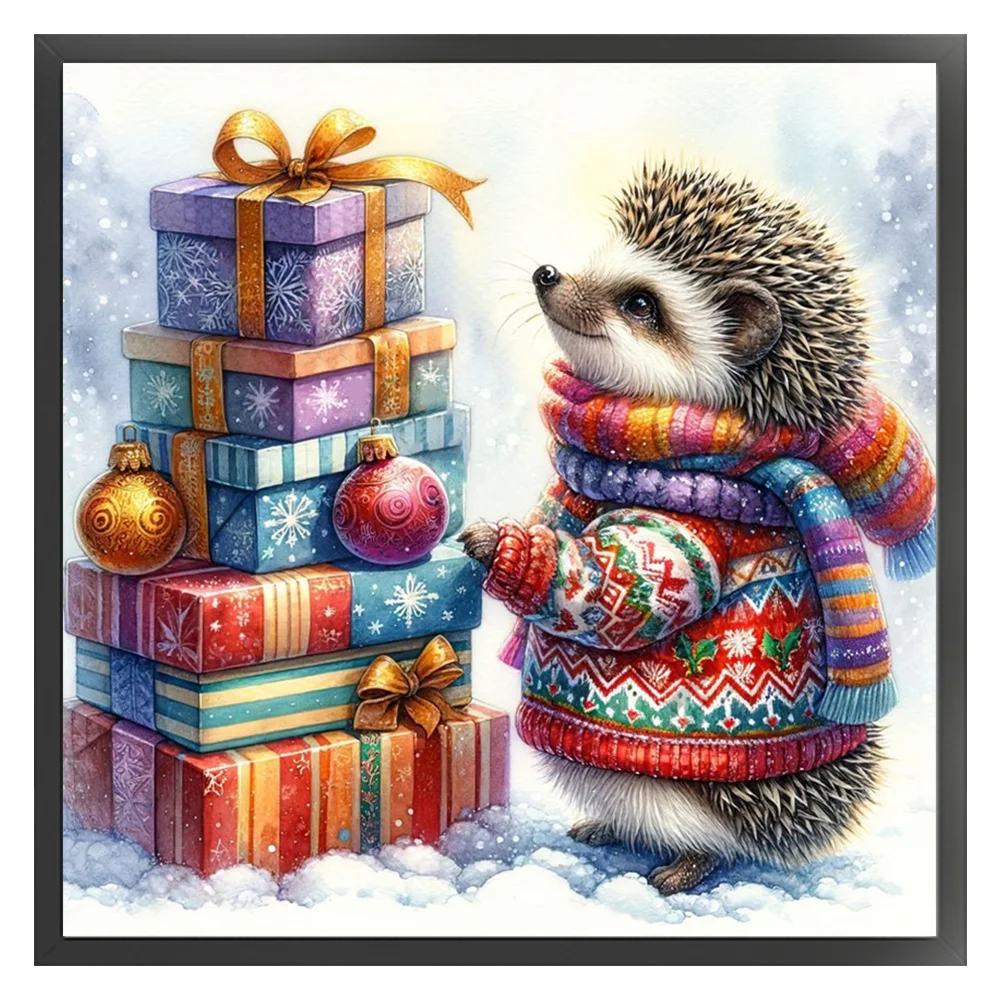 11CT Full Stamped Cross Stitch Kit - Xmas Hedgehog (40*40CM)