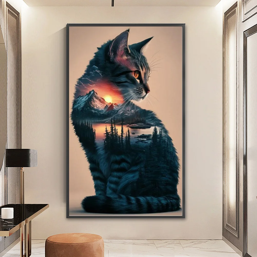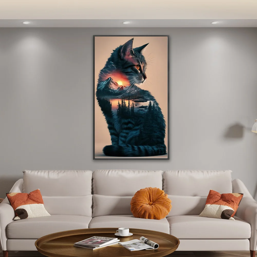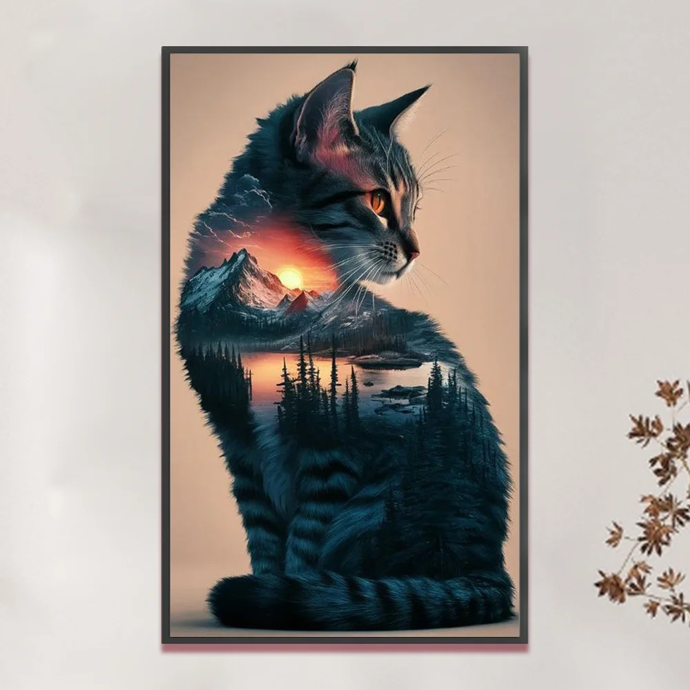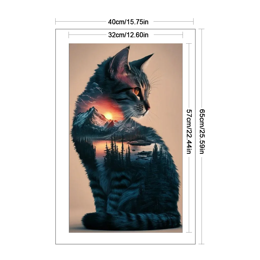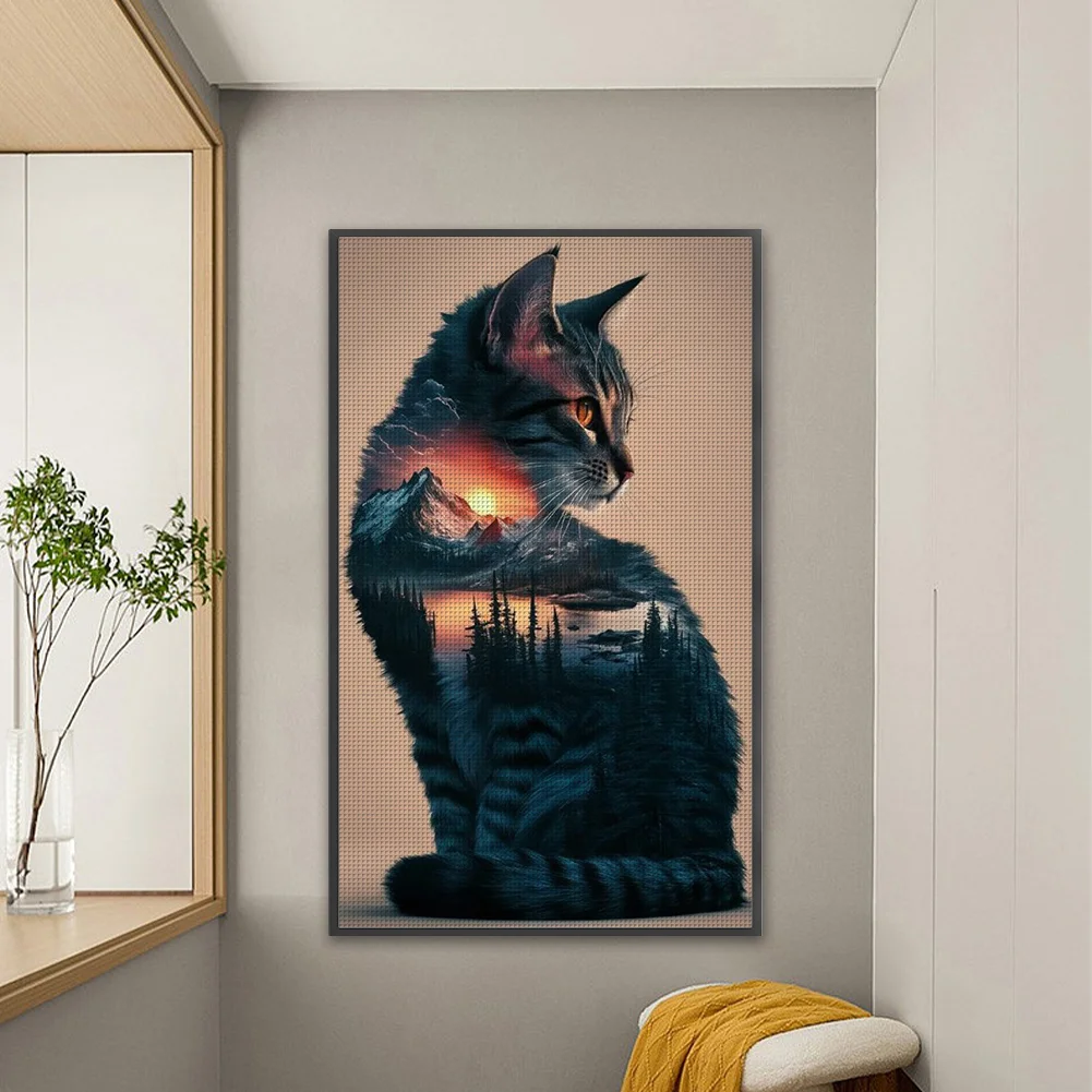 11CT Full Stamped Cross Stitch Kit - Landscape Cat (40*65CM)