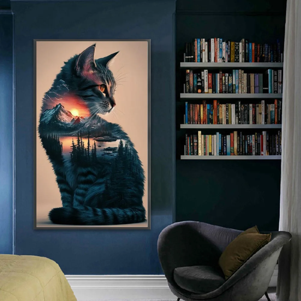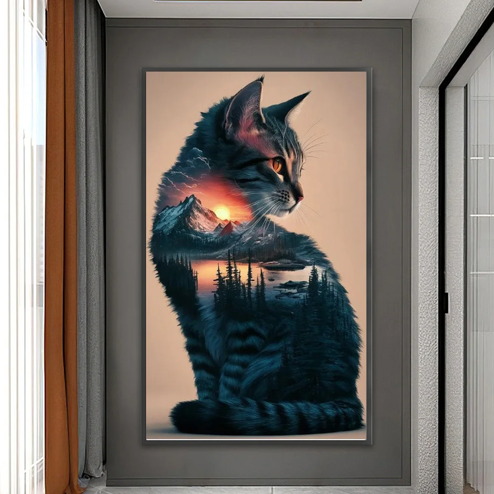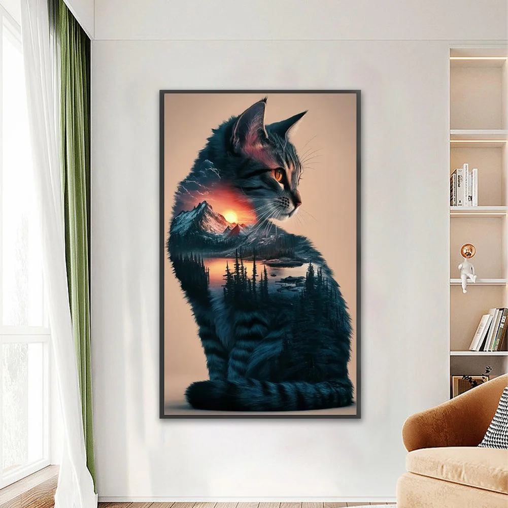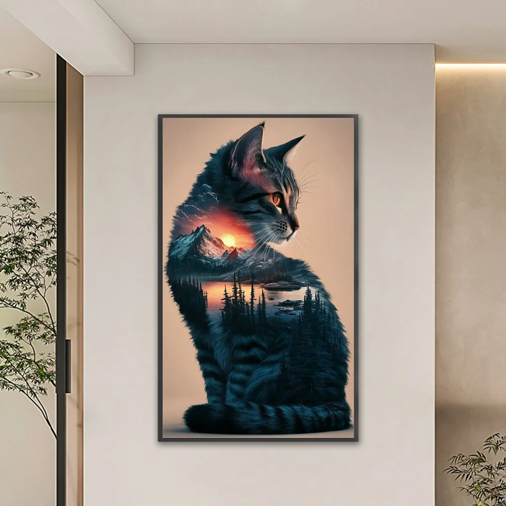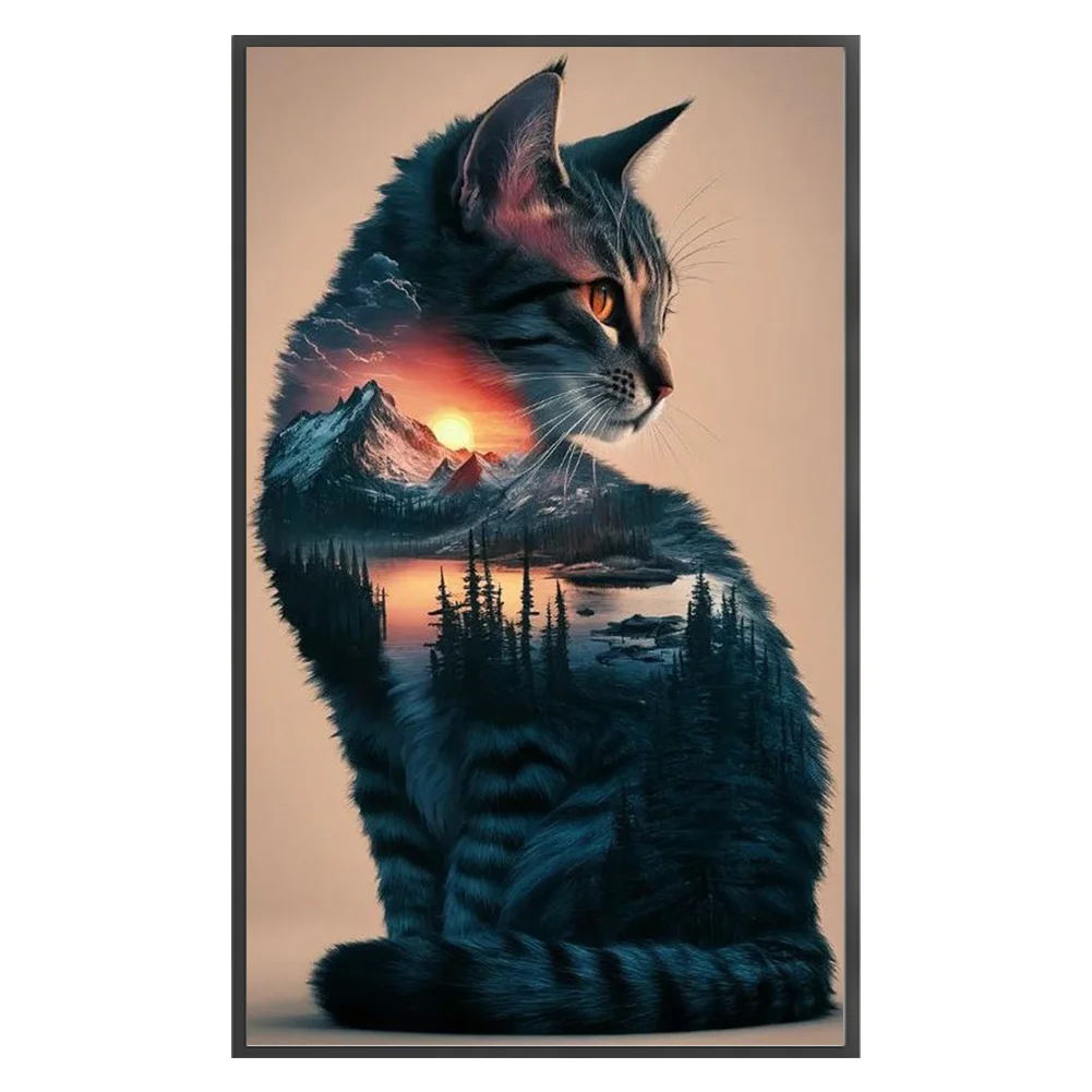 11CT Full Stamped Cross Stitch Kit - Landscape Cat (40*65CM)