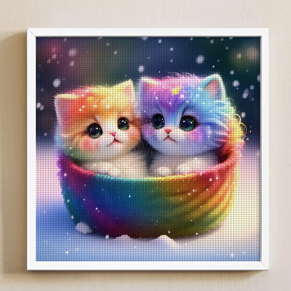 11CT Full Stamped Cross Stitch Kit - Colorful Cat (50*50CM)