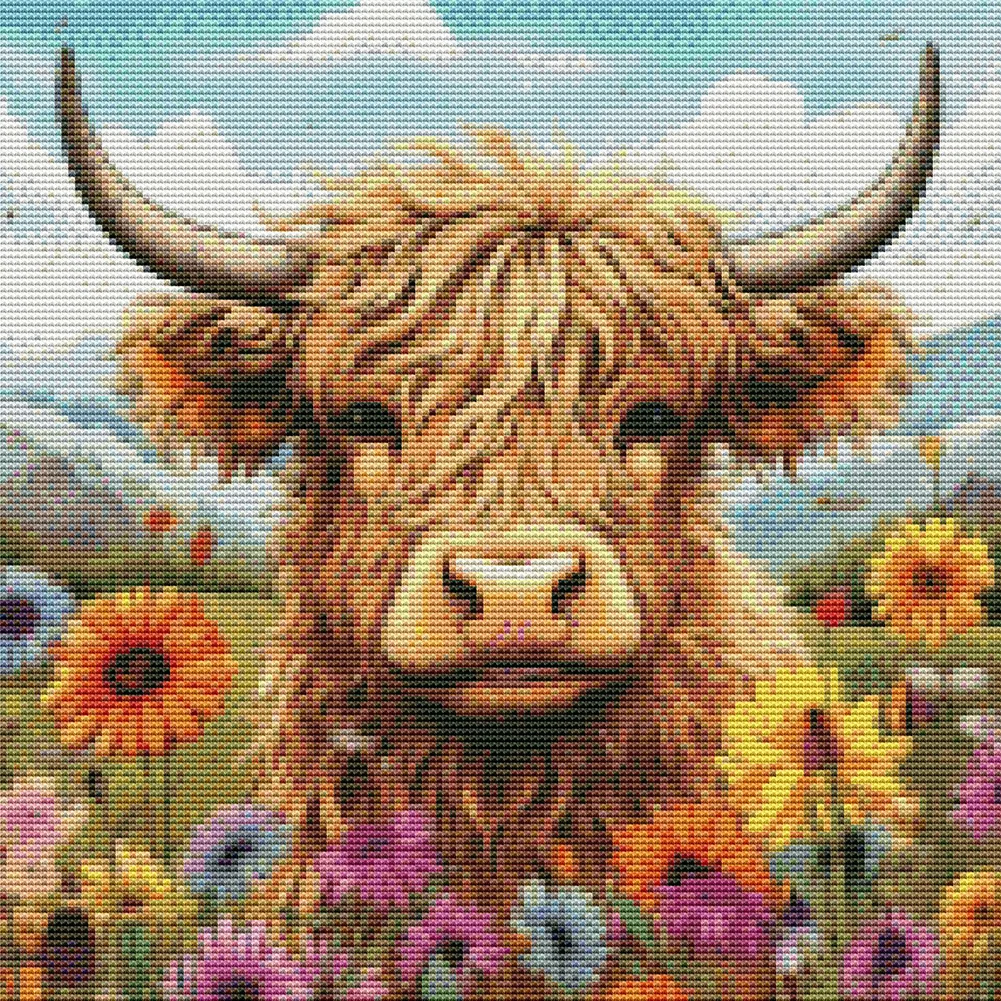 11CT Full Stamped Cross Stitch Kit - Daisy and Yak (40*40CM)