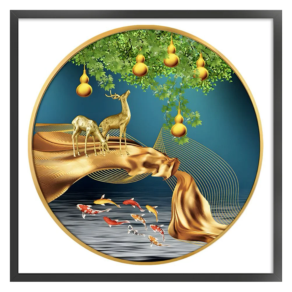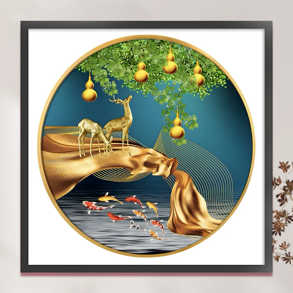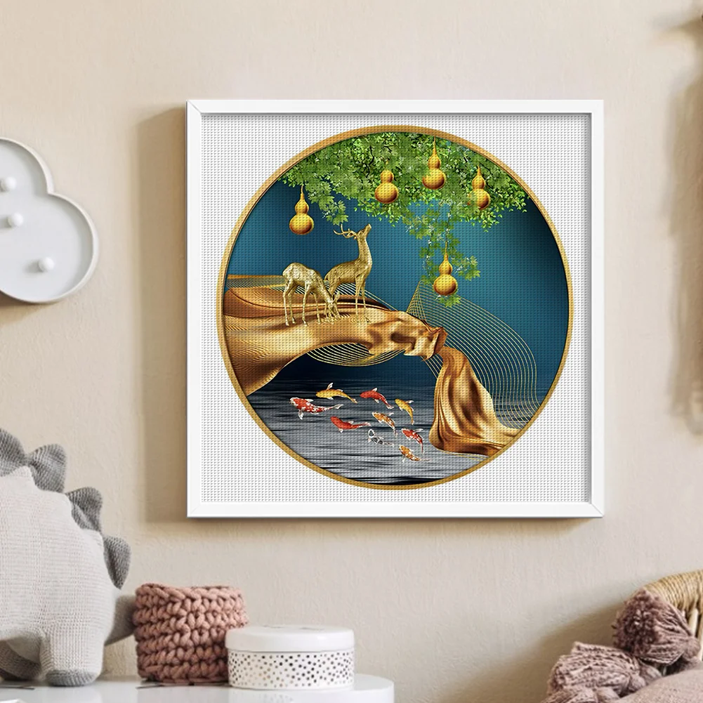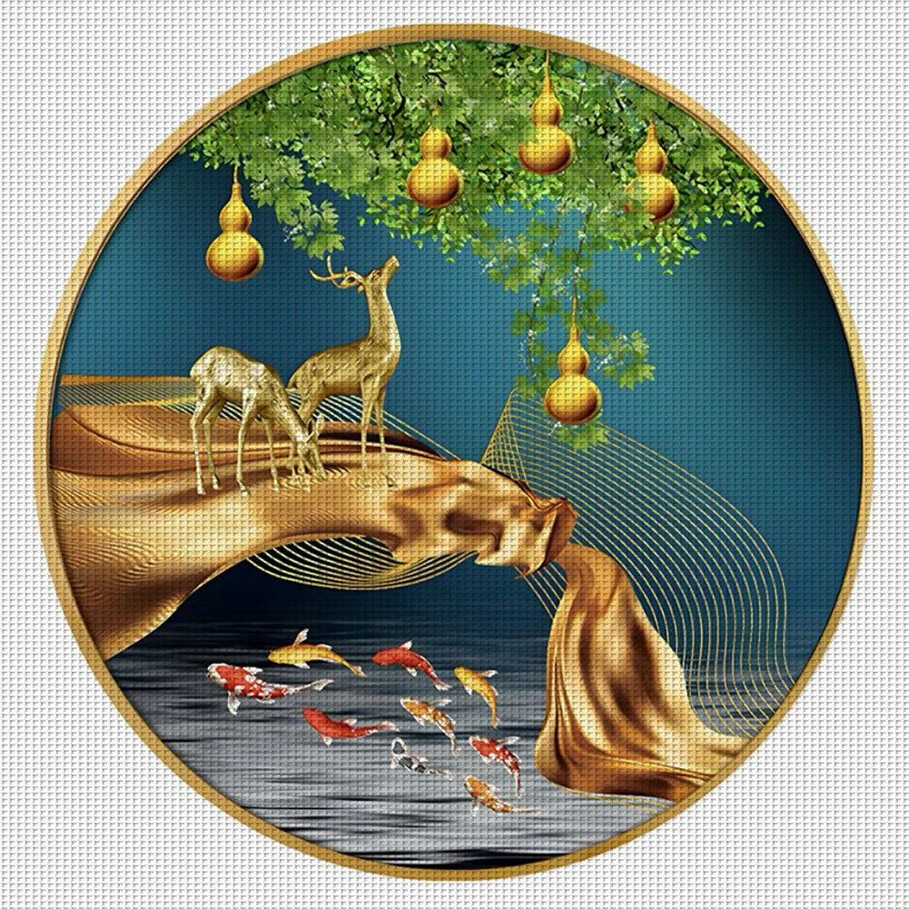 11CT Full Stamped Cross Stitch Kit - Fish&Deer (60*60CM)
