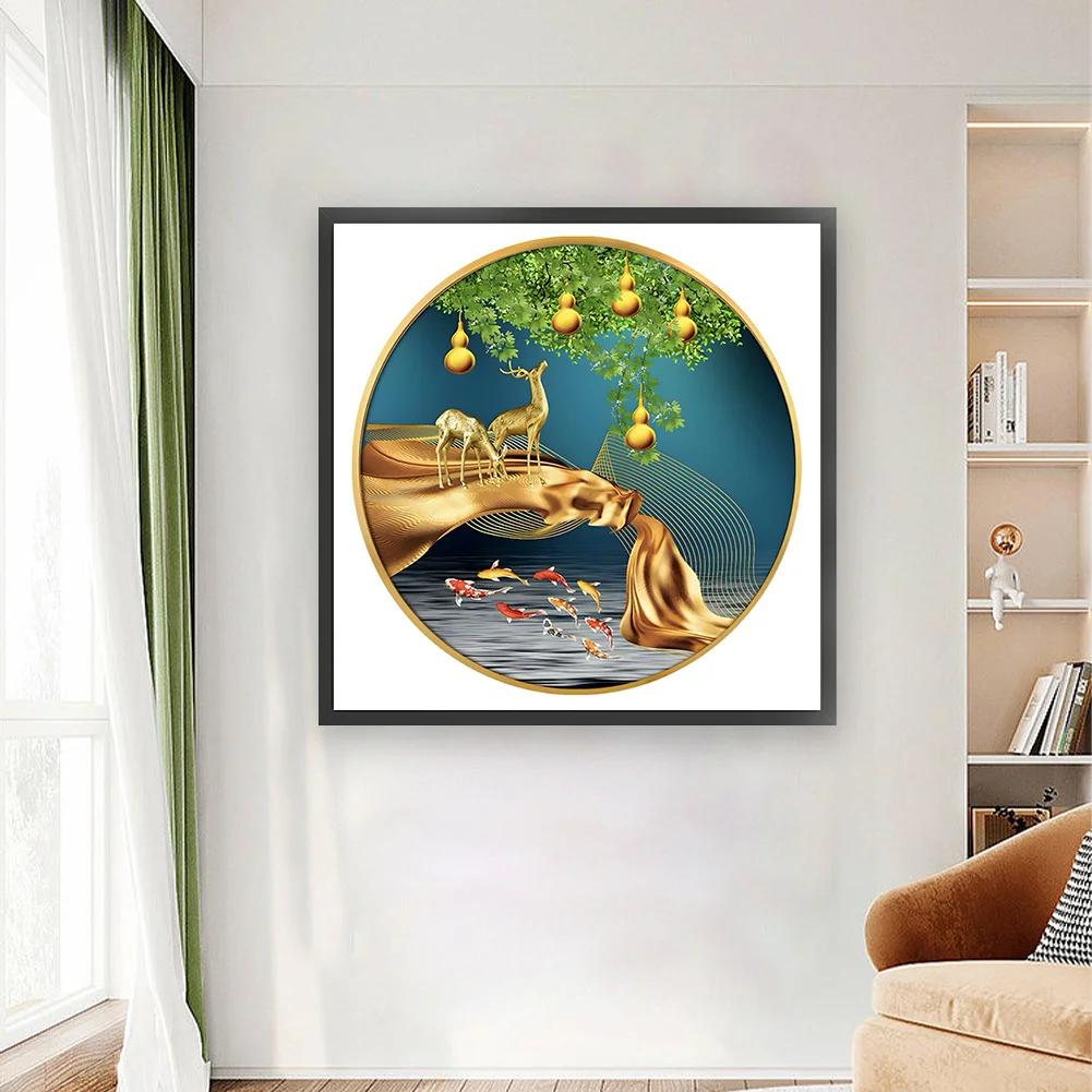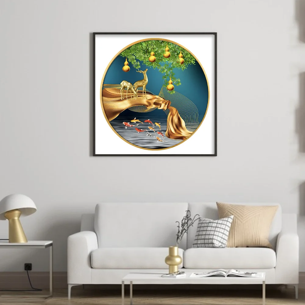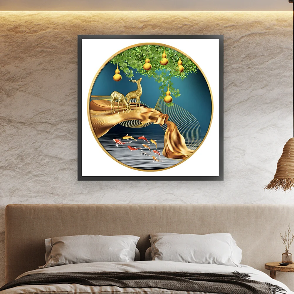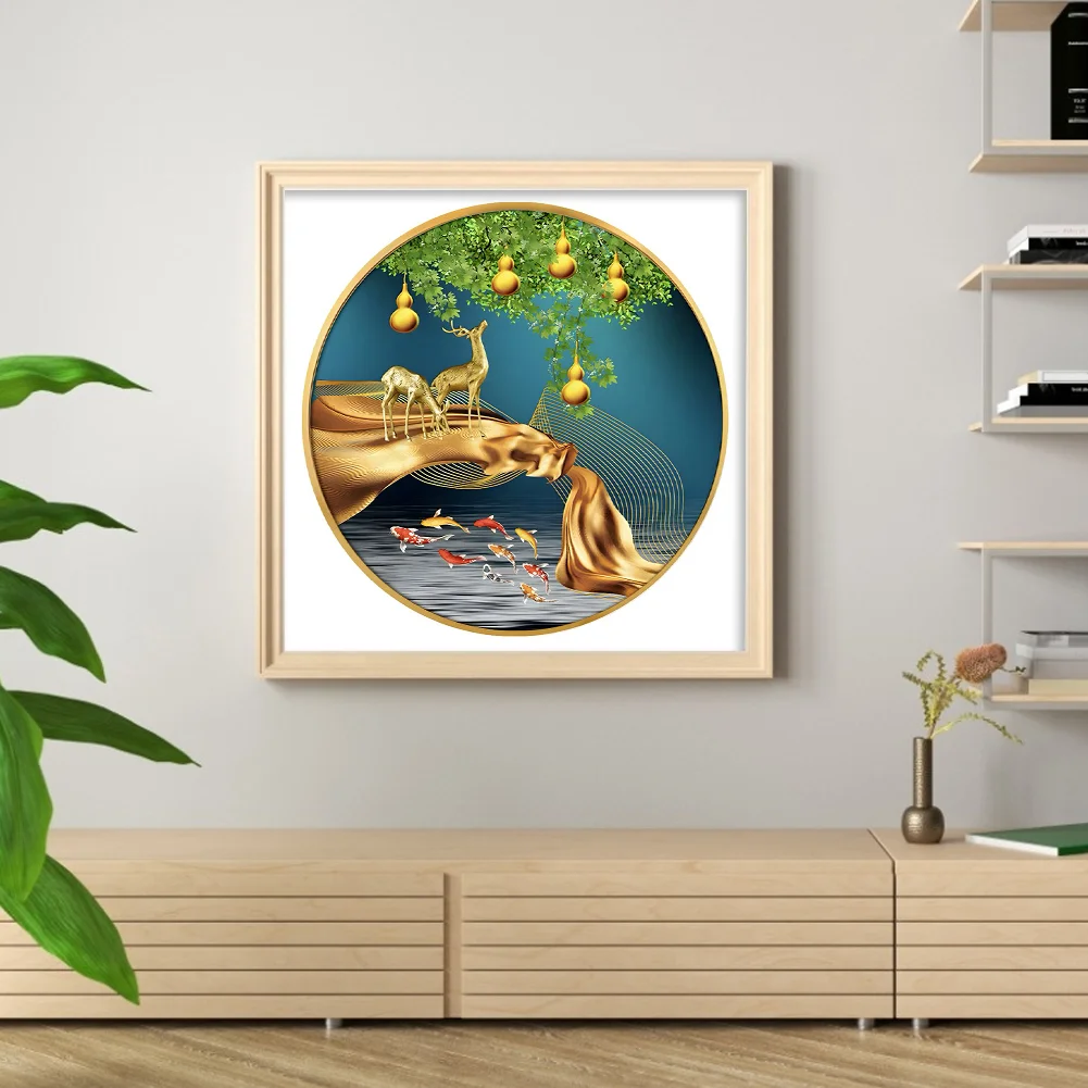 11CT Full Stamped Cross Stitch Kit - Fish&Deer (60*60CM)