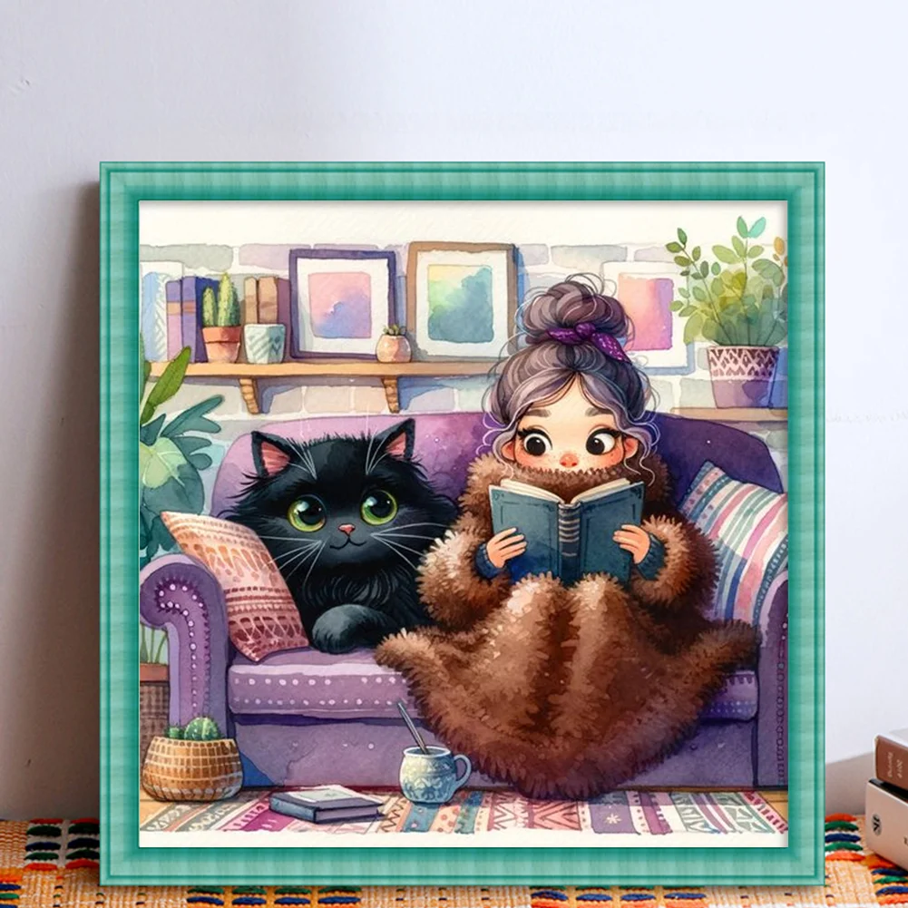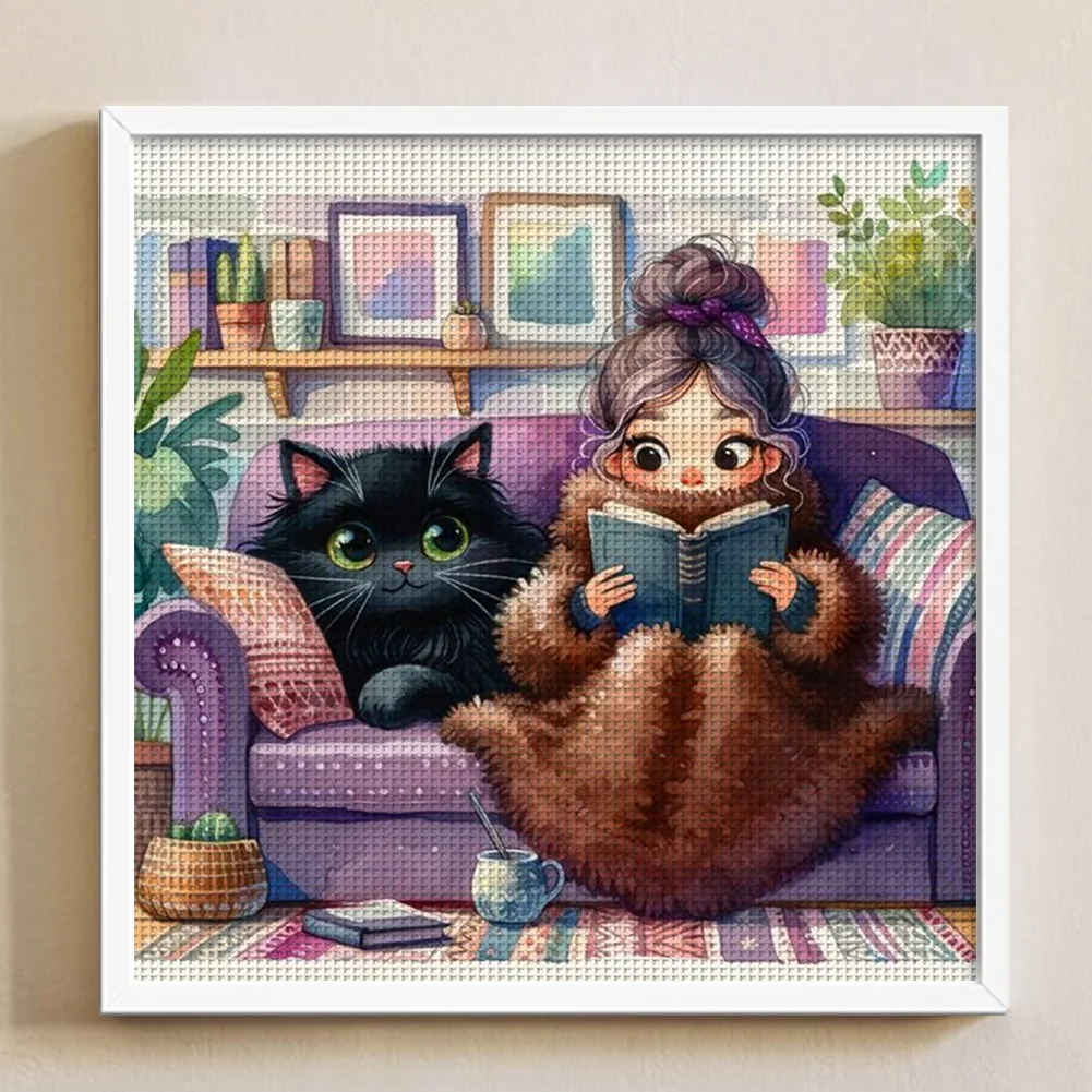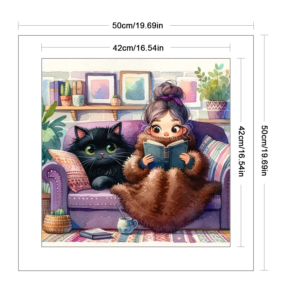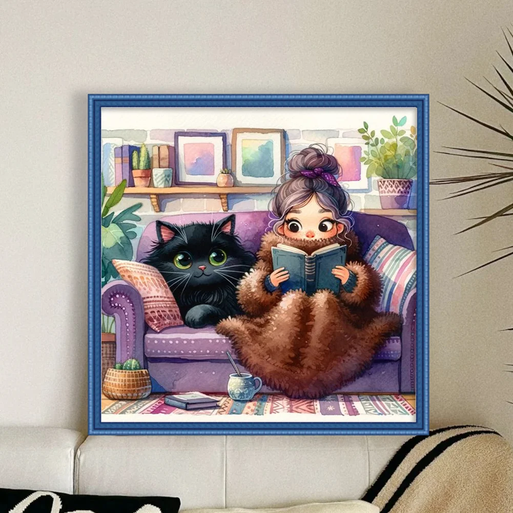 11CT Full Stamped Cross Stitch Kit - Girl&Cat (50*50CM)