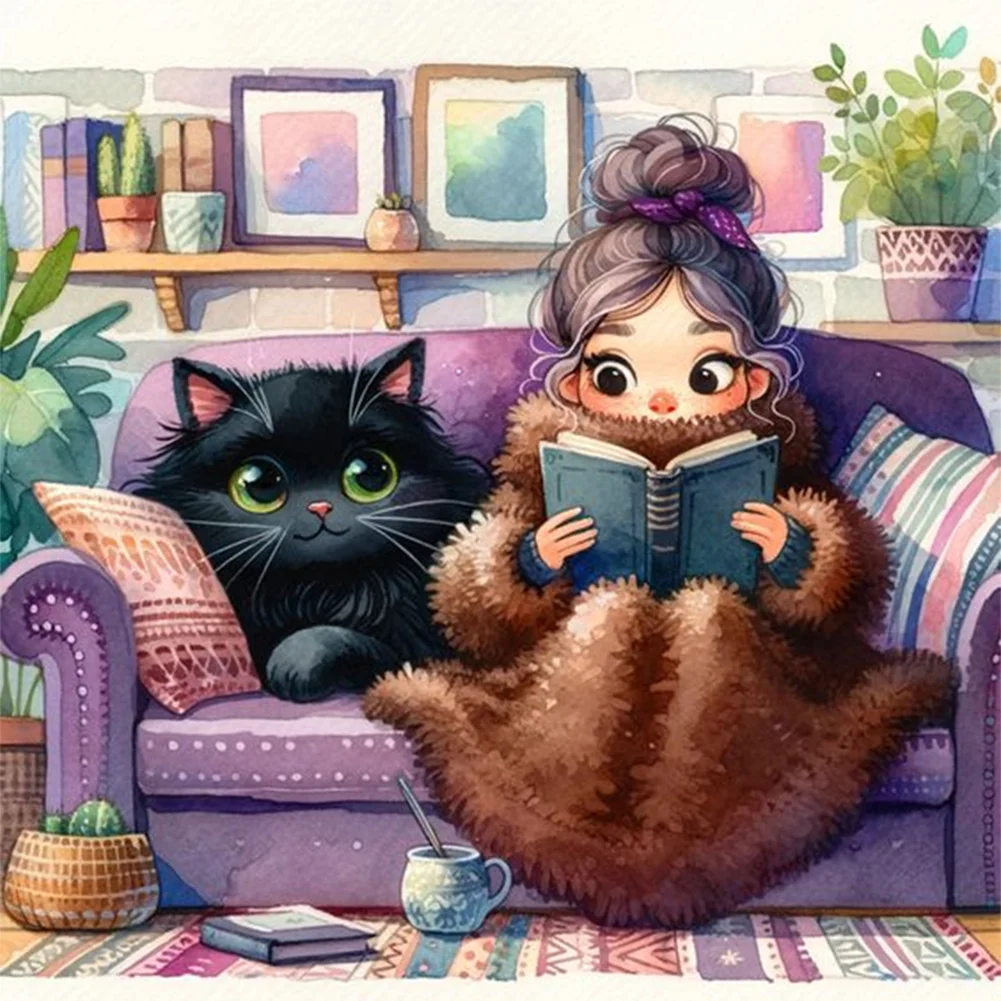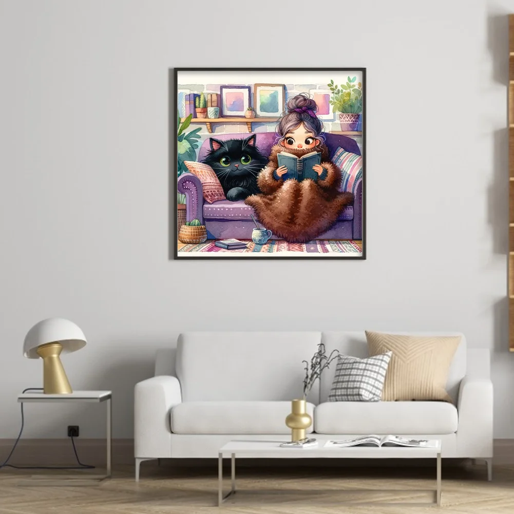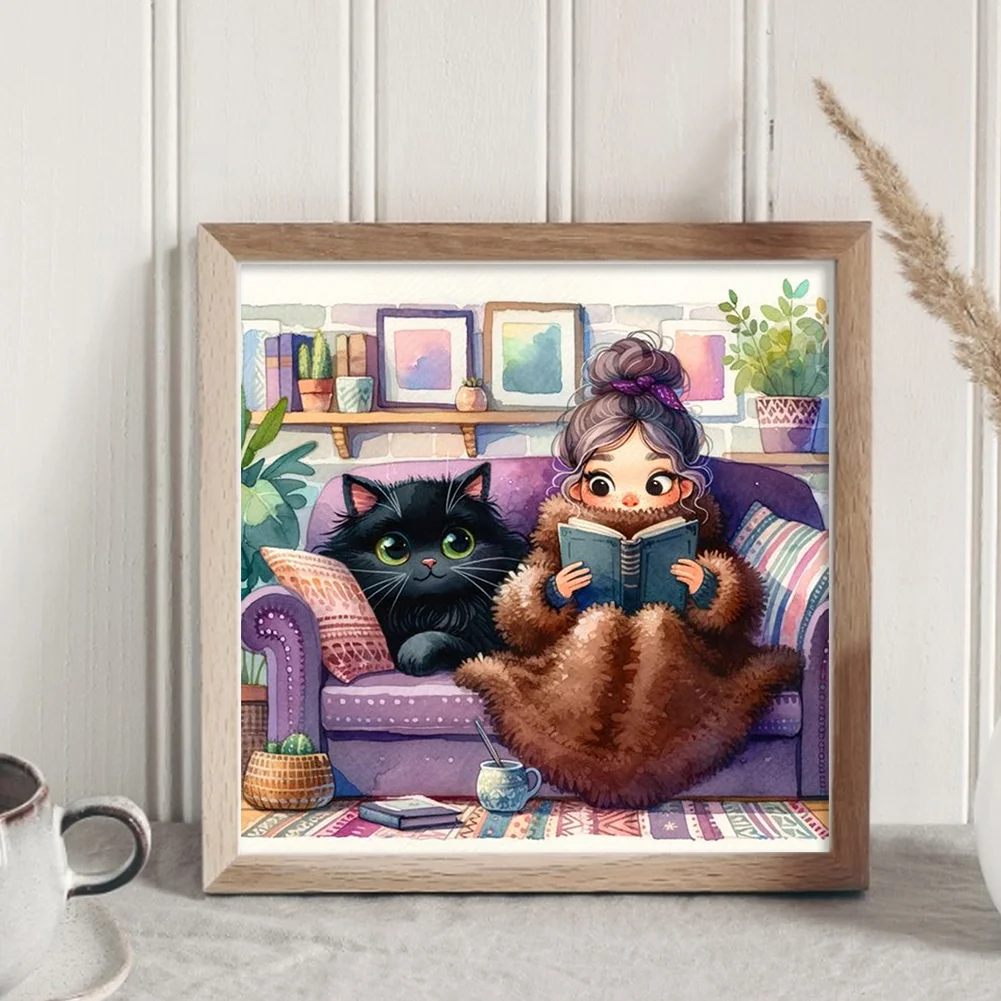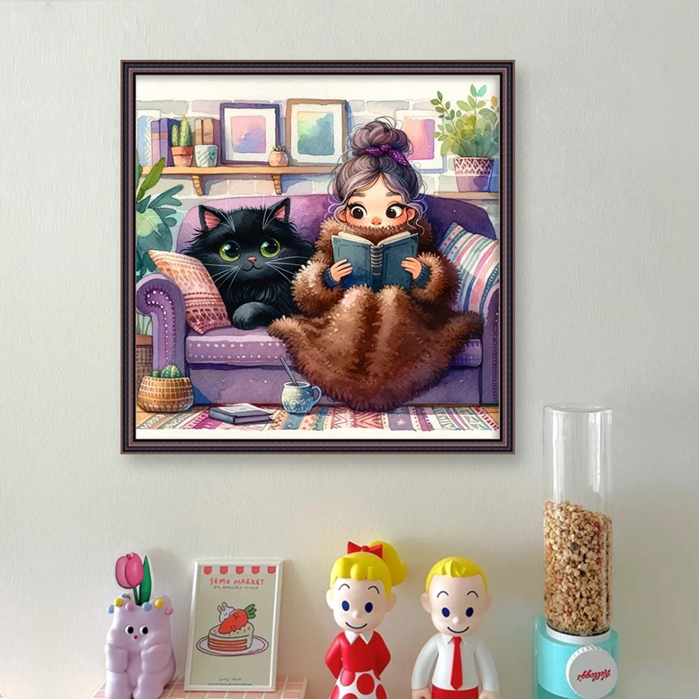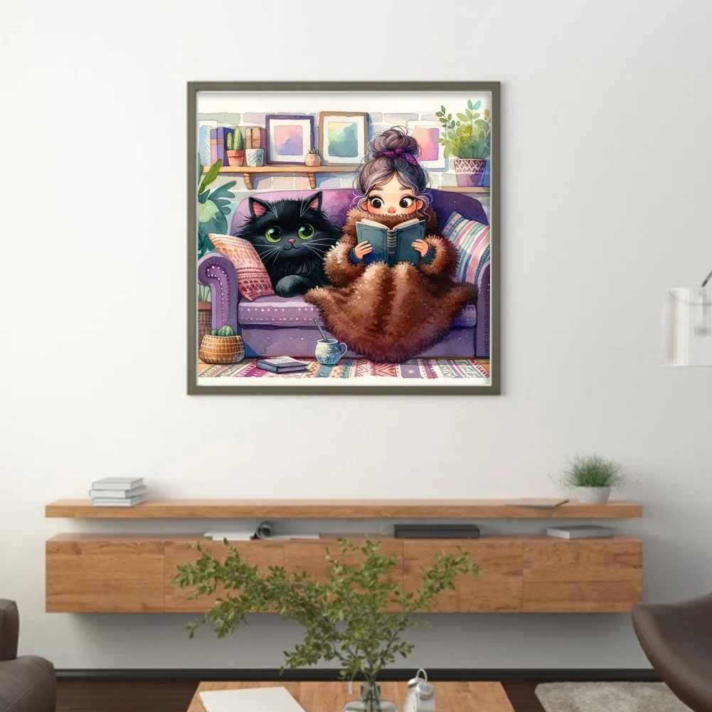 11CT Full Stamped Cross Stitch Kit - Girl&Cat (50*50CM)