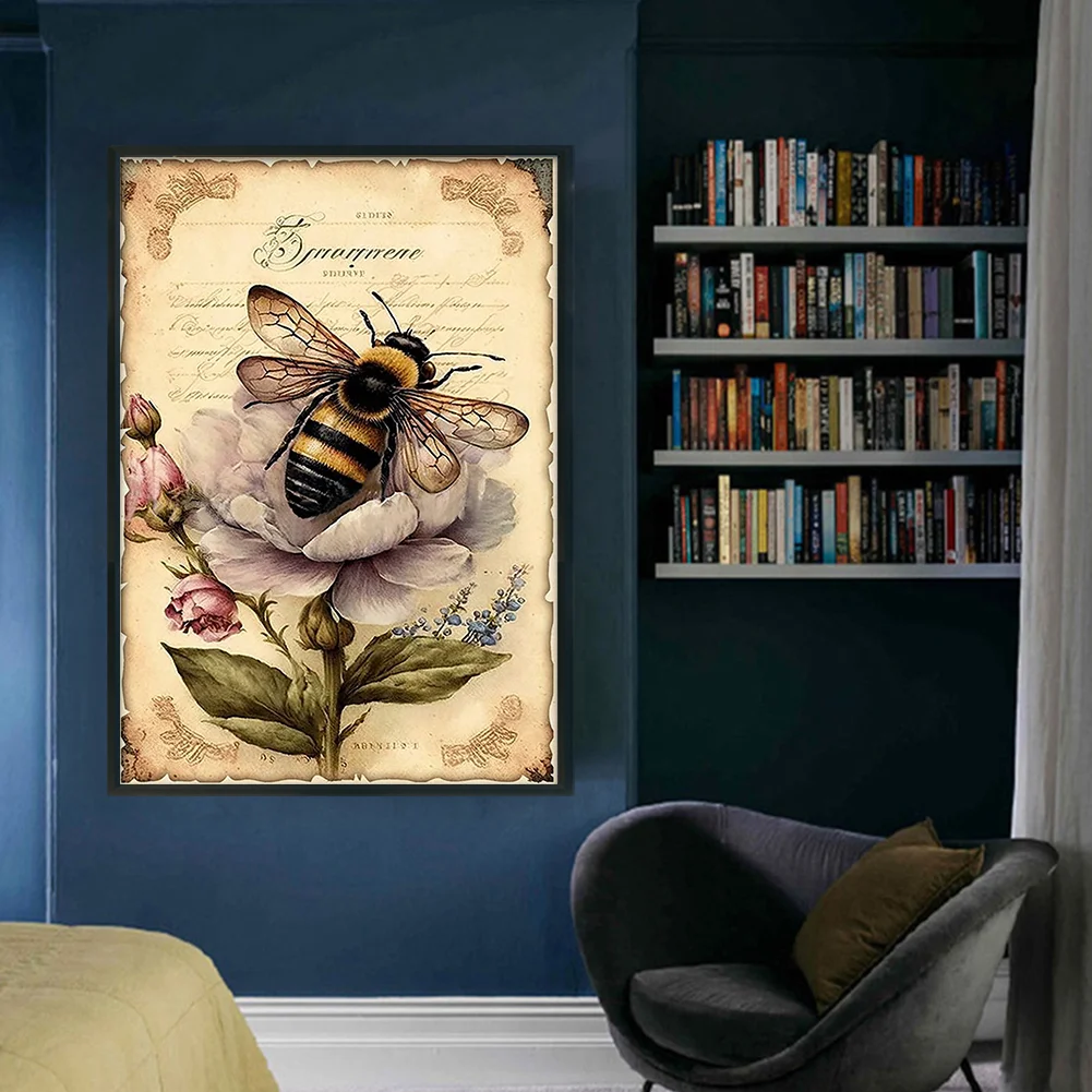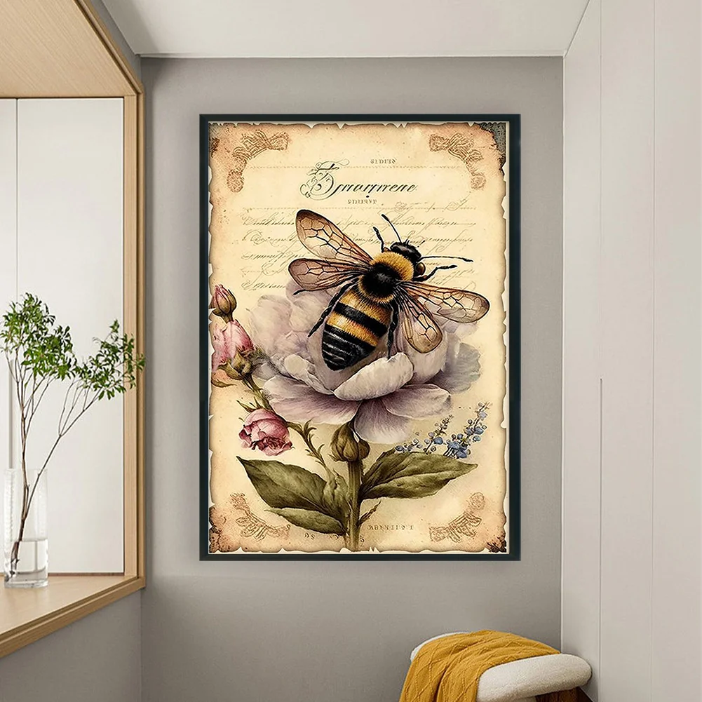 11CT Full Stamped Cross Stitch - Bee Retro Poster (40*60CM)